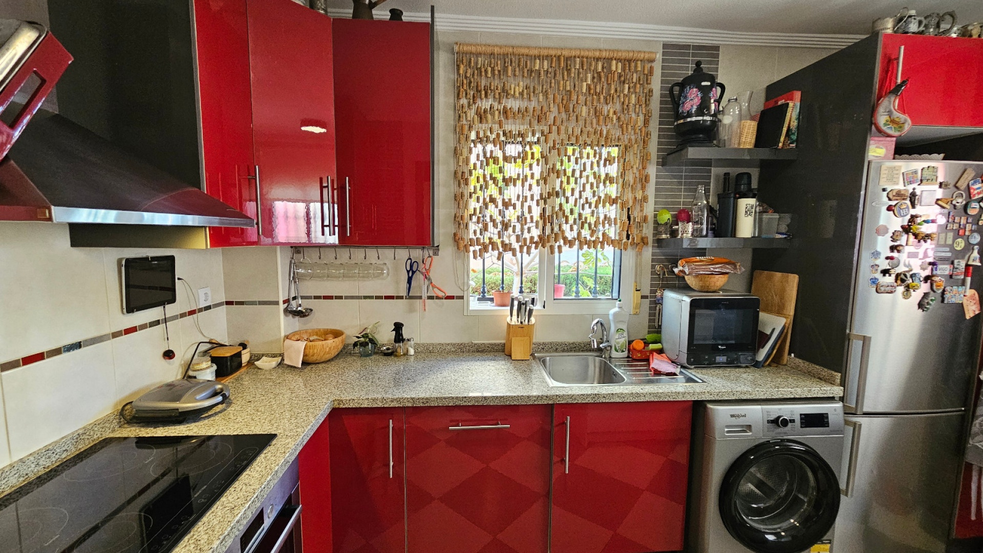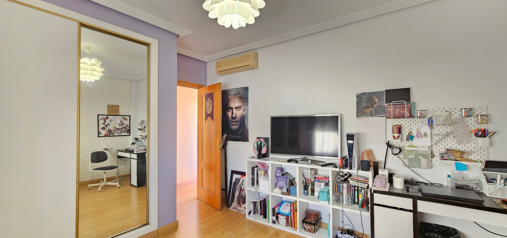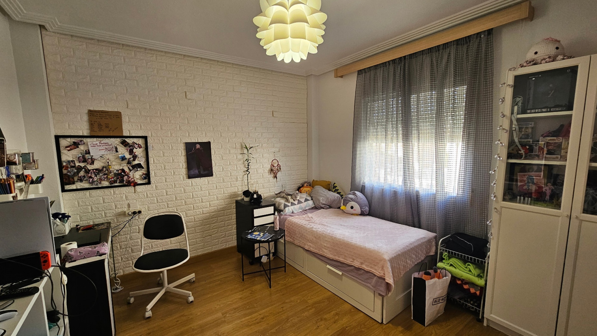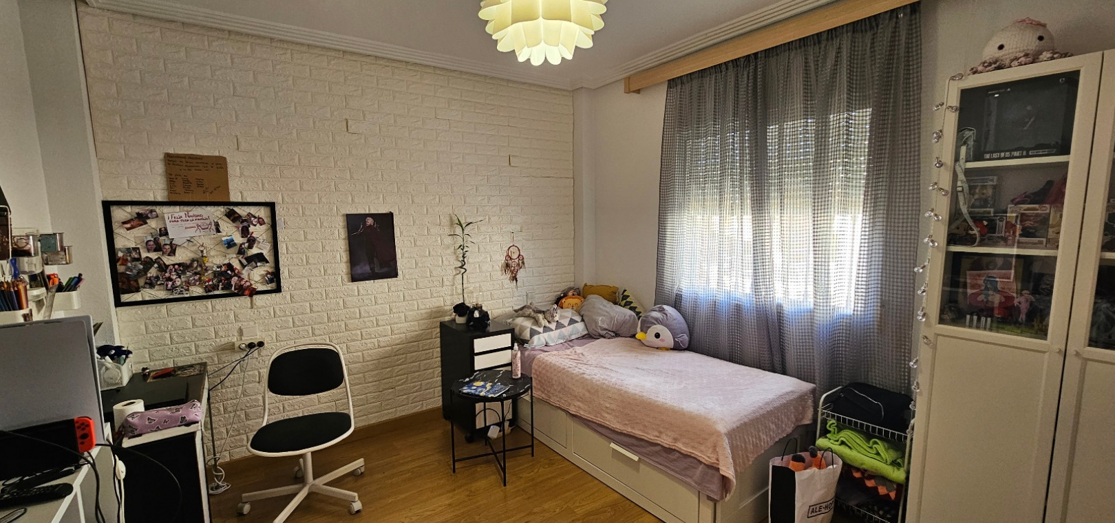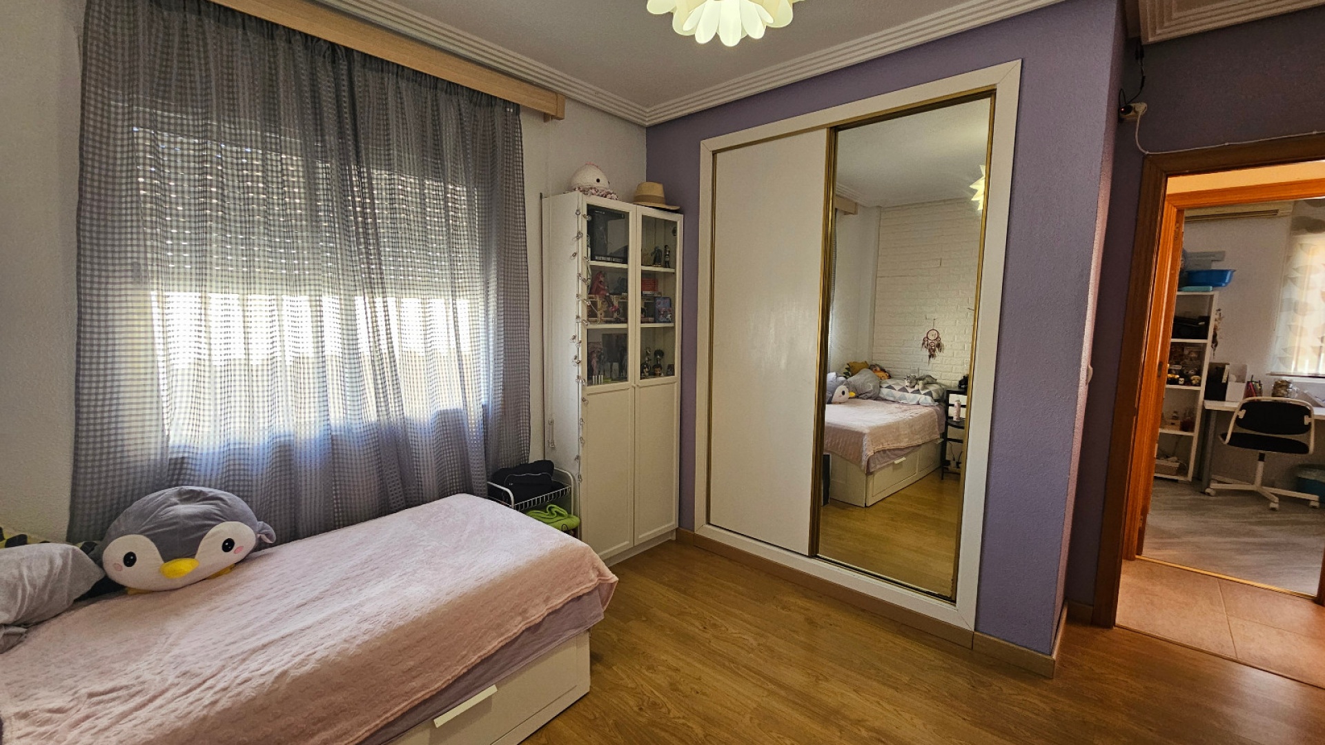 Auf der 1. Etage befinden sich 2 Doppelzimmer, beide mit Einbauschränken und Klimaanlage warm/kalt, 1 großes Familienbadezimmer und 1 großer sonniger Balkon mit Meerblick.