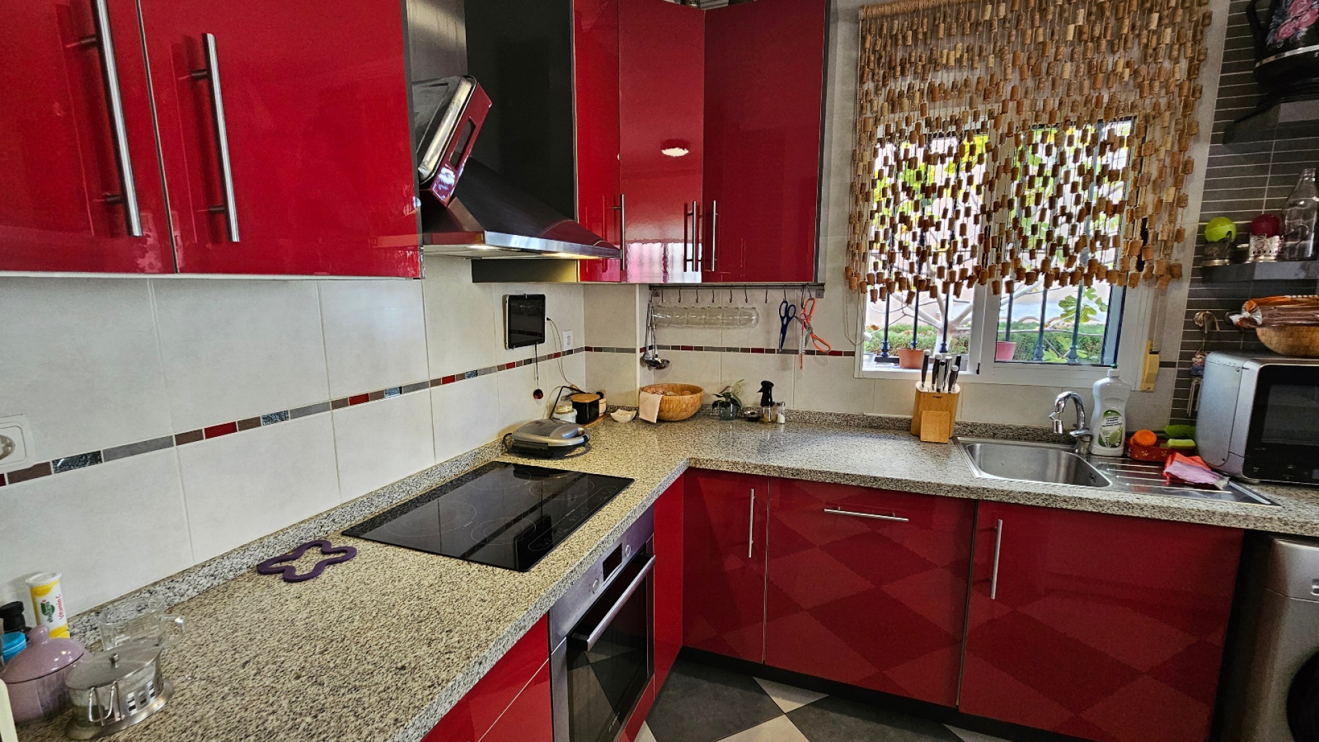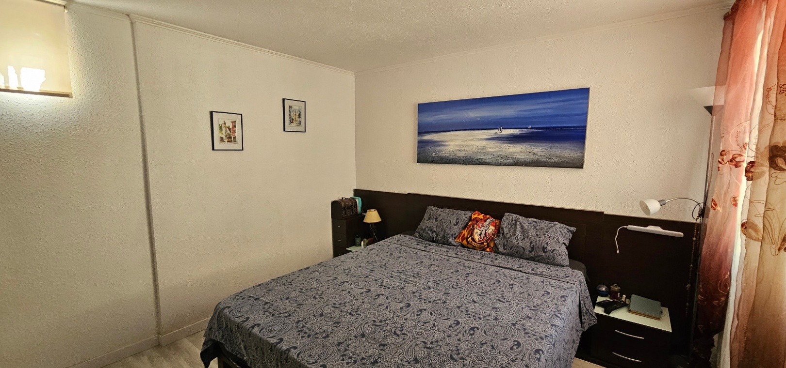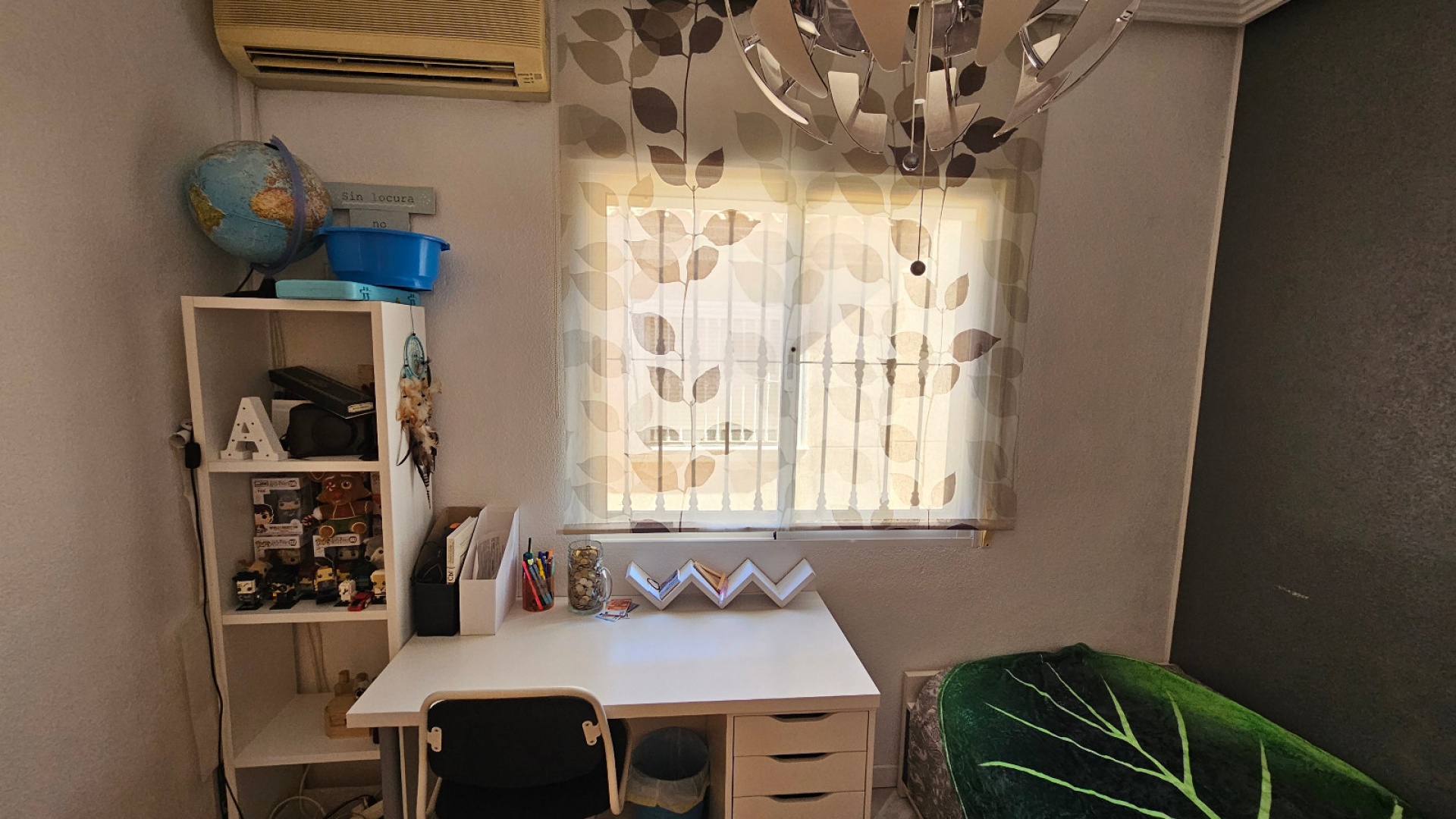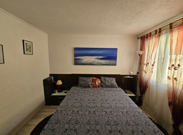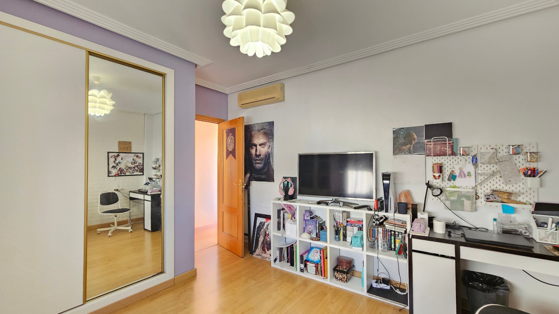 Auf der 1. Etage befinden sich 2 Doppelzimmer, beide mit Einbauschränken und Klimaanlage warm/kalt, 1 großes Familienbadezimmer und 1 großer sonniger Balkon mit Meerblick.