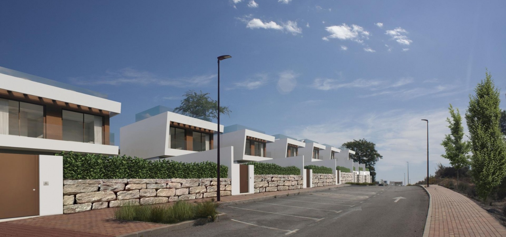 Jede Villa ist in einem modernen Design gestaltet, das schlichte Eleganz mit Funktionalität verbindet. Mit privaten Pools, Parkplätzen, Terrassen und Solarien bieten diese Villen alles, was Sie zur Entspannung und Unterhaltung brauchen. Ausgewählte Einheiten verfügen auch über ein Untergeschoss, das zusätzlichen Platz für individuelle Wohnbereiche bietet.