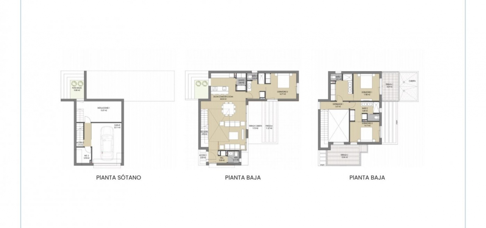 Villen über 2 Etagen gebaut, hat 3 Schlafzimmer, 3 Bäder, Gäste-WC, offene Küche mit Wohnzimmer, Einbauschränke, Terrassen, privater Garten mit dem Pool und Keller mit der Garage