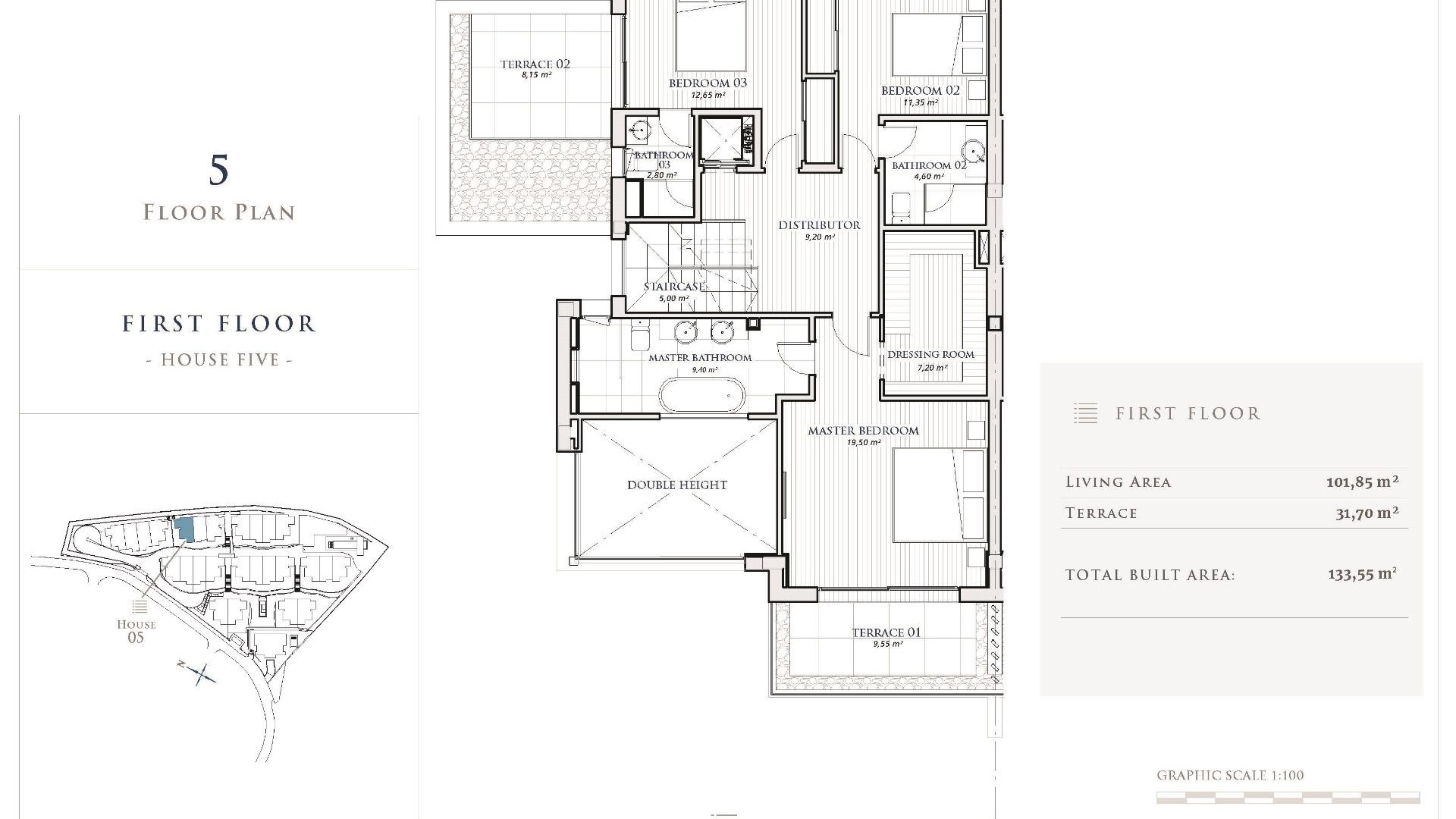 Jedes Stadthaus ist auf mehreren Ebenen angelegt, so dass Sie von verschiedenen Punkten des Hauses aus den Panoramablick auf das Meer genießen können. Sie haben die Wahl zwischen zwei Grundrissen mit 4 oder 5 Schlafzimmern, die sich auf das Untergeschoss, das Erdgeschoss, den ersten Stock und eine Sonnenterrasse verteilen. Die großzügigen Innenräume sind hochwertig ausgestattet, verfügen über große Fenster und sind offen gestaltet, so dass Innen- und Außenbereich nahtlos ineinander übergehen. Zu jeder Wohnung gehört außerdem eine private Tiefgarage für zusätzlichen Komfort.