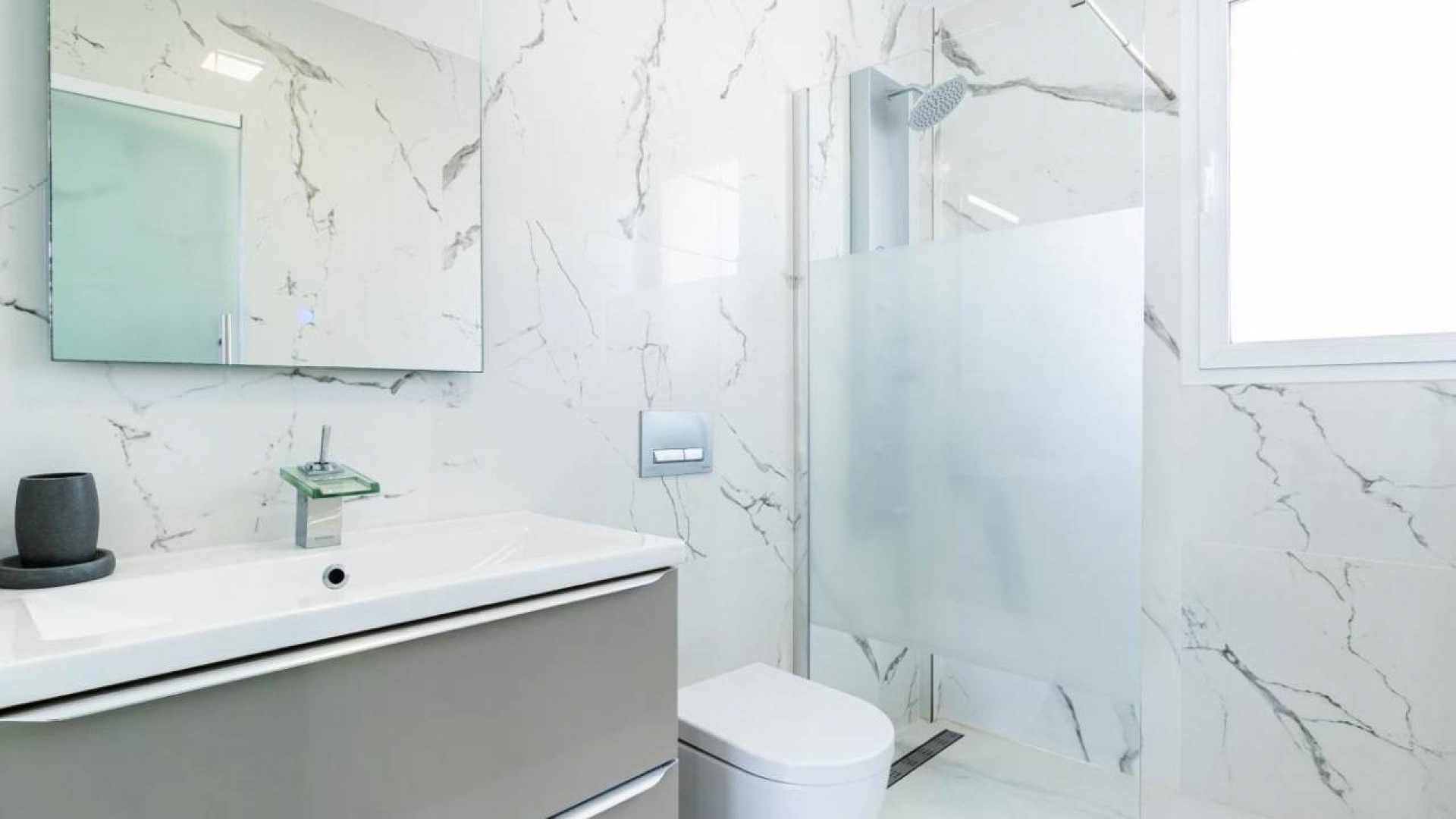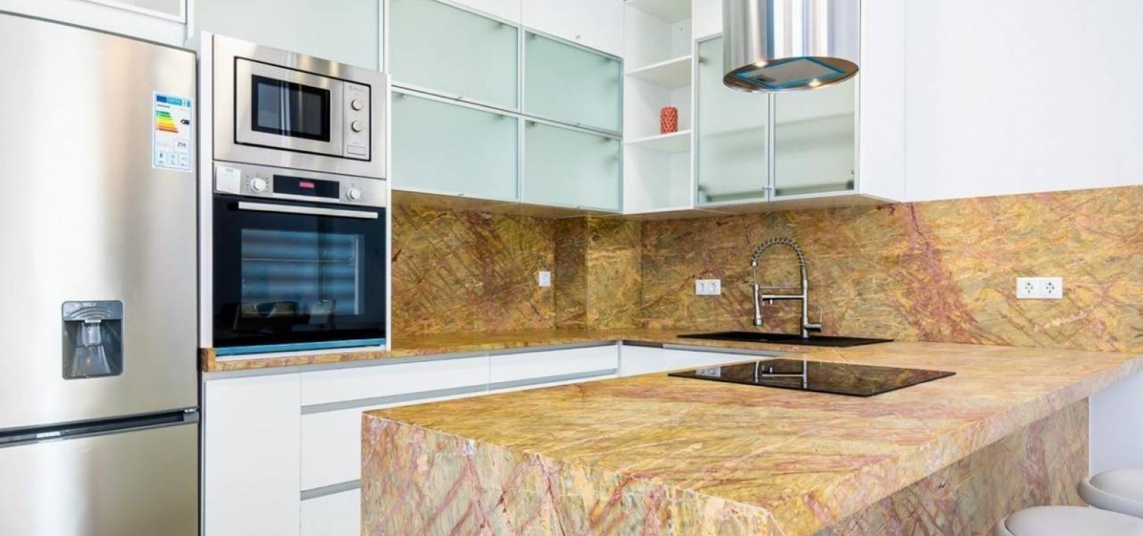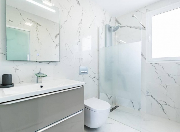 Jede Luxusvilla wurde nach den höchsten Standards entworfen und verfügt über einen geräumigen offenen Wohn- und Essbereich, der nahtlos in eine Sonnenterrasse und einen privaten Garten mit Pool übergeht. Die moderne Küche ist komplett mit Geräten höchster Qualität ausgestattet, darunter ein Backofen, ein Kochfeld, eine Dunstabzugshaube, ein Kühl-/Gefrierschrank, ein Geschirrspüler, eine Waschmaschine und eine Mikrowelle. Im Erdgeschoss gibt es ein Doppelzimmer mit Einbauschränken und eigenem Bad sowie ein zusätzliches Gästebad für zusätzlichen Komfort.