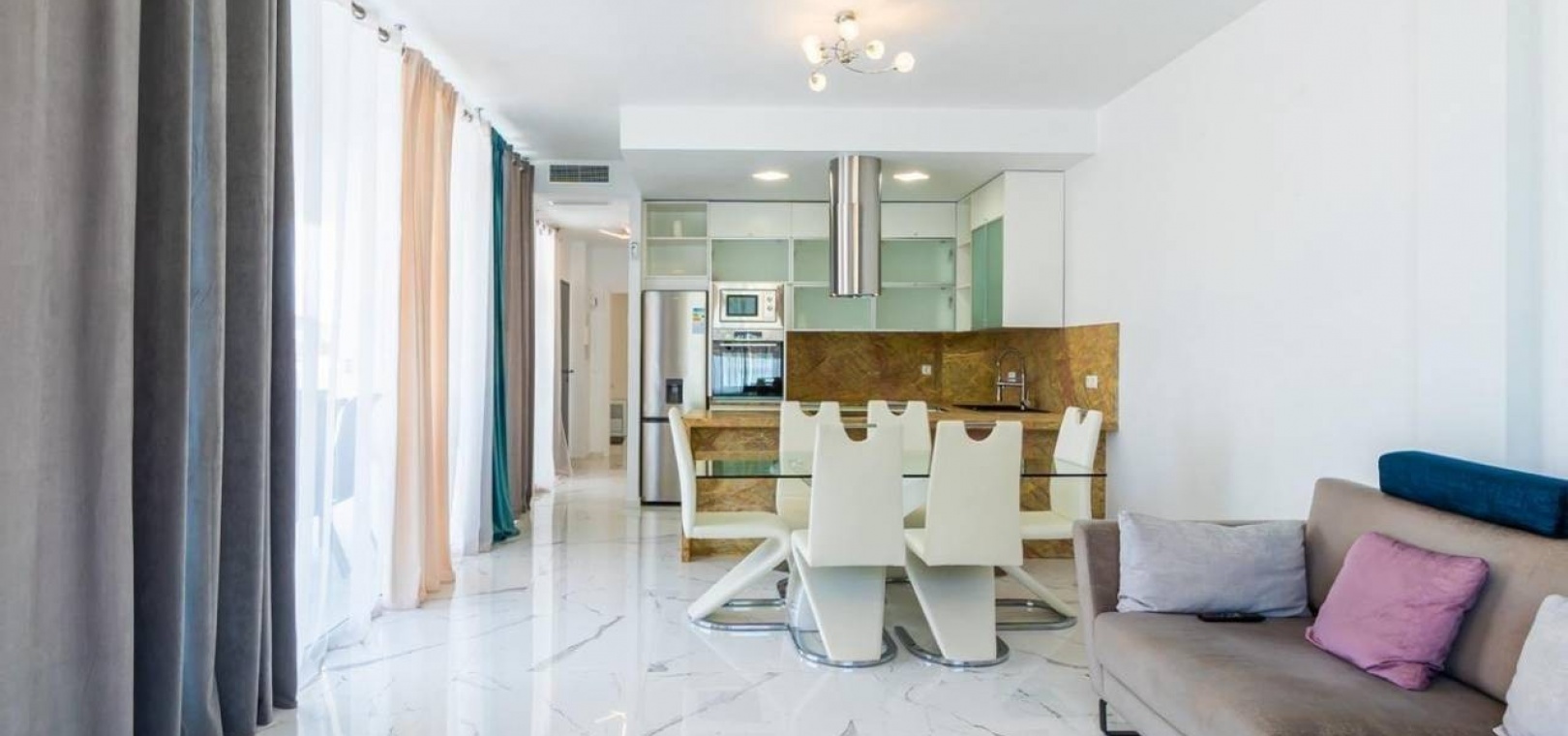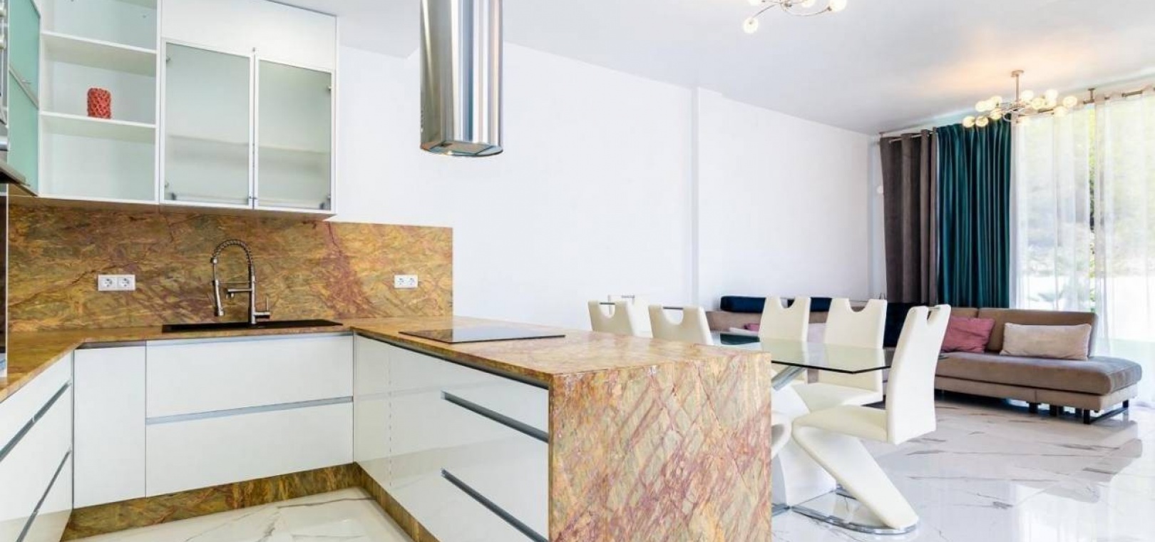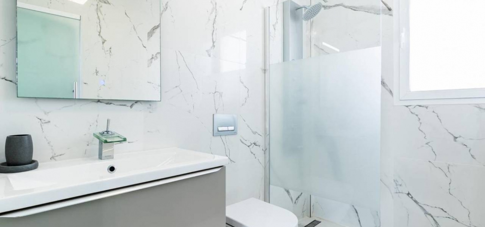 Jede Luxusvilla wurde nach den höchsten Standards entworfen und verfügt über einen geräumigen offenen Wohn- und Essbereich, der nahtlos in eine Sonnenterrasse und einen privaten Garten mit Pool übergeht. Die moderne Küche ist komplett mit Geräten höchster Qualität ausgestattet, darunter ein Backofen, ein Kochfeld, eine Dunstabzugshaube, ein Kühl-/Gefrierschrank, ein Geschirrspüler, eine Waschmaschine und eine Mikrowelle. Im Erdgeschoss gibt es ein Doppelzimmer mit Einbauschränken und eigenem Bad sowie ein zusätzliches Gästebad für zusätzlichen Komfort.