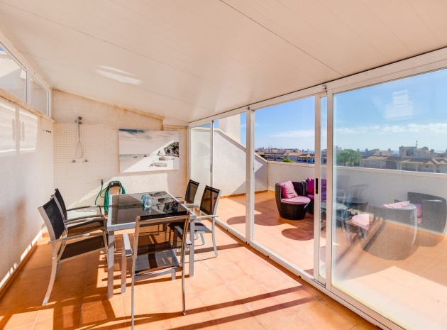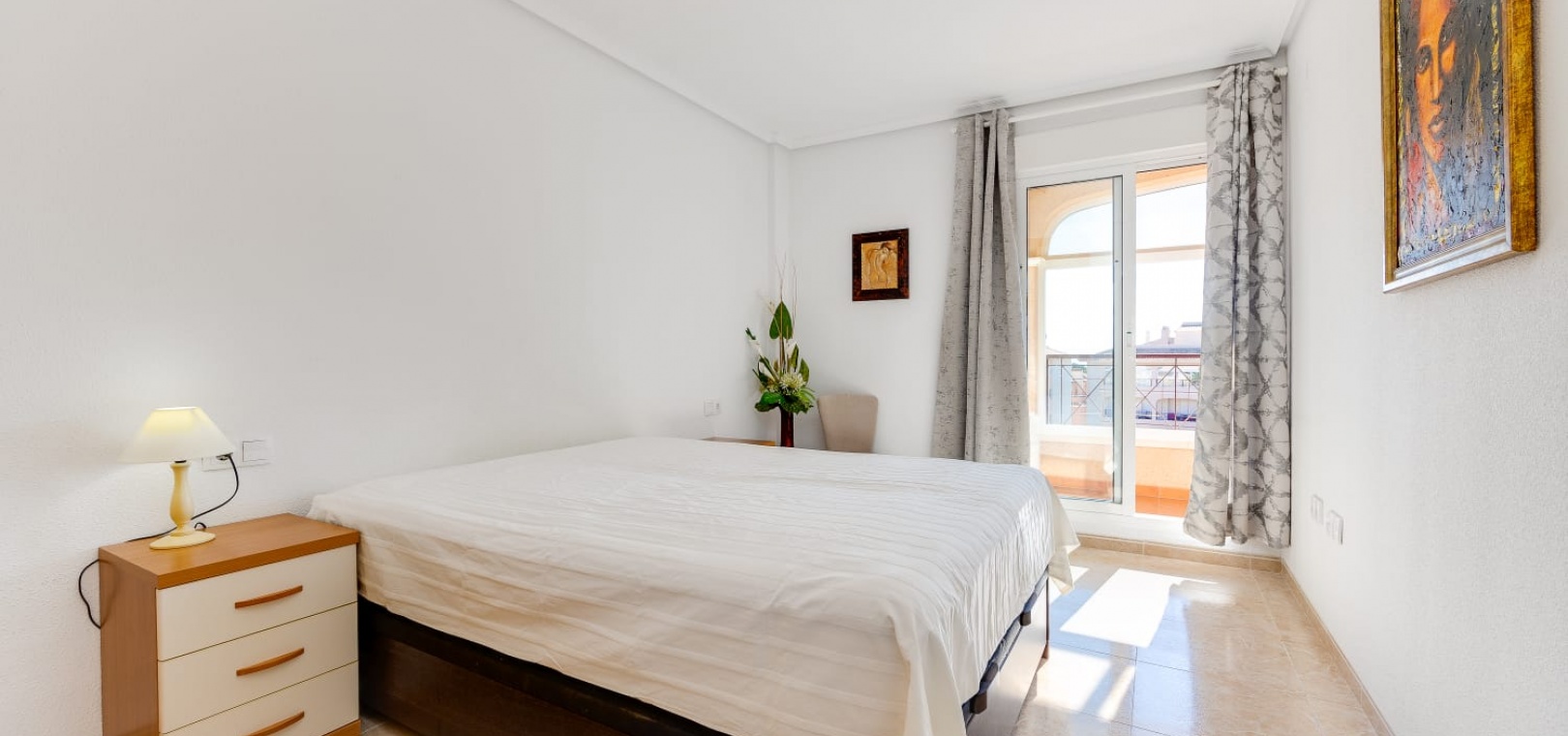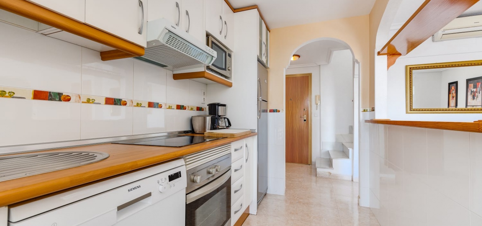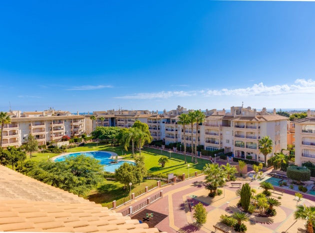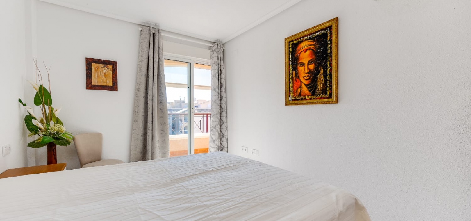 Eine nach Süden ausgerichtete Dachgeschosswohnung mit 3 Schlafzimmern und 2 Bädern und privatem Solarium auf dem Dach in Res Laguna Green, Playa Flamenca, Costa Blanca.