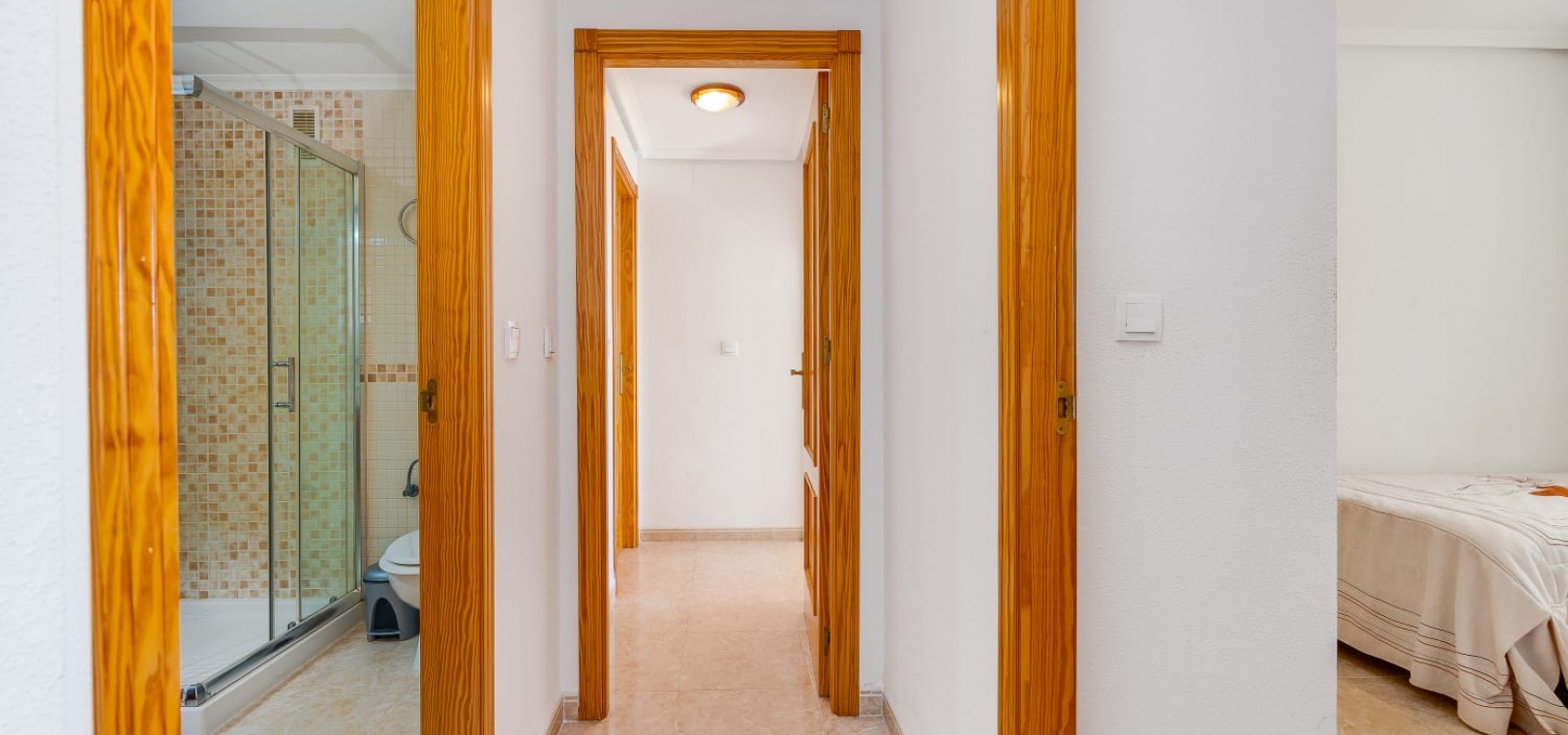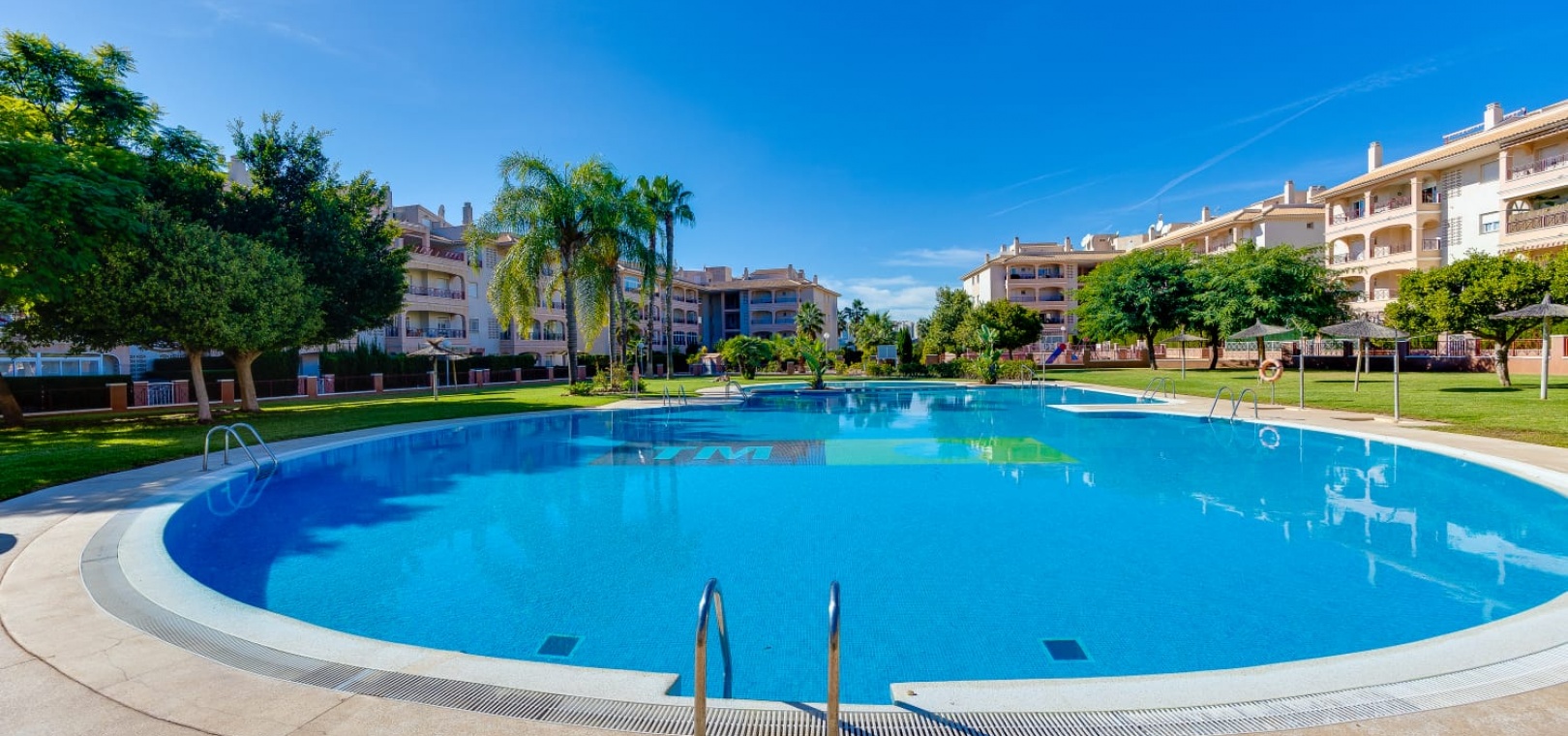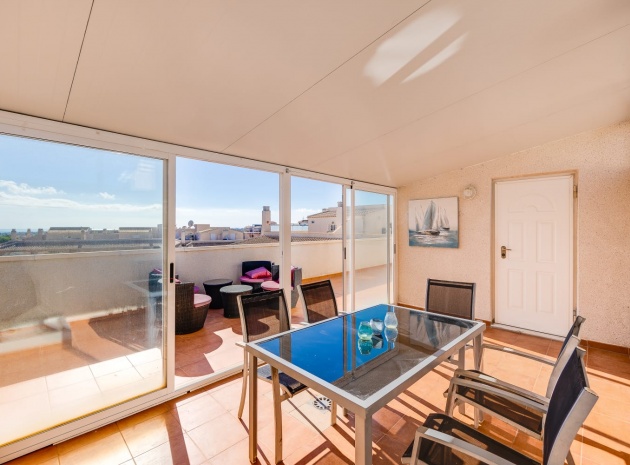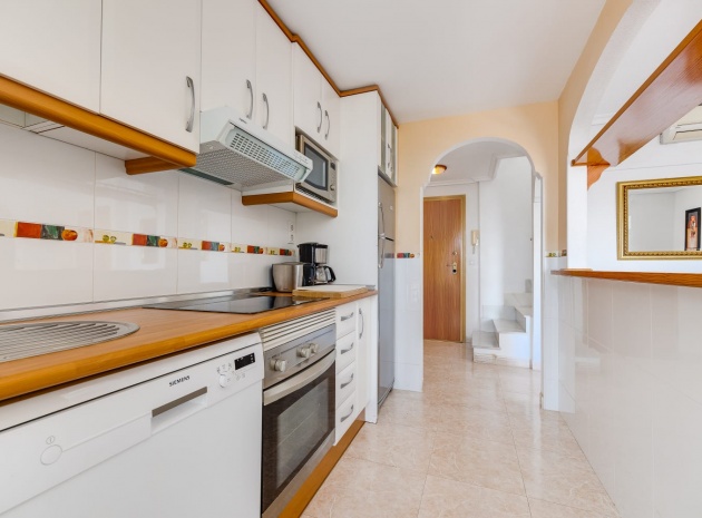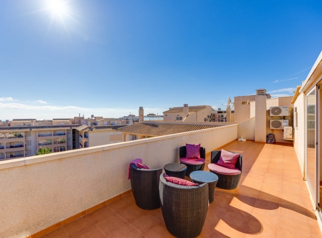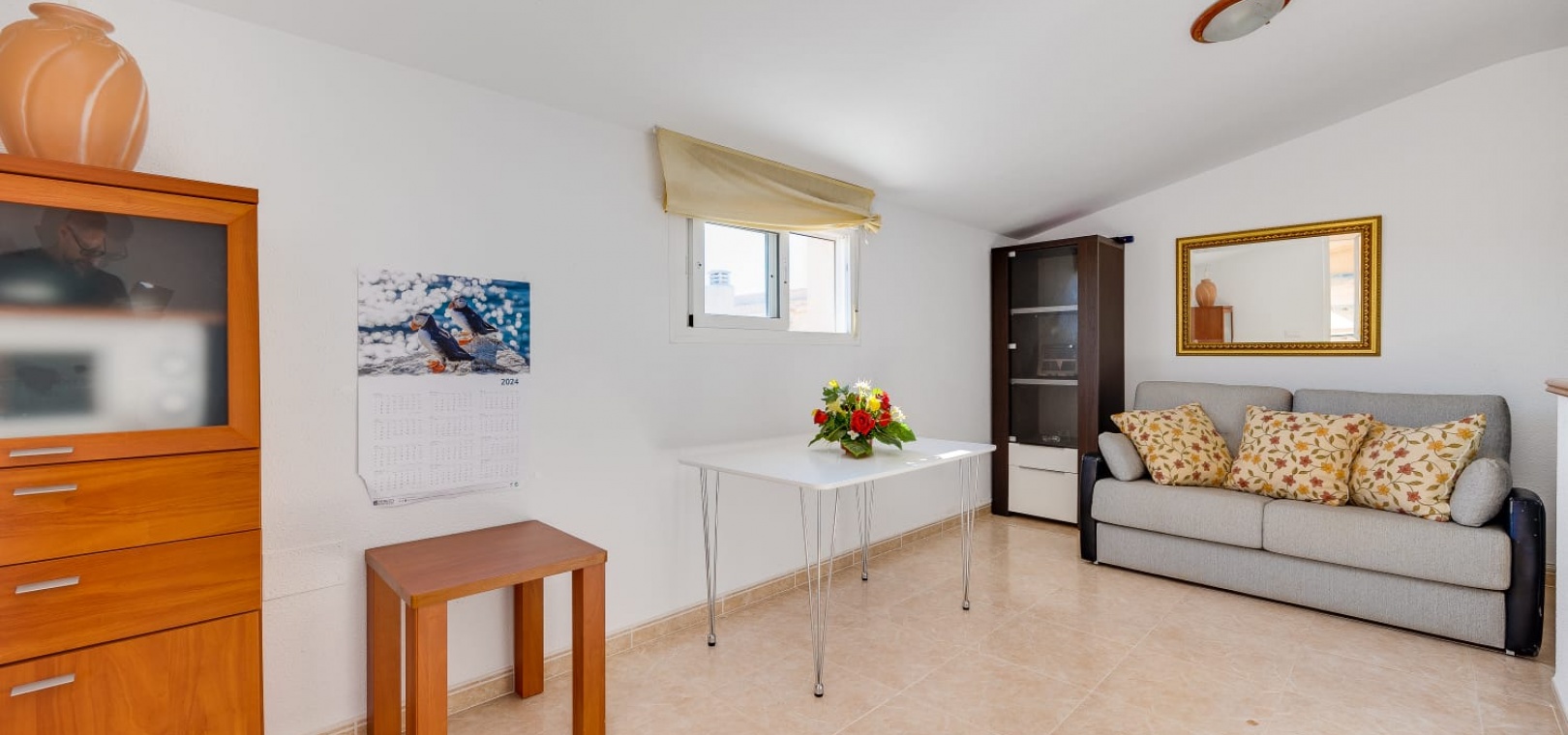 Eine nach Süden ausgerichtete Dachgeschosswohnung mit 3 Schlafzimmern und 2 Bädern und privatem Solarium auf dem Dach in Res Laguna Green, Playa Flamenca, Costa Blanca.