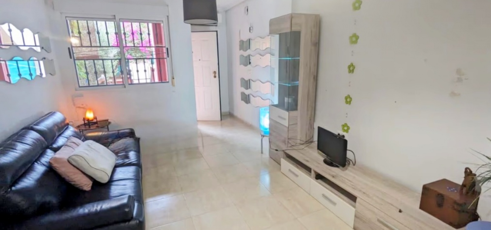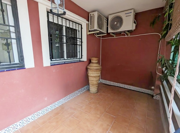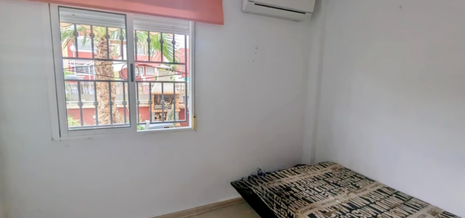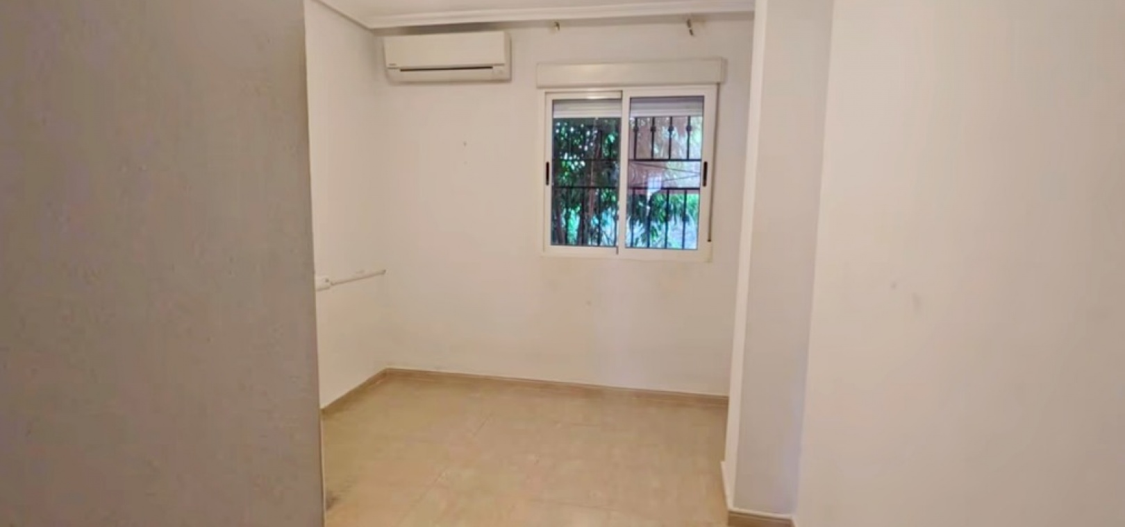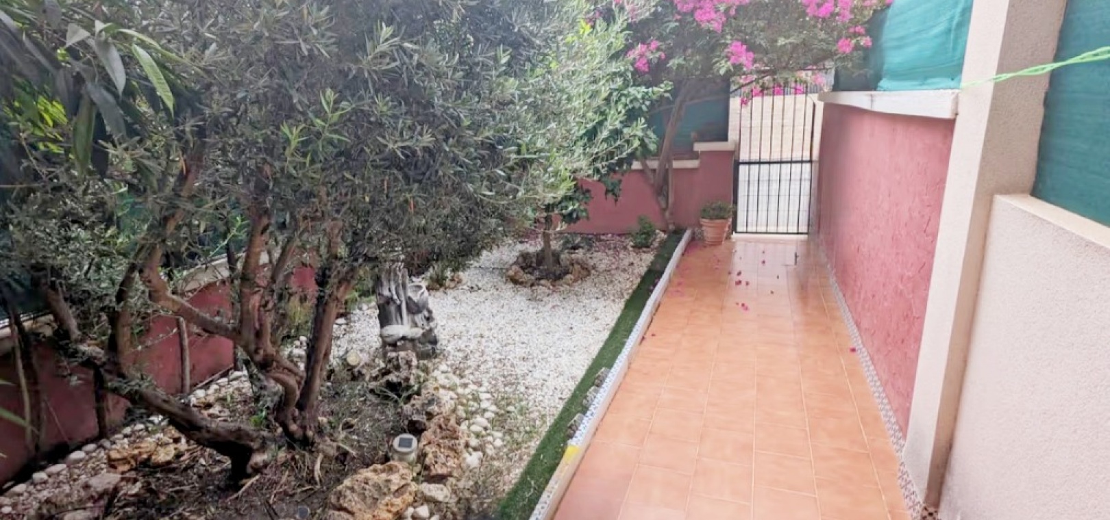 Wohn-/Esszimmer mit Klimaanlage (warm und kalt), separate voll ausgestattete Küche, separater Hauswirtschaftsraum, 2 Doppelzimmer mit Einbauschränken, 1 Duschraum, 1 Familienbadezimmer, überdachte Vorderterrasse und ein Garten vorne und hinten.