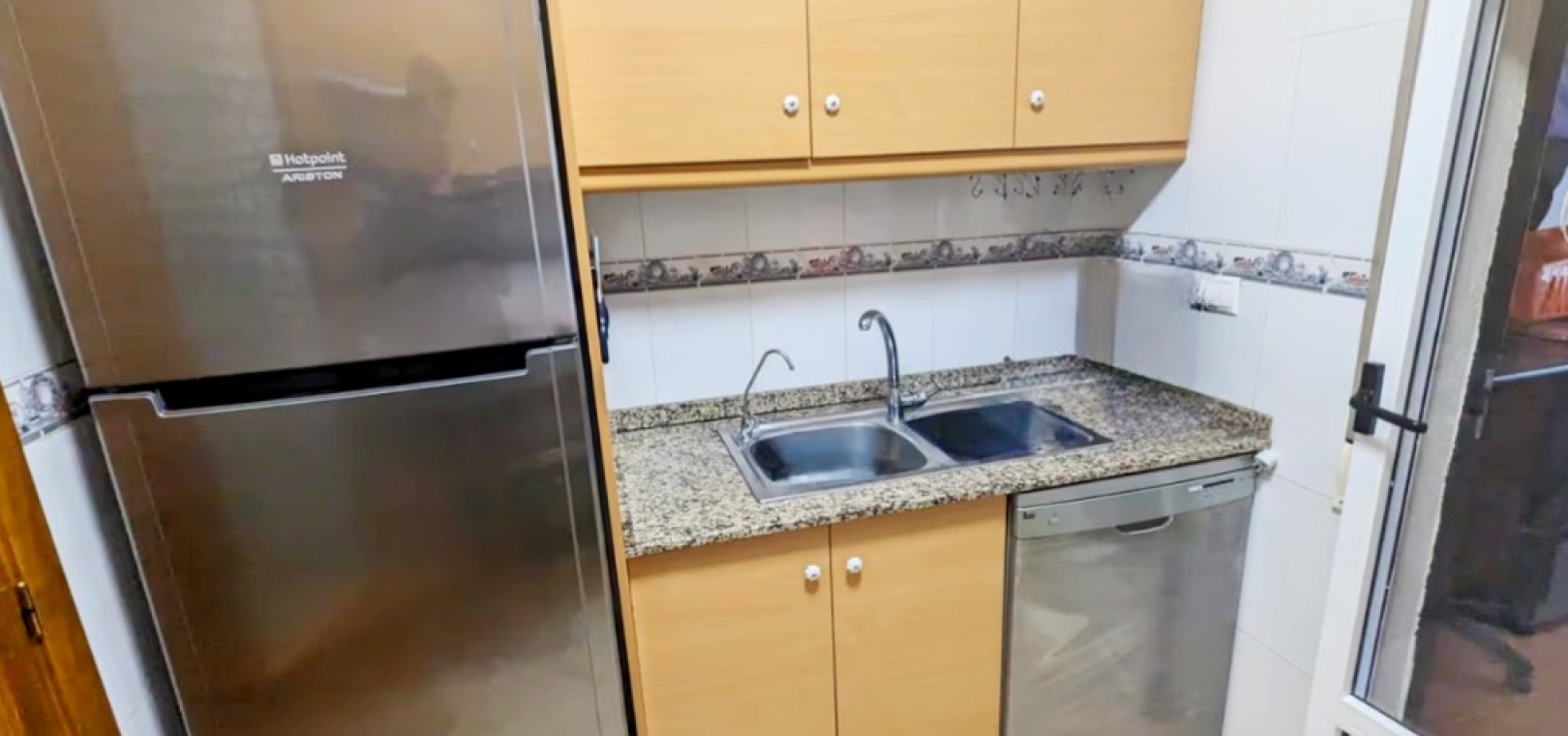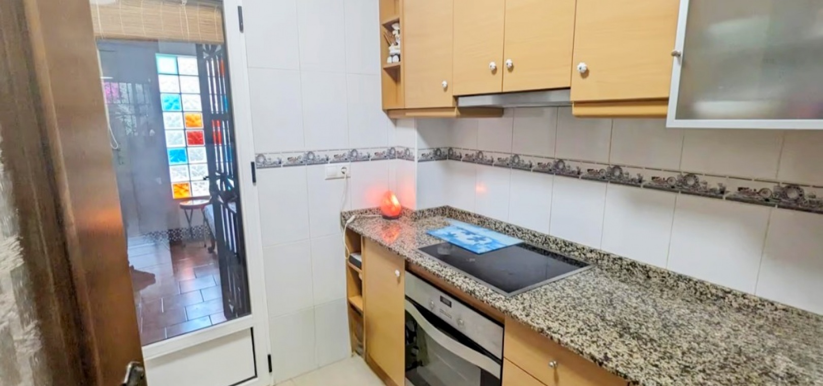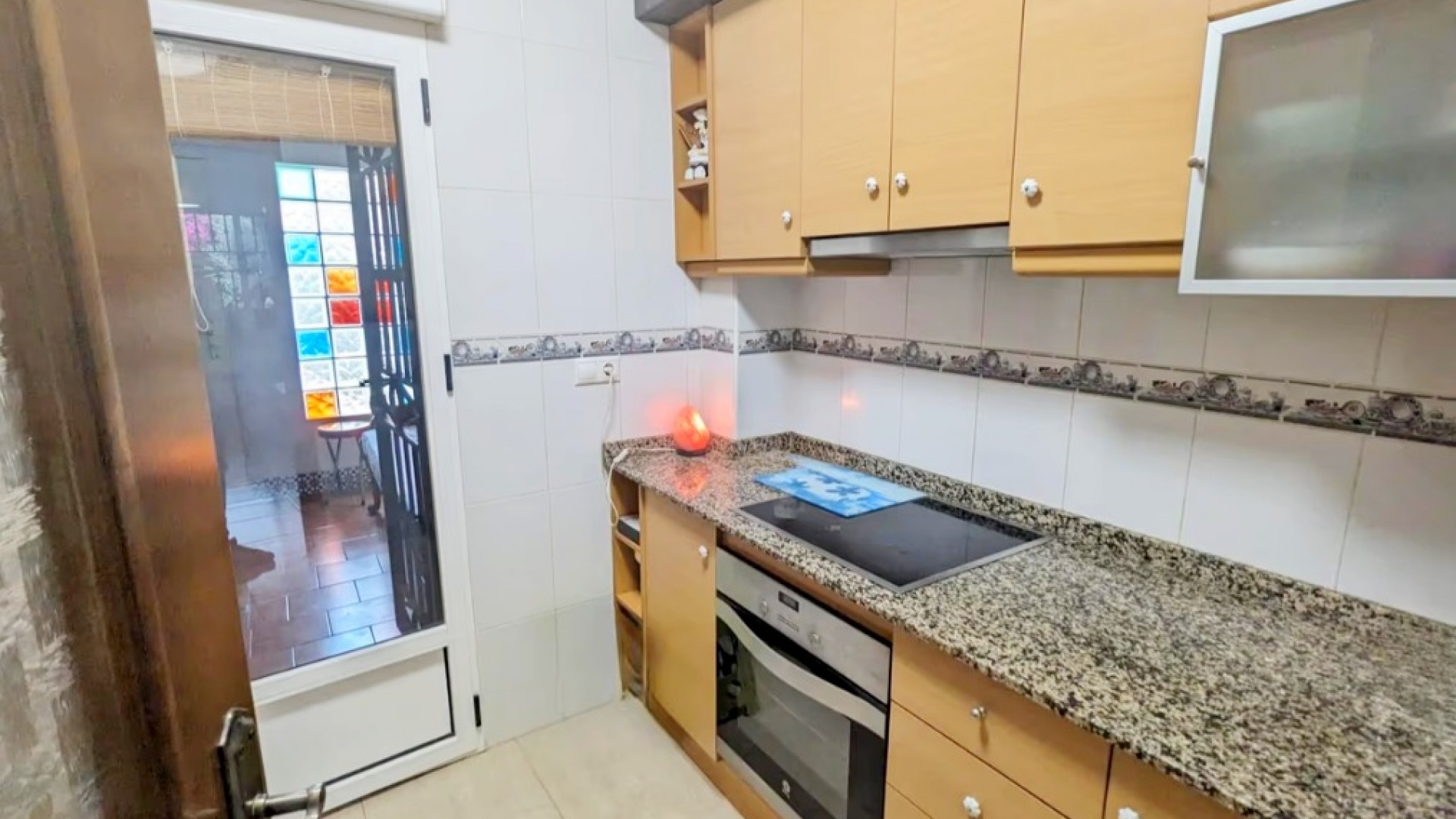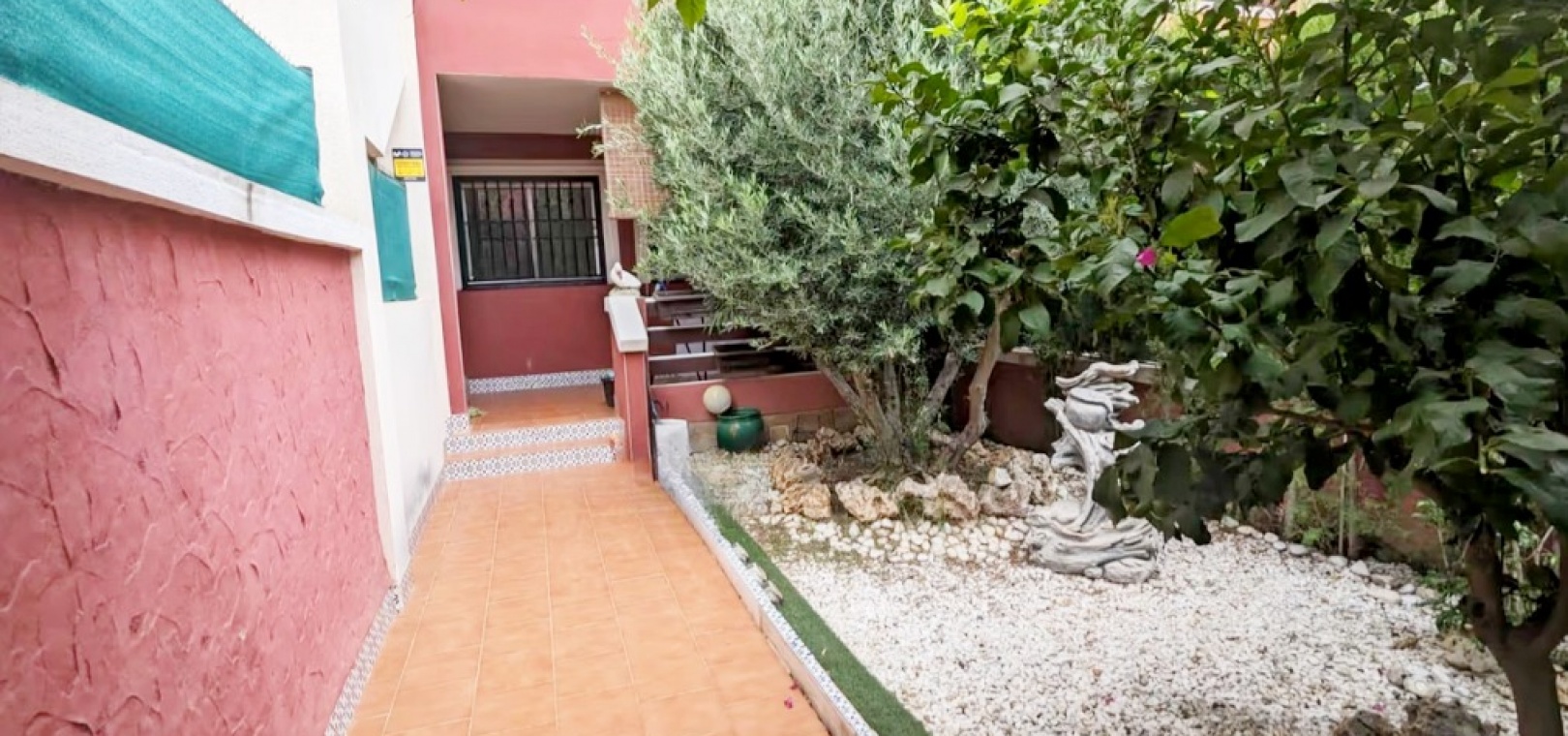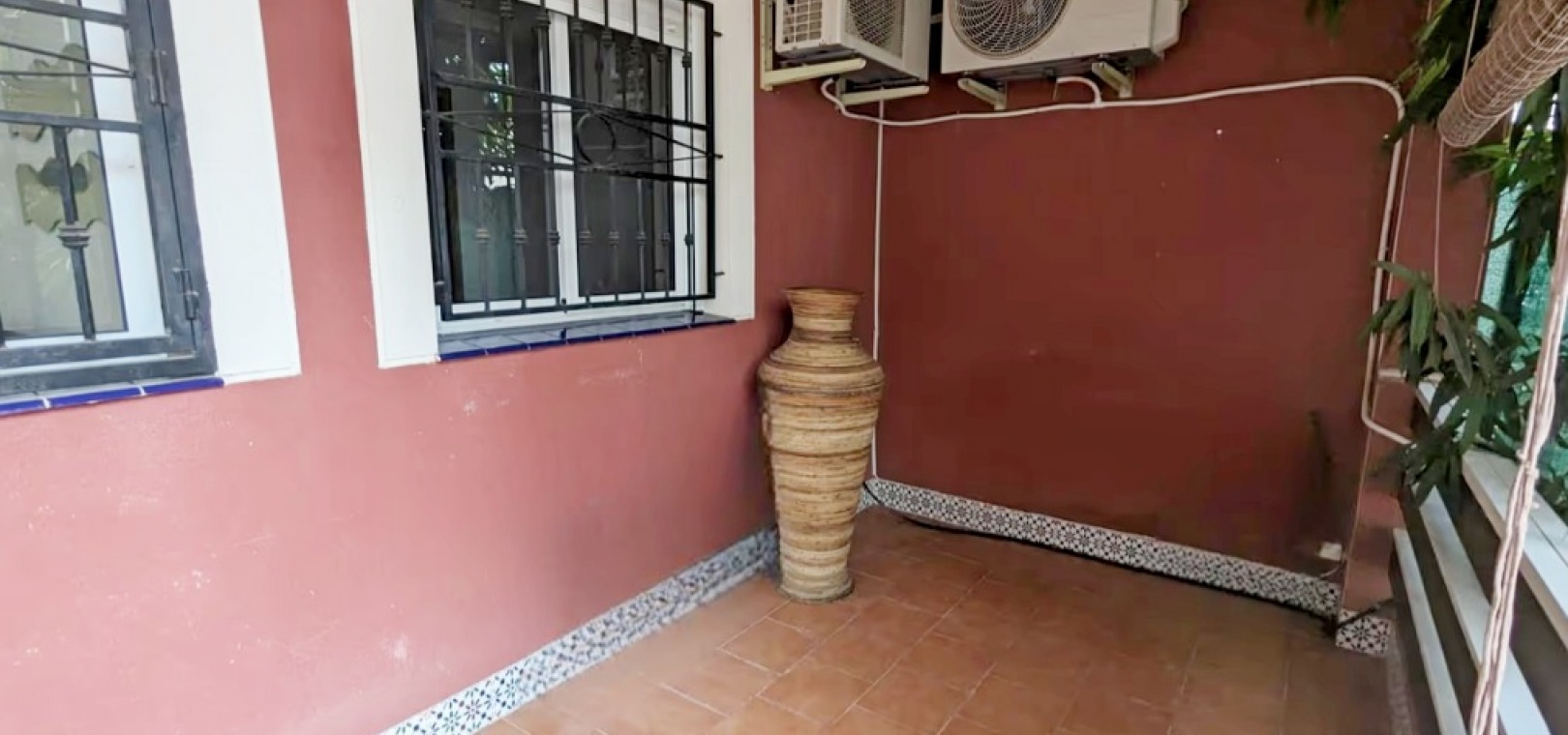 Wohn-/Esszimmer mit Klimaanlage (warm und kalt), separate voll ausgestattete Küche, separater Hauswirtschaftsraum, 2 Doppelzimmer mit Einbauschränken, 1 Duschraum, 1 Familienbadezimmer, überdachte Vorderterrasse und ein Garten vorne und hinten.