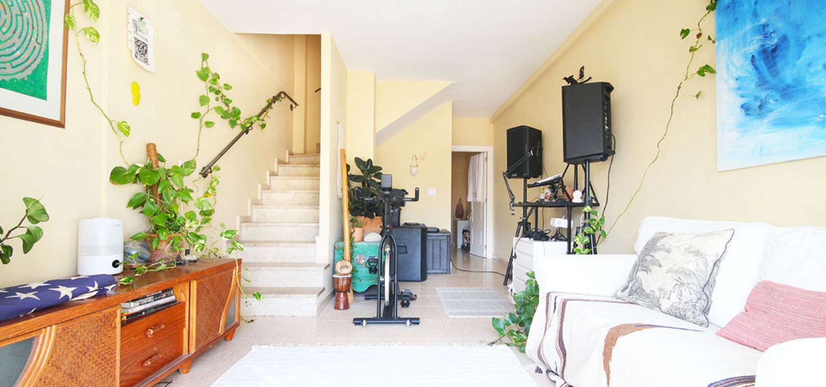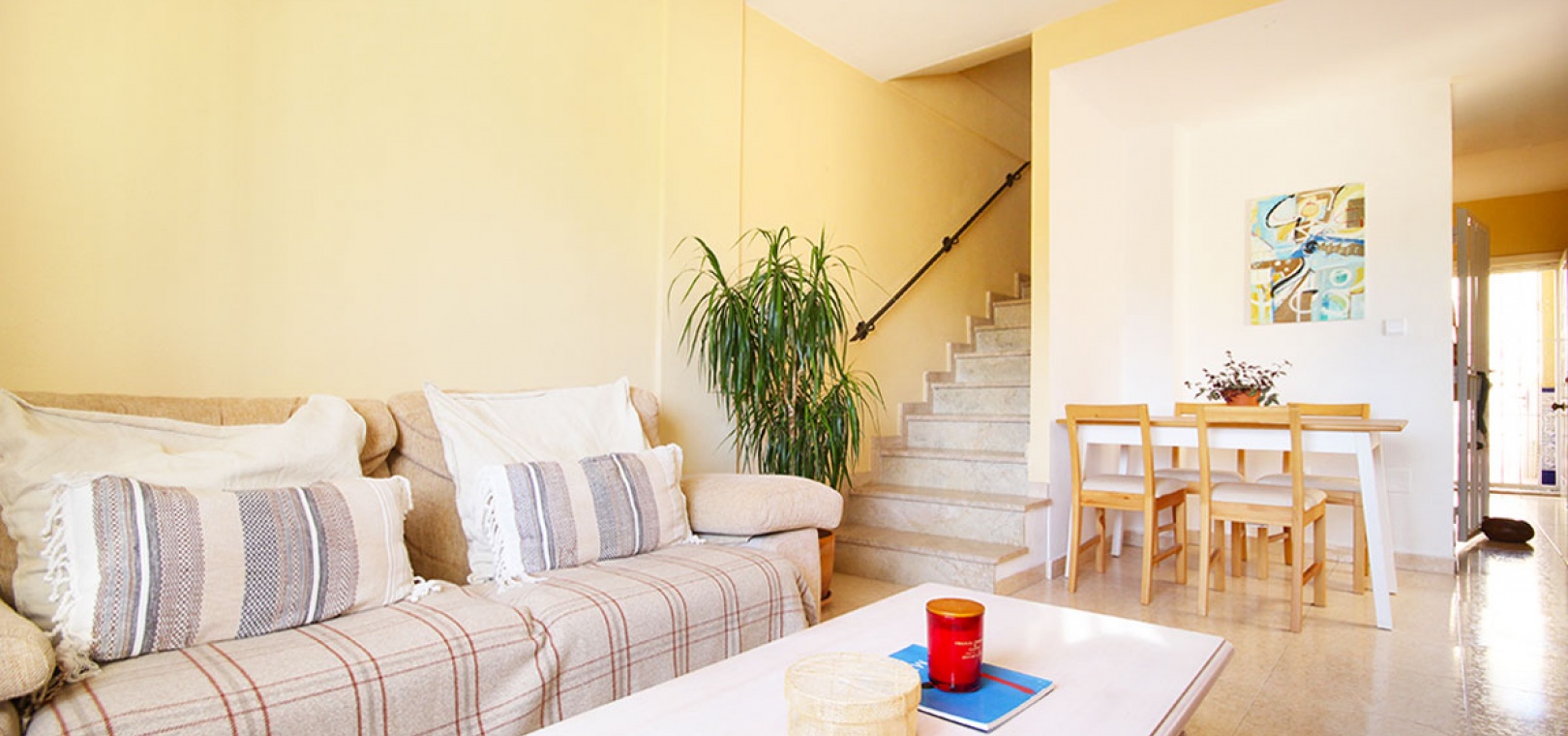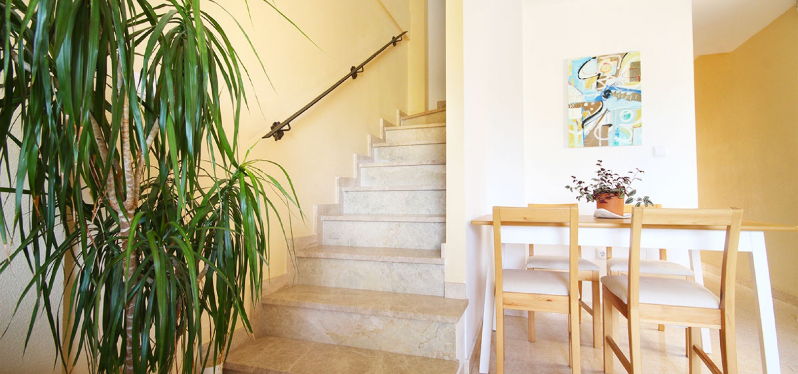 Auf der 2. Etage befinden sich 2 Doppelzimmer, das Hauptschlafzimmer hat Einbauschränke, 1 Familienbadezimmer, einen Balkon auf der Rückseite mit Außentreppe hinauf zum großen privaten Solarium auf dem Dach.