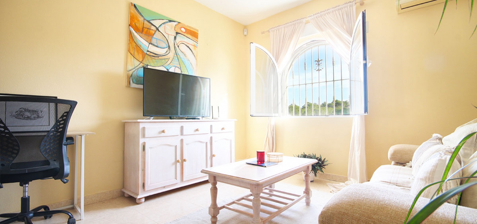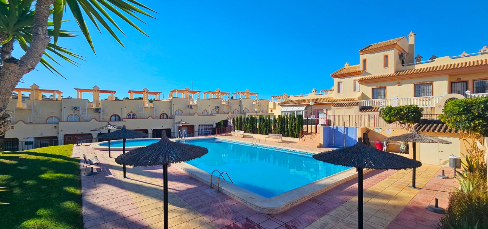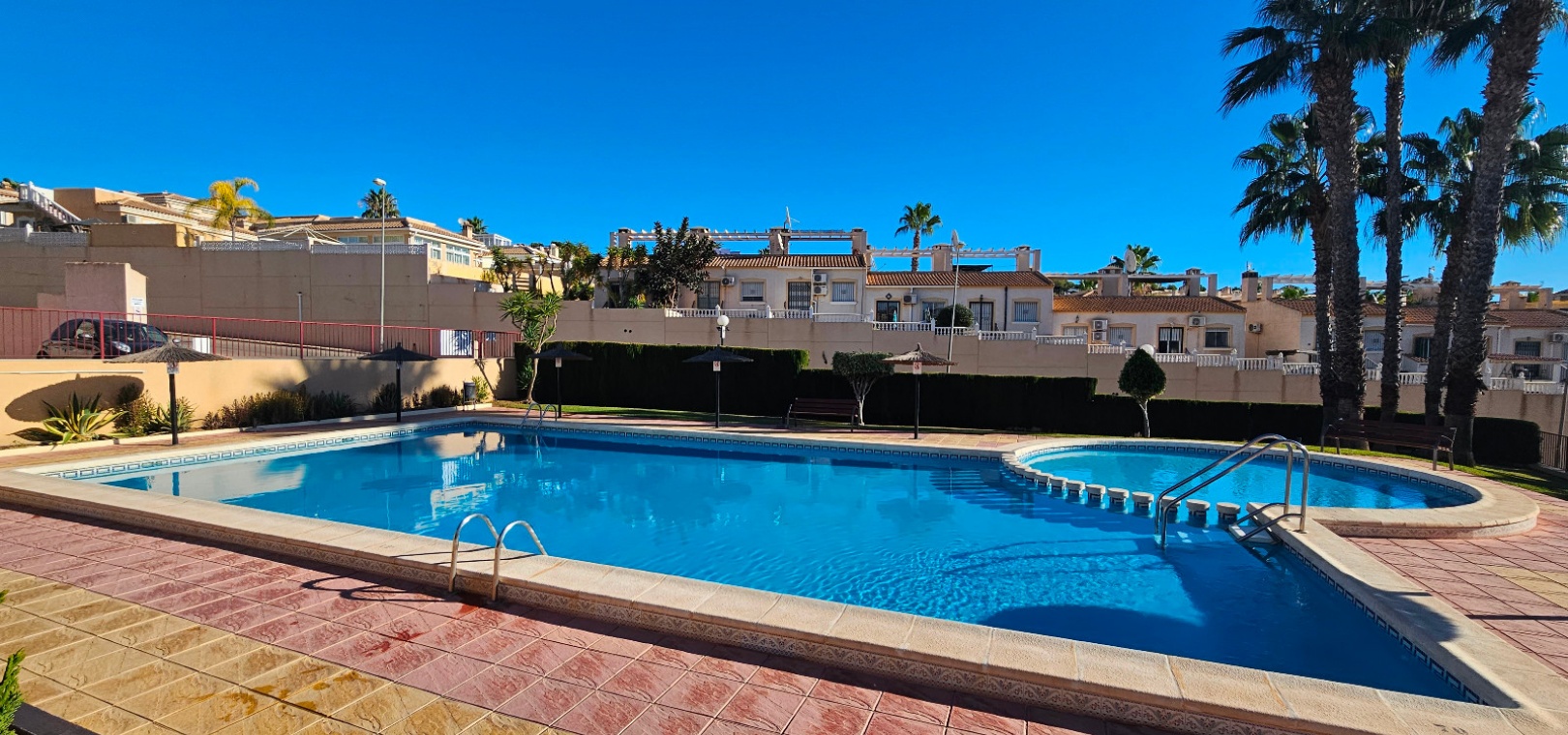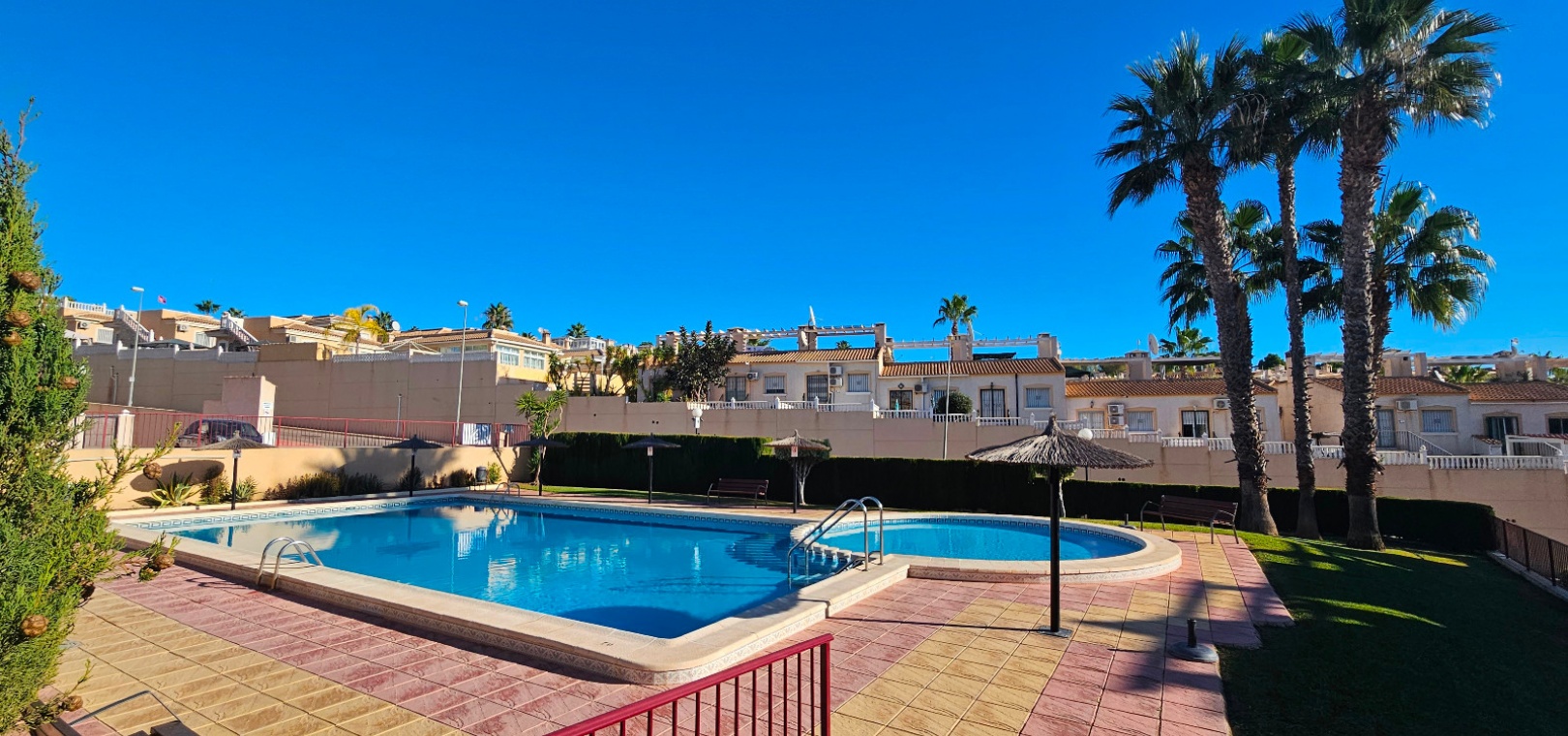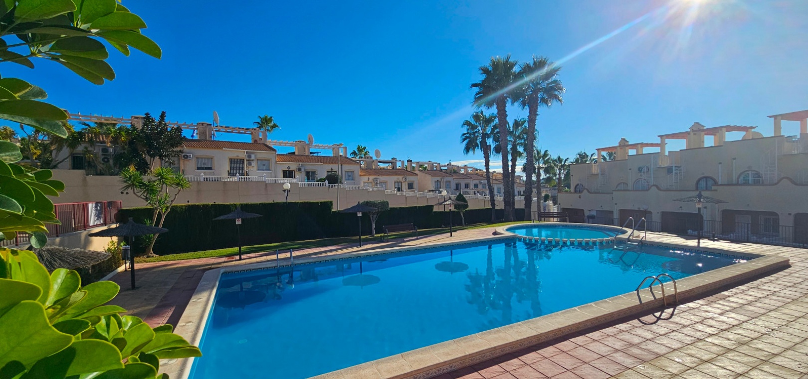 Eine nach Süden ausgerichtete Doppelhaushälfte mit 3 Schlafzimmern, 2 Bädern und privatem Solarium auf dem Dach in Res. Florida Golf, Villamartin, Costa Blanca.