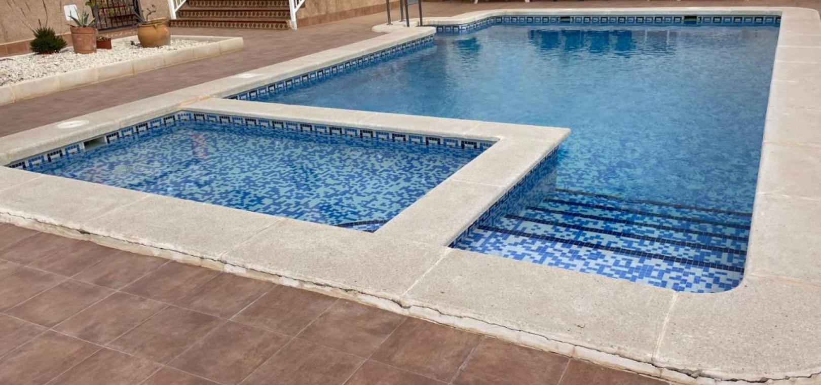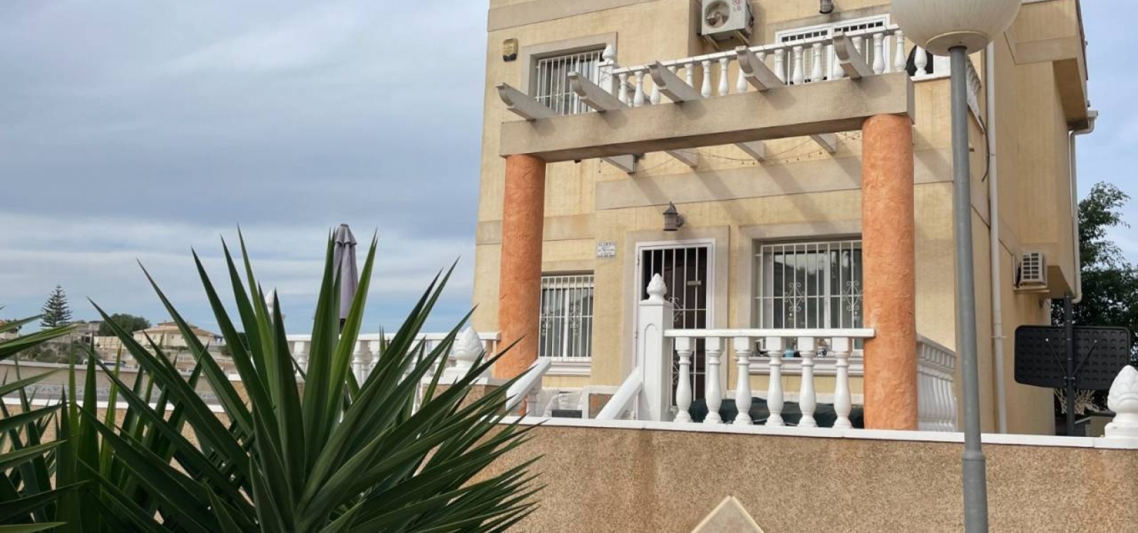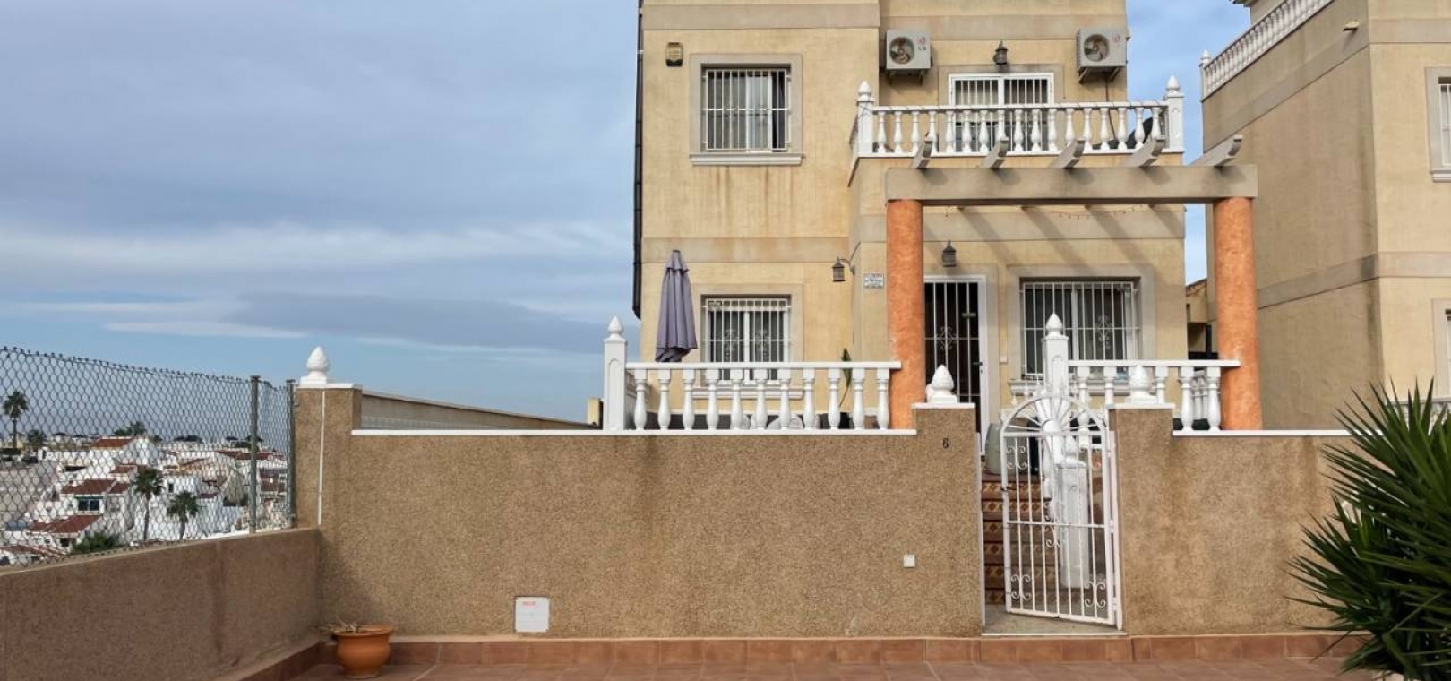 Willkommen in dieser wunderschön eingerichteten, freistehenden Villa, die 2005 erbaut wurde und in einer ruhigen Urbanisation liegt, die Komfort und Bequemlichkeit vereint. Dieses beeindruckende Anwesen verfügt über 3 geräumige Schlafzimmer und 1 Badezimmer sowie eine zusätzliche Toilette und ist damit die ideale Wahl für Familien oder diejenigen, die gerne Gäste beherbergen. Mit einer Gesamtbaufläche von 118 m² ist die Villa durchdacht für modernes Wohnen konzipiert. Die Ausrichtung nach Süden sorgt für reichlich natürliches Licht und bietet einen herrlichen Blick auf den Gemeinschaftspool. Der offene und luftige Grundriss umfasst eine voll ausgestattete Küche, die nahtlos in den Ess- und Wohnbereich übergeht. Die Villa ist mit einer Klimaanlage für ganzjährigen Komfort ausgestattet und verfügt über Einbauschränke in allen drei Schlafzimmern, die reichlich Stauraum bieten. Treten Sie hinaus auf Ihre private Terrasse, den perfekten Ort für entspanntes Leben im Freien und Unterhaltung mit Freunden und Familie. Das Anwesen verfügt außerdem über eine Dachterrasse, die zusätzlichen Platz im Freien bietet, um sonnige Tage und atemberaubende Aussichten zu genießen. Für diejenigen, die gerne im Freien kochen, verleiht die Außenküche Ihren Unterhaltungsmöglichkeiten eine einzigartige Note. Diese Villa ist in ausgezeichnetem Zustand und wird mit verhandelbaren Möbeln geliefert, sodass Sie den Raum ganz einfach an Ihren Stil anpassen können. Sicherheitsgitter im gesamten Gebäude und Glasfaser-Internet sorgen für Seelenfrieden und Konnektivität. Nur 5 Minuten von wichtigen Annehmlichkeiten, Geschäften, Schulen und Golfplätzen und nur 10 Minuten vom Strand entfernt gelegen, bietet dieser Standort sowohl Komfort als auch Freizeit. Der Flughafen ist in 35 Minuten leicht erreichbar, was das Reisen zu einem Kinderspiel macht. Genießen Sie die Vorteile eines Gemeinschaftspools, der sich perfekt zum Abkühlen an warmen, sonnigen Tagen eignet. Dank der verfügbaren Parkplätze abseits der Straße haben Sie immer einfachen Zugang zu Ihrem Zuhause. Verpassen Sie nicht die Gelegenheit, diese fantastische freistehende Villa zu besitzen, in der eine Mischung aus modernem Wohnen, Komfort und einer lebendigen Gemeinschaft auf Sie wartet! Kopieren Regenerieren