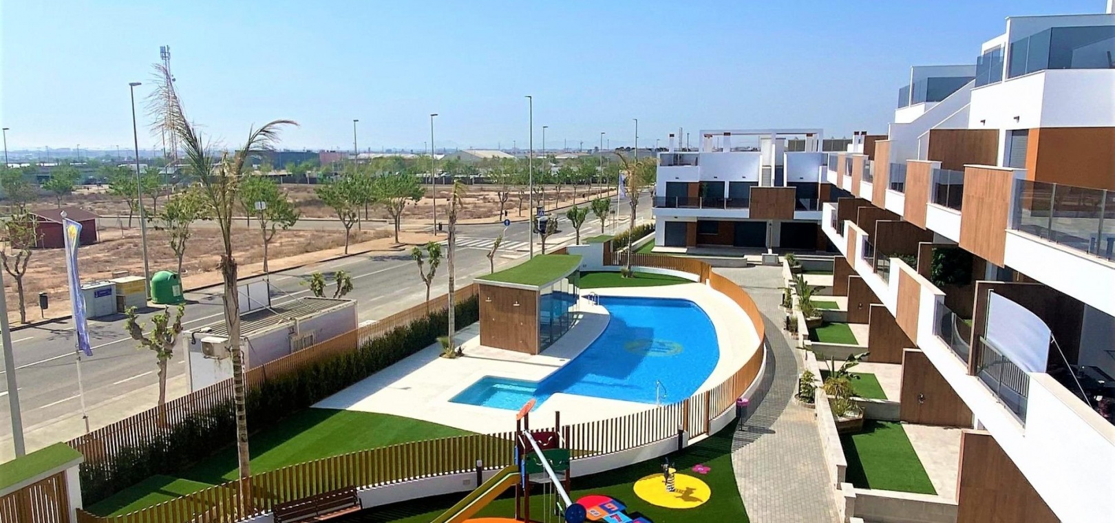 Entdecken Sie eine neu gebaute Wohnanlage in Pilar de la Horadada, die eine perfekte Kombination aus modernem Design und Komfort bietet. Diese außergewöhnliche Anlage bietet Bungalows, Apartments und Penthäuser, die den höchsten Ansprüchen an zeitgemäßes Wohnen gerecht werden.