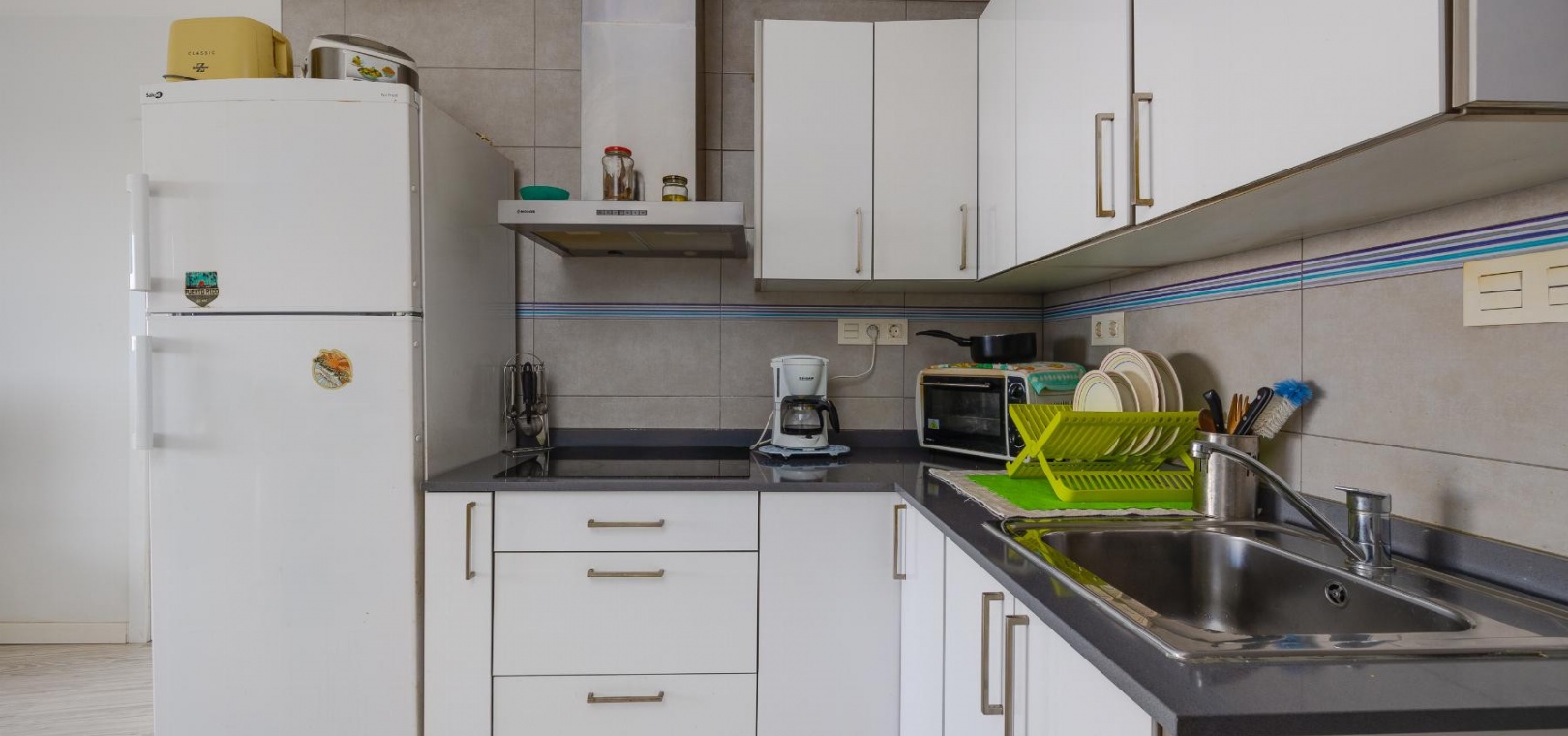 Wohn-/Esszimmer mit Klimaanlage (warm/kalt), eine offene, voll ausgestattete Küche, 2 Doppelzimmer, beide mit Einbauschränken, 1 neu eingerichtetes Duschbad, großer Balkon mit freiem Blick auf das Meer, sichere Wohnanlage, Gemeinschaftspool, Gemeinschaftsparkplatz und vieles mehr.