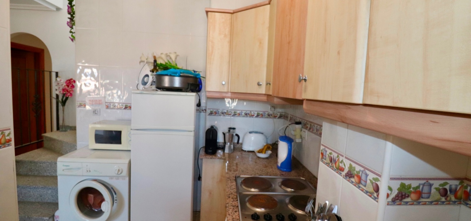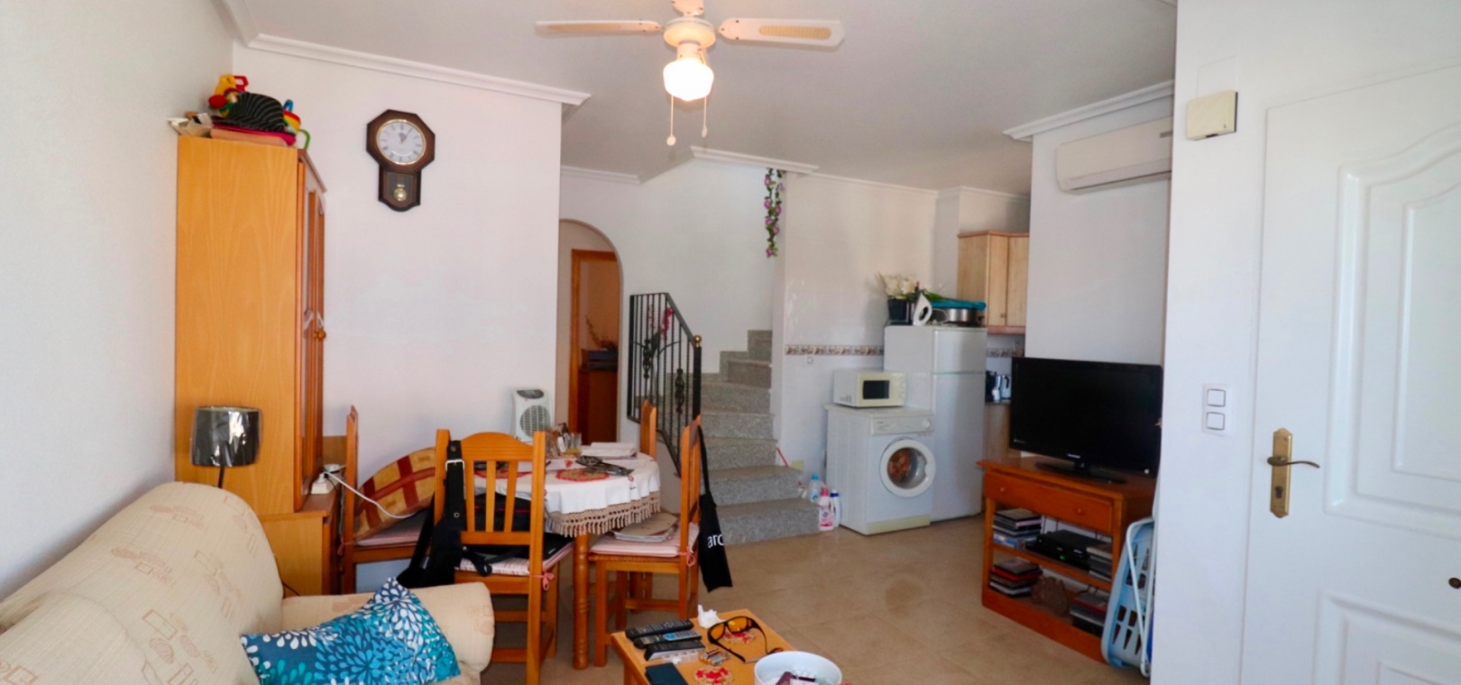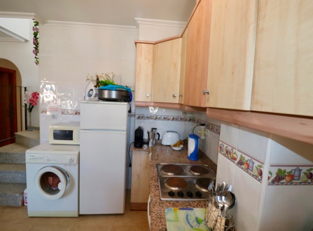 Dieser charmante Bungalow in der obersten Etage liegt im malerischen Viertel Los Palacios auf Formentera del Segura und lädt Sie ein, eine Kombination aus modernem Komfort und traditionellem spanischen Charme zu erleben. Beim Betreten werden Sie von einem offenen Wohn- und Essbereich begrüßt, der Wärme und Licht ausstrahlt und einen idealen Raum zum Entspannen und Unterhalten schafft. Die moderne Küche, komplett ausgestattet mit modernsten Geräten und viel Stauraum, macht die Zubereitung von Mahlzeiten zum Vergnügen.
