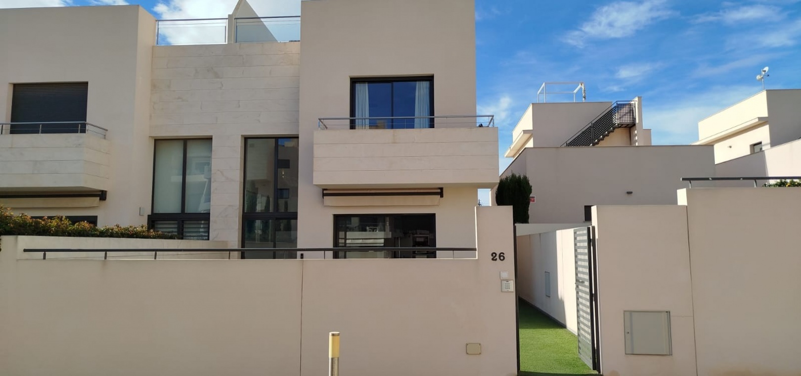Diese moderne Doppelhaushälfte mit 3 Schlafzimmern und 2 Bädern wurde 2017 erbaut und bietet eine perfekte Mischung aus Komfort und Stil. Die Villa liegt in einer ruhigen Nachbarschaft mit einfachem Zugang zu lokalen Annehmlichkeiten und bietet einen atemberaubenden Meerblick, was ihre Attraktivität noch steigert.