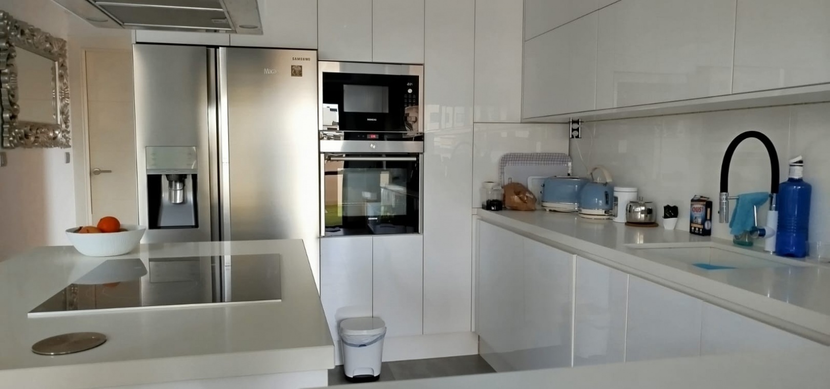 Der geräumige offene Wohnbereich ist modern ausgestattet und schafft eine helle und einladende Atmosphäre. Die voll ausgestattete Küche ist sowohl funktional als auch ästhetisch gestaltet und eignet sich perfekt zum Kochen und Unterhalten von Gästen.