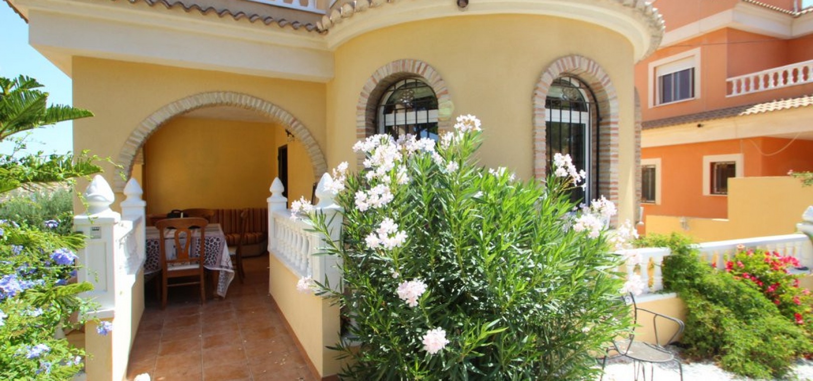 Schöne freistehende Villa in Villamartin, bietet in den Wohnbereich 3 Schlafzimmer, Badezimmer, WC, geräumiges Wohn / Esszimmer, eine voll ausgestattete Küche. Die Villa verfügt über einen privaten unter Build-Wohnung mit direktem Zugang zum Poolbereich und bietet Doppelzimmer, Badezimmer, moderne offene Küche und Wohn/ Esszimmer. Komplett mit Terrassen, Balkon, etablierten Garten-und Privat 8 x 3m Pool. Im Jahr 2004 erbaute und ist zu einem hohen Standard beibehalten und werden verkauft Teil eingerichtet, mit Sicherheits-Rollläden, Gitter, Klimaanlage, und Sat-TV. Nur eine kurze Fahrt zu den beliebten Villamartin Plaza, Golfplatz und Strände der Orihuela Costa. Kontaktieren Sie uns heute für eine Besichtigung.