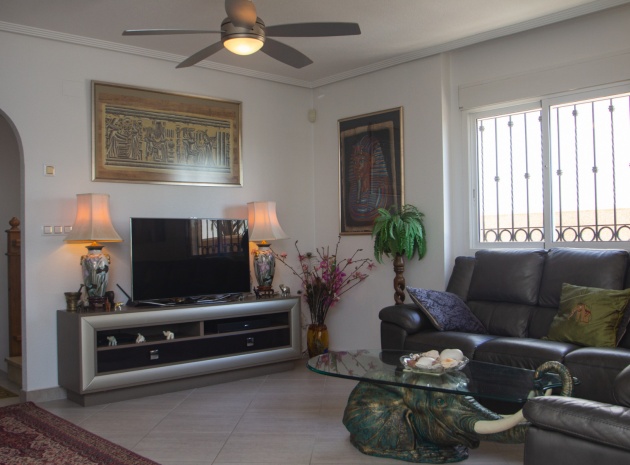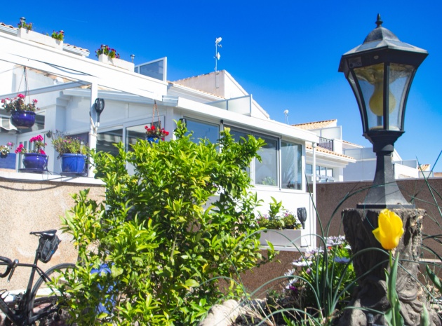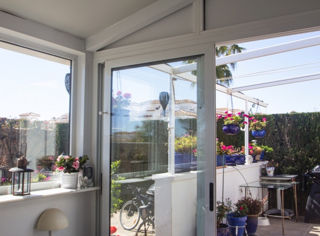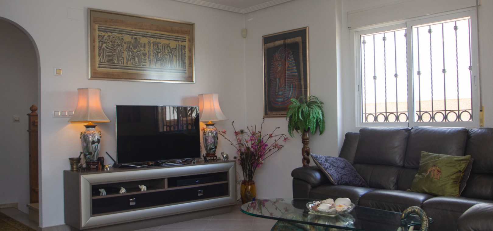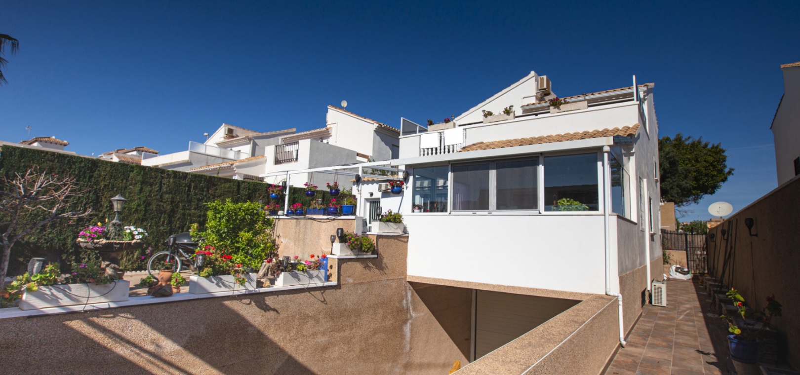 Dieses einzigartige Anwesen befindet sich in der wunderschönen Urbanisation La Ciñuelica in Punta Prima. Beim Betreten der Villa werden Sie von einem geräumigen Wohn- und Essbereich begrüßt. Der perfekte Ort, um gemeinsam Zeit mit der Familie zu verbringen. Wenn Sie den Flur entlanggehen, finden Sie die neu renovierte Küche. Die Küche wurde so gestaltet, dass Ihr Kocherlebnis mit hochwertigen Haushaltsgeräten unvergesslich wird. Im Erdgeschoss befinden sich ein Schlafzimmer mit Doppelbett und ein geräumiges Familienbadezimmer. Im Obergeschoss finden Sie die anderen beiden Schlafzimmer und ein weiteres Badezimmer. Vom Solarium aus können Sie einen atemberaubenden Blick auf Ihre Umgebung genießen. Der weitläufige Garten ist der perfekte Ort, um Ihren grünen Daumen zu üben oder Freunde und Familie zu unterhalten. Das Anwesen wird mit Haushaltsgeräten, Fußbodenheizung, Klimaanlage und vielen weiteren Extras verkauft. Parken Sie Ihr Auto in Ihrer privaten Parkgarage, wo Sie weitere Lagermöglichkeiten haben! Gemeinschaft mit großem Swimmingpool und mediterranen Gärten.