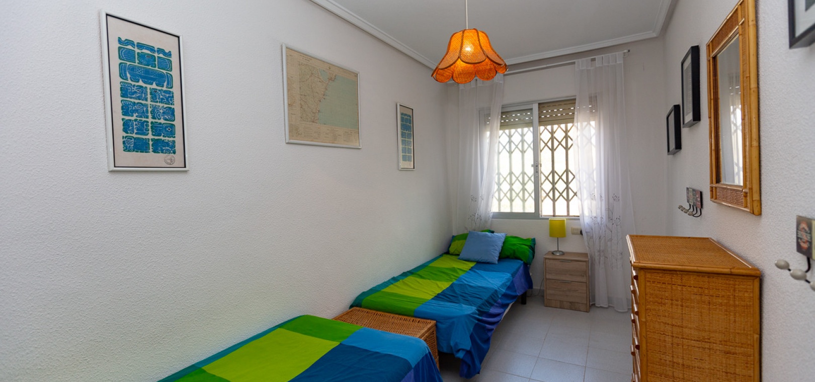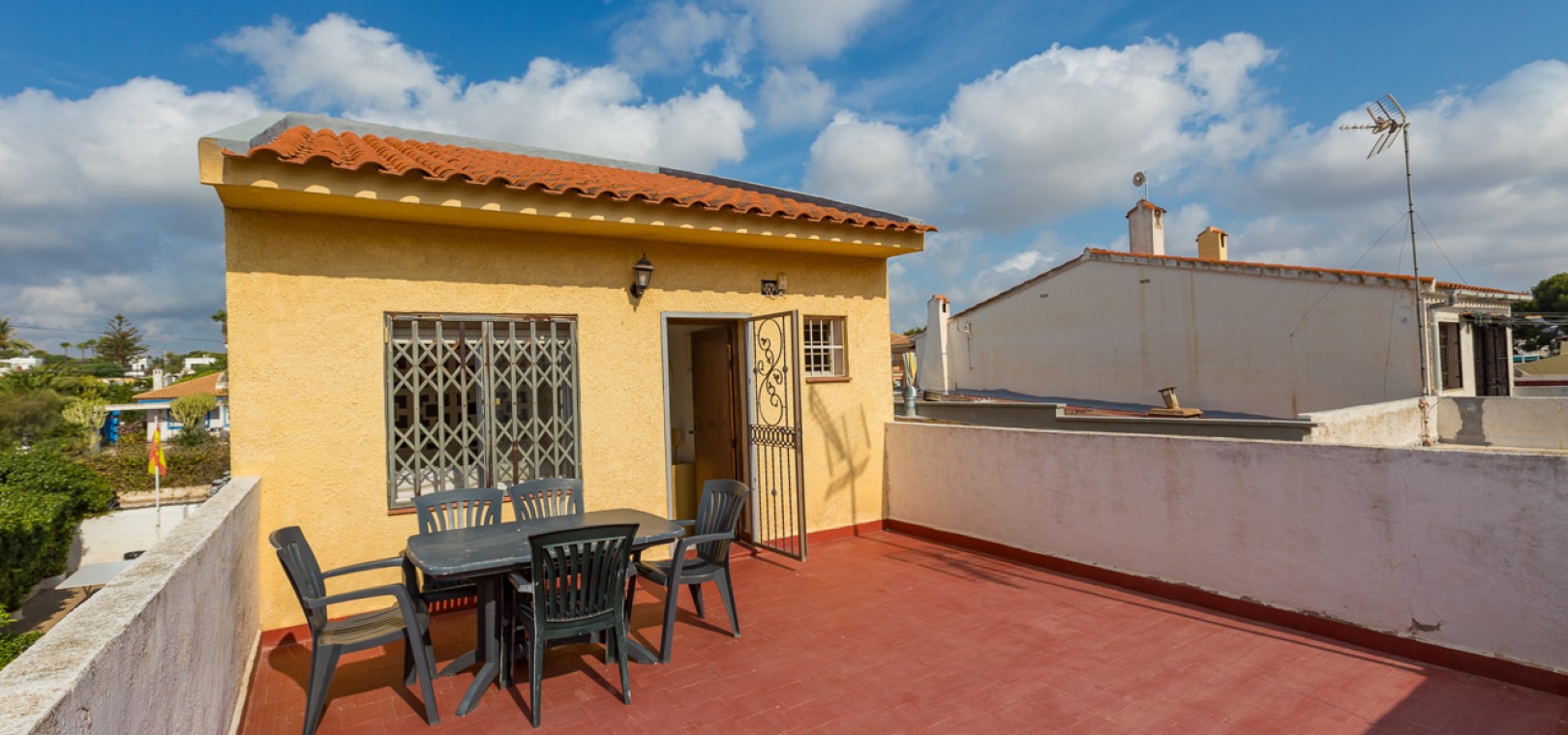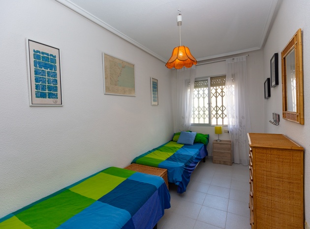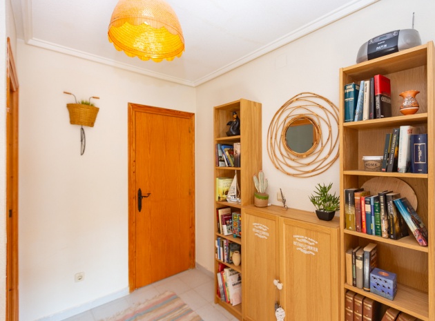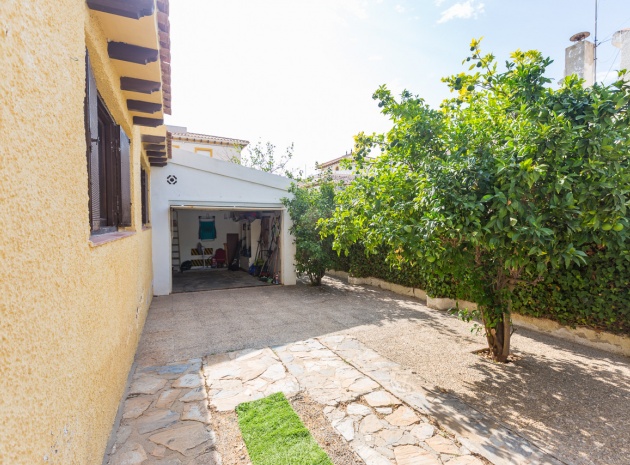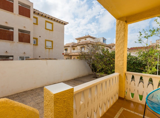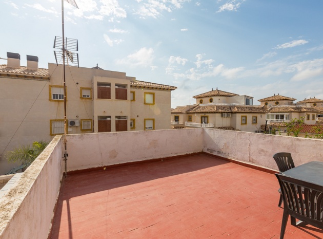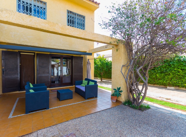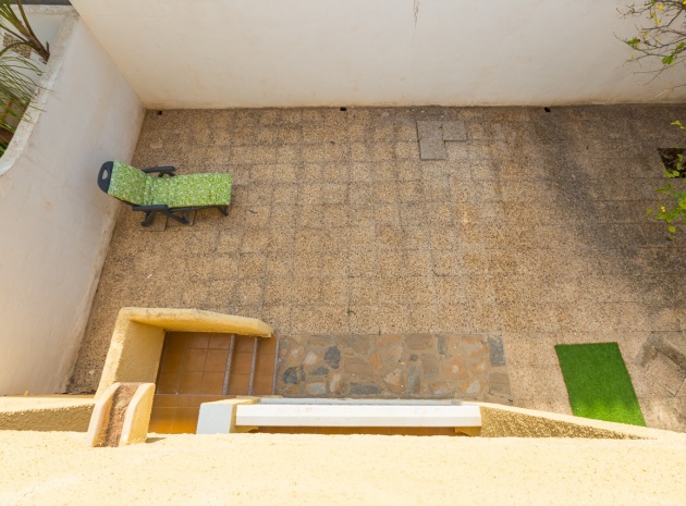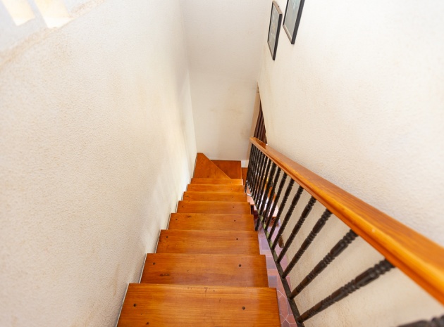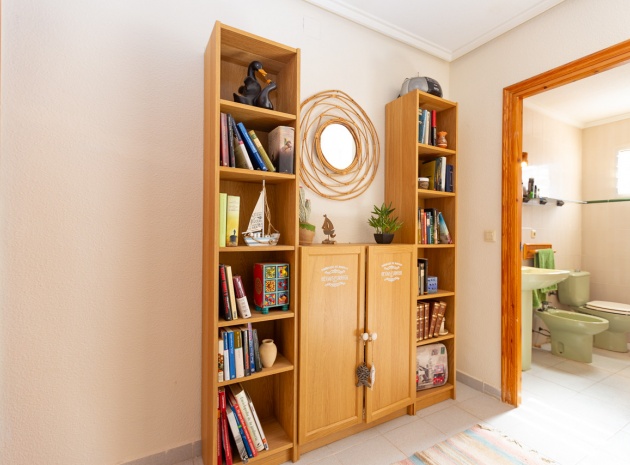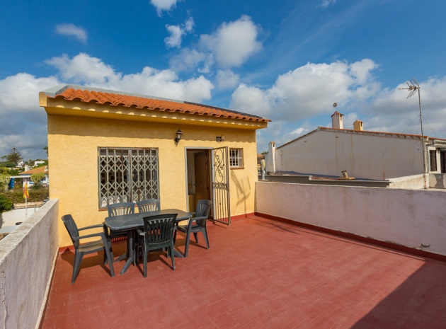 Im Erdgeschoss bietet das Anwesen zwei Badezimmer und drei Schlafzimmer, von denen zwei direkten Zugang zu einer Terrasse haben, auf der Sie die Aussicht und die frische Luft genießen können. Im Obergeschoss finden Sie zwei weitere Schlafzimmer, einen zusätzlichen Wohnbereich und ein WC sowie Zugang zu einer weiteren Terrasse. Die Villa verfügt außerdem über eine private Garage, die Ihr Fahrzeug ideal vor der intensiven Sommersonne schützt und zusätzlichen Stauraum bietet. An der Vorderseite des Hauses befindet sich ein großer Garten mit Pavillon, der sich perfekt für Mahlzeiten im Freien mit Familie und Freunden eignet. Im hinteren Garten sorgen ein üppiger Zitronenbaum und eine Außendusche für Frische und Funktionalität. Das Anwesen liegt nur wenige Autominuten von mehreren Supermärkten und 3,1 km vom Strand Aguamarina in Cabo Roig entfernt, einem der besten der Gegend. Diese Doppelhaushälfte ist perfekt für eine große Familie oder für einen Investor, der seinen eigenen Raum an der Orihuela Costa individuell gestalten möchte. Das Anwesen würde in einigen Bereichen von einer weiteren Modernisierung profitieren, was sich im Preis für dieses sehr geräumige Haus widerspiegelt.