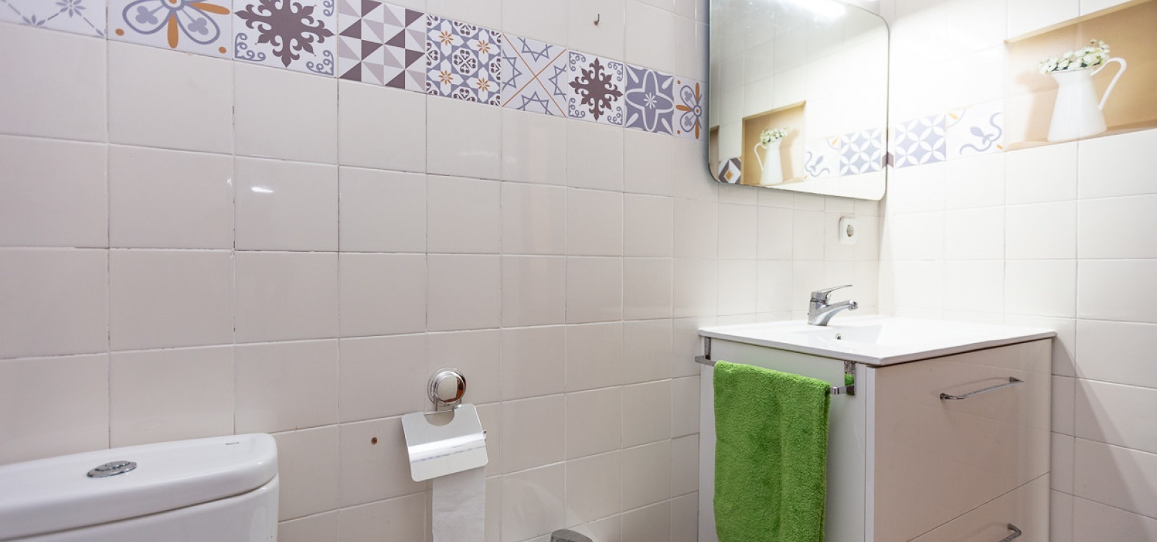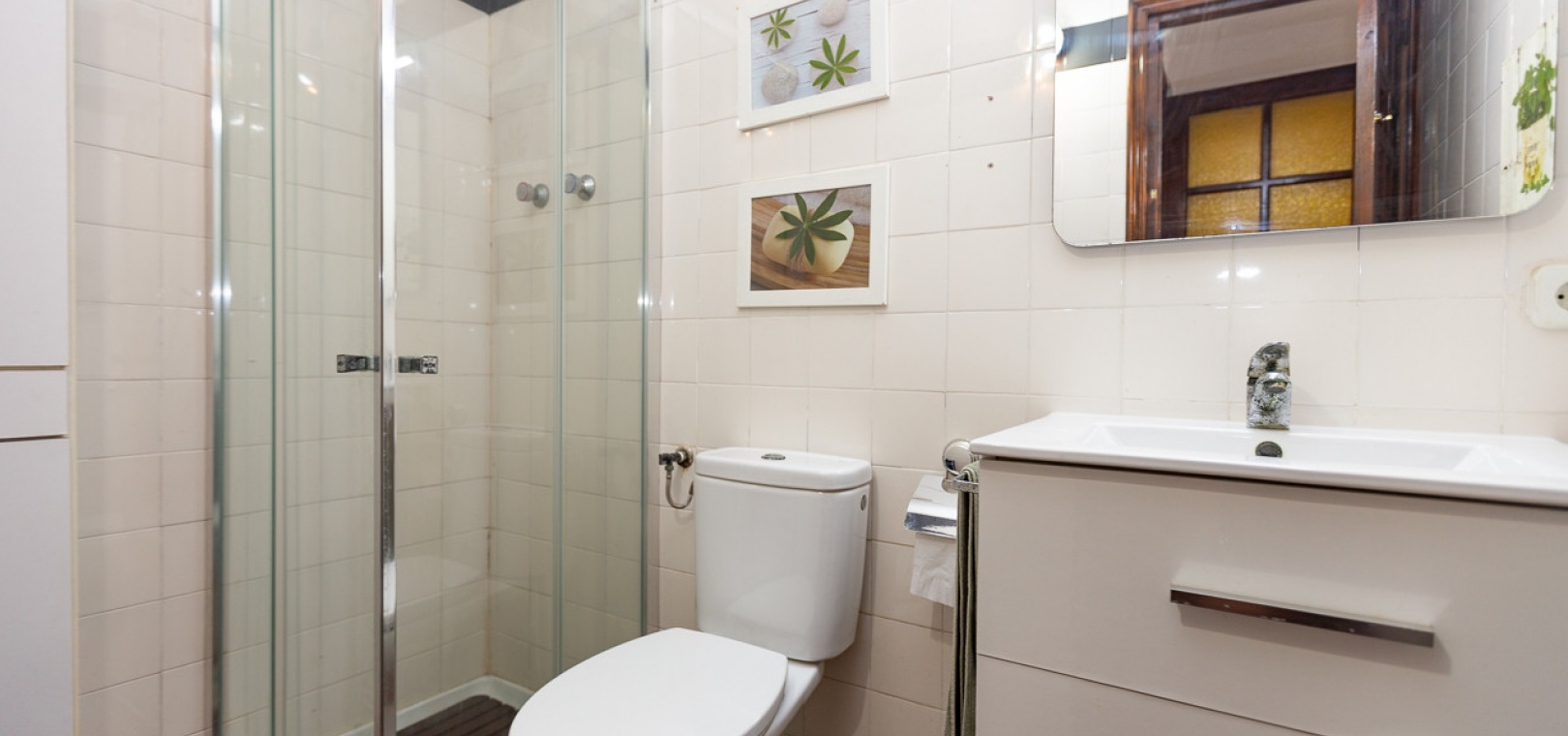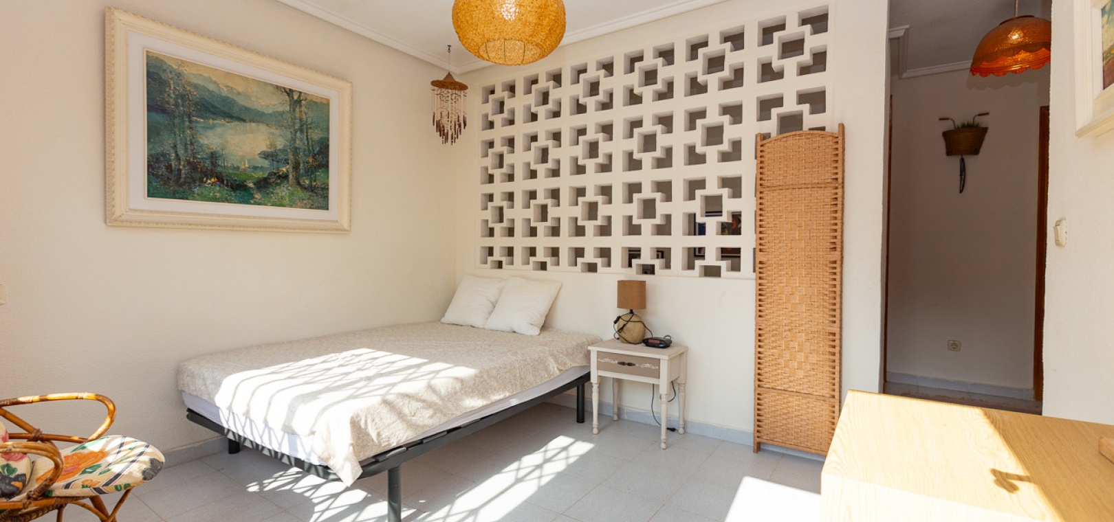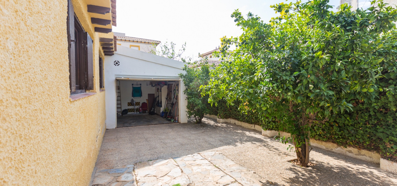 Im Erdgeschoss bietet das Anwesen zwei Badezimmer und drei Schlafzimmer, von denen zwei direkten Zugang zu einer Terrasse haben, auf der Sie die Aussicht und die frische Luft genießen können. Im Obergeschoss finden Sie zwei weitere Schlafzimmer, einen zusätzlichen Wohnbereich und ein WC sowie Zugang zu einer weiteren Terrasse. Die Villa verfügt außerdem über eine private Garage, die Ihr Fahrzeug ideal vor der intensiven Sommersonne schützt und zusätzlichen Stauraum bietet. An der Vorderseite des Hauses befindet sich ein großer Garten mit Pavillon, der sich perfekt für Mahlzeiten im Freien mit Familie und Freunden eignet. Im hinteren Garten sorgen ein üppiger Zitronenbaum und eine Außendusche für Frische und Funktionalität. Das Anwesen liegt nur wenige Autominuten von mehreren Supermärkten und 3,1 km vom Strand Aguamarina in Cabo Roig entfernt, einem der besten der Gegend. Diese Doppelhaushälfte ist perfekt für eine große Familie oder für einen Investor, der seinen eigenen Raum an der Orihuela Costa individuell gestalten möchte. Das Anwesen würde in einigen Bereichen von einer weiteren Modernisierung profitieren, was sich im Preis für dieses sehr geräumige Haus widerspiegelt.