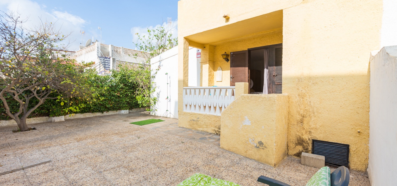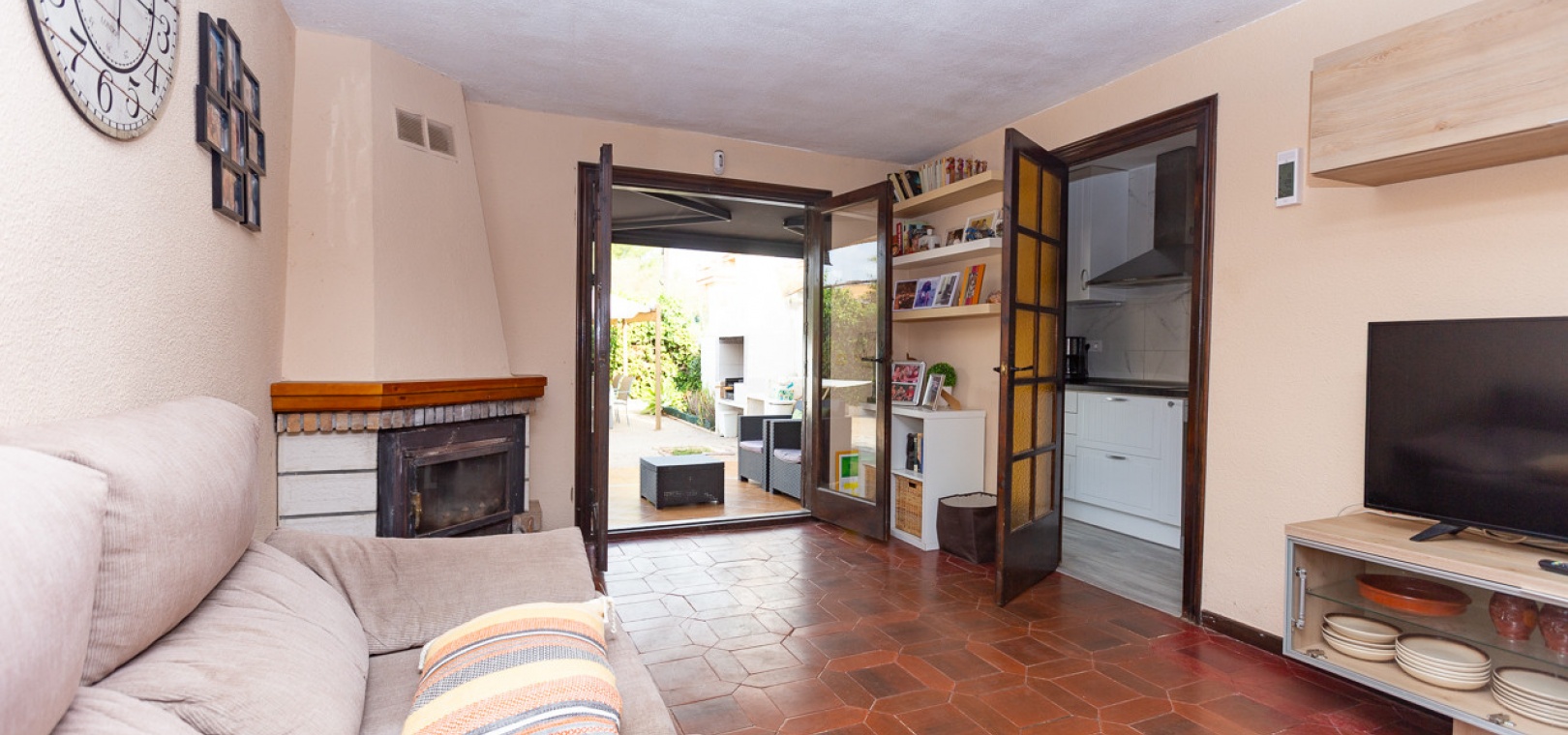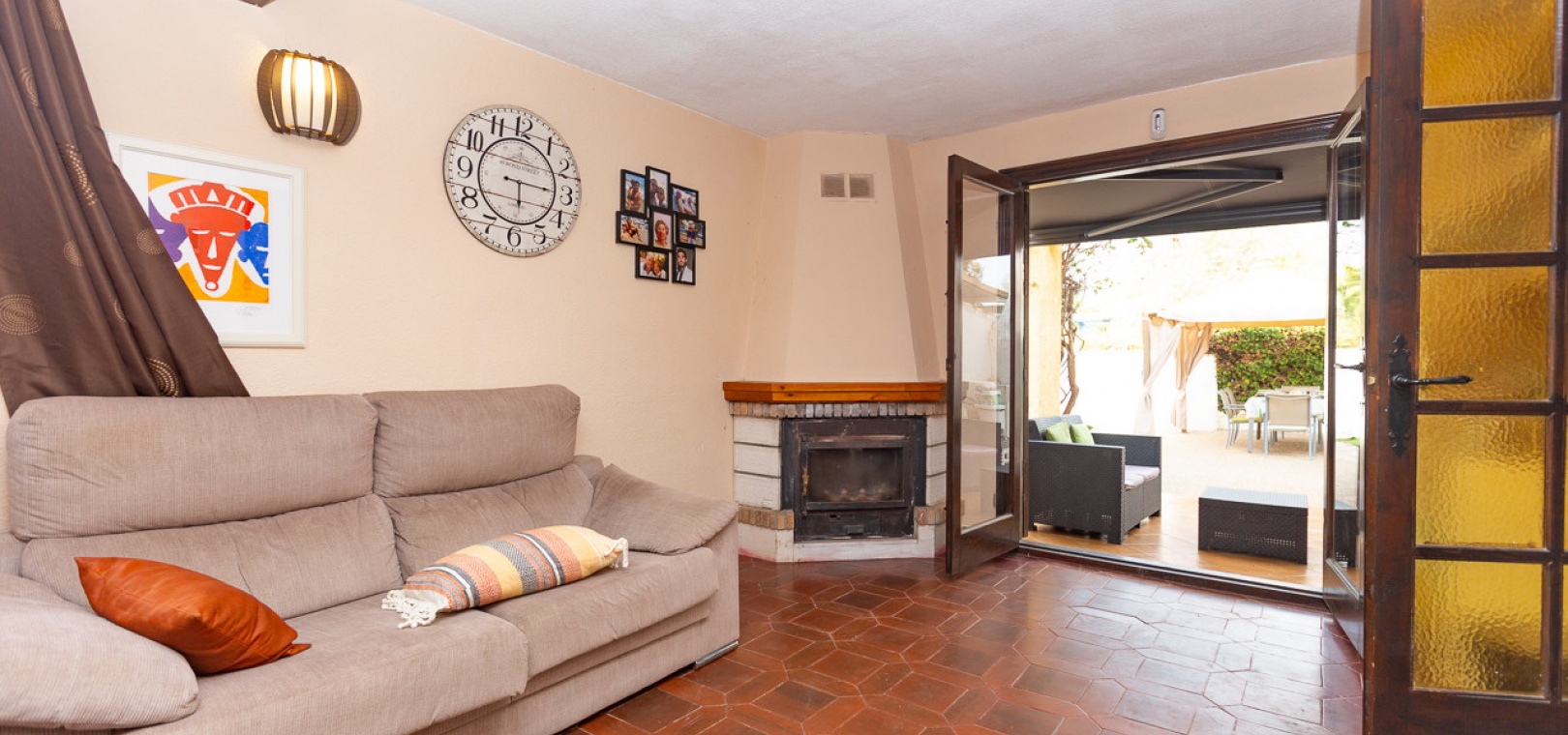 Charmante Doppelhaushälfte auf einem großzügigen 322 m² großen Grundstück in der exklusiven Wohnanlage Lomas de Don Juan in Lomas de Cabo Roig. Dieses Anwesen bietet einen ruhigen und komfortablen Lebensstil mit gut verteilten Räumen und mehreren Außenbereichen für Familienvergnügen. Die Villa bietet eine moderne und renovierte, separate Küche, die mit hochwertigen Schränken und Geräten ausgestattet ist. Das Wohn-/Esszimmer ist geräumig und hell, und für die kälteren Wintertage gibt es einen gemütlichen Kamin, der den Komfort aller Gäste gewährleistet.