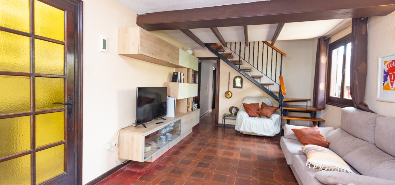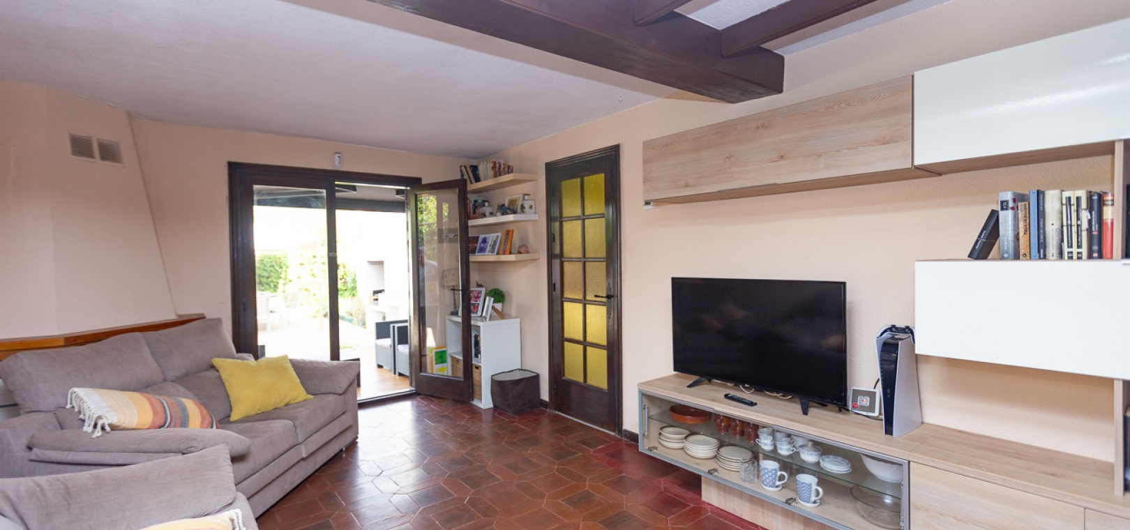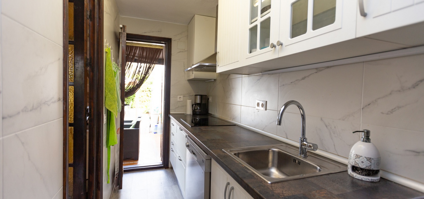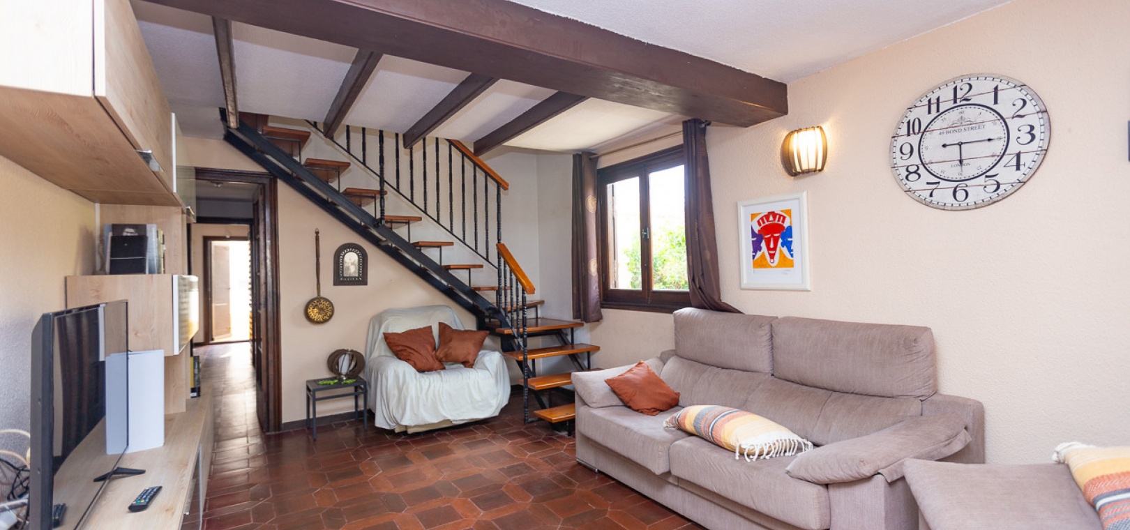 Charmante Doppelhaushälfte auf einem großzügigen 322 m² großen Grundstück in der exklusiven Wohnanlage Lomas de Don Juan in Lomas de Cabo Roig. Dieses Anwesen bietet einen ruhigen und komfortablen Lebensstil mit gut verteilten Räumen und mehreren Außenbereichen für Familienvergnügen. Die Villa bietet eine moderne und renovierte, separate Küche, die mit hochwertigen Schränken und Geräten ausgestattet ist. Das Wohn-/Esszimmer ist geräumig und hell, und für die kälteren Wintertage gibt es einen gemütlichen Kamin, der den Komfort aller Gäste gewährleistet.