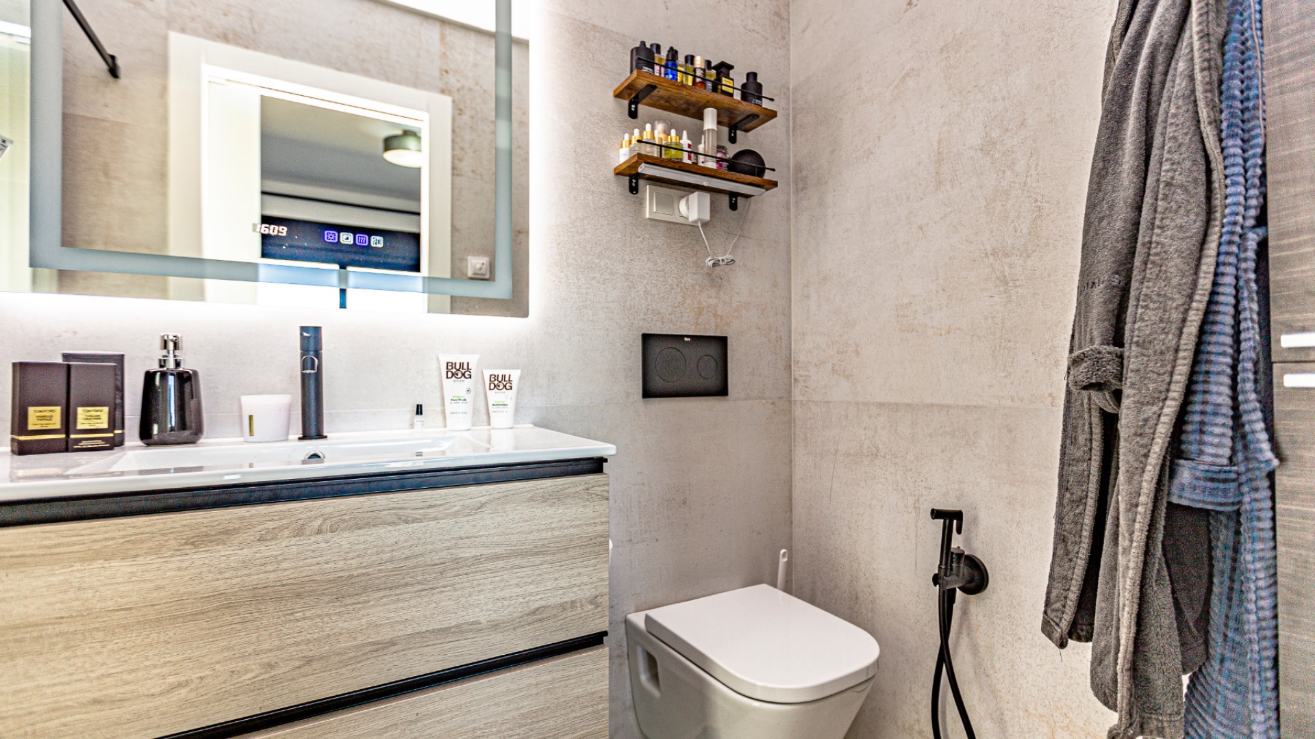 Zu den weiteren Ausstattungsmerkmalen gehören eine Klimaanlage, elektrische Rollläden und ein innovativer Luftzirkulator, der die Raumluft erfrischt, wenn das Anwesen nicht bewohnt ist. Die Wohnung wird bis auf persönliche Gegenstände voll möbliert verkauft.