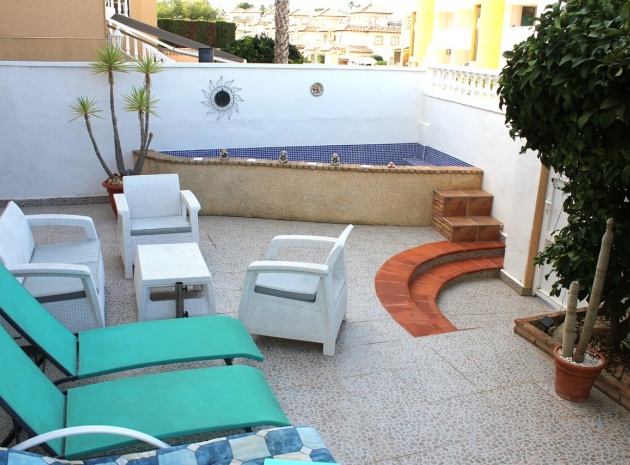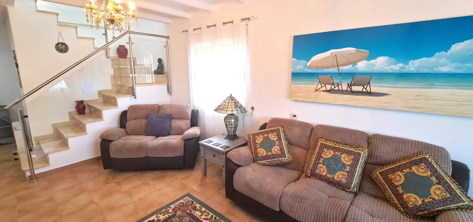 Fabelhafte, geräumige freistehende Villa mit 5 Schlafzimmern und 3 Bädern, verteilt auf 2 unabhängige Wohnbereiche und weniger als 15 Gehminuten von Villamartin Plaza entfernt. Dieses atemberaubende Haus verfügt über eine helle, umlaufende Terrasse und einen Garten rund um das Haus mit einem kleinen Tauchbecken, das in den heißen Sommermonaten zum Abkühlen beiträgt. Dies führt zu einer unabhängigen, in sich abgeschlossenen Unterkunft mit 2 Doppelschlafzimmern, einer modernen Küche und einem Badezimmer. Der erste Stock ist über die Stufen zur oberen Terrasse zugänglich, die zum Hauptwohnbereich, einem hellen Wohnzimmer mit funktionierendem Kamin, einer großen, voll ausgestatteten Küche und 2 Schlafzimmern (diese werden derzeit als Esszimmer und Büro genutzt, können aber bei Bedarf leicht in Schlafzimmer umgewandelt werden) führen, die zu einem Familienbadezimmer führen. Die Treppe im zweiten Stock führt zu einem großen Hauptschlafzimmer mit eigenem Bad und Zugang zur sonnigen Solariumterrasse. Die Villa wird teilweise möbliert verkauft und ist durchgehend mit einer Warm-/Kaltklimaanlage ausgestattet. Der Gemeinschaftspool ist nur einen kurzen Spaziergang entfernt und umfasst einen gepflegten Gartenbereich mit Fitnessgeräten im Freien. Diese Villa ist Teil einer gut geführten Gemeinschaft von Monte Golf mit Gemeinschaftsgebühren von nur 225 € pro Jahr. Die Villamartin Plaza mit ihrer großen Auswahl an Bars, Restaurants und Geschäften ist bequem zu Fuß erreichbar. Das äußerst beliebte regionale Einkaufszentrum Zenia Boulevard ist nur eine kurze Fahrt oder mit den örtlichen Busverbindungen entfernt. Auch die Strände und Buchten von Orihuela Costa sind nur 10 Autominuten entfernt. Gute Lage für einfachen Zugang zu einer Reihe renommierter Golfplätze, darunter Villamartin, Campoamor Golf, Las Ramblas und Las Colinas Resort. Bitte kontaktieren Sie unser Team für eine baldige Besichtigung!