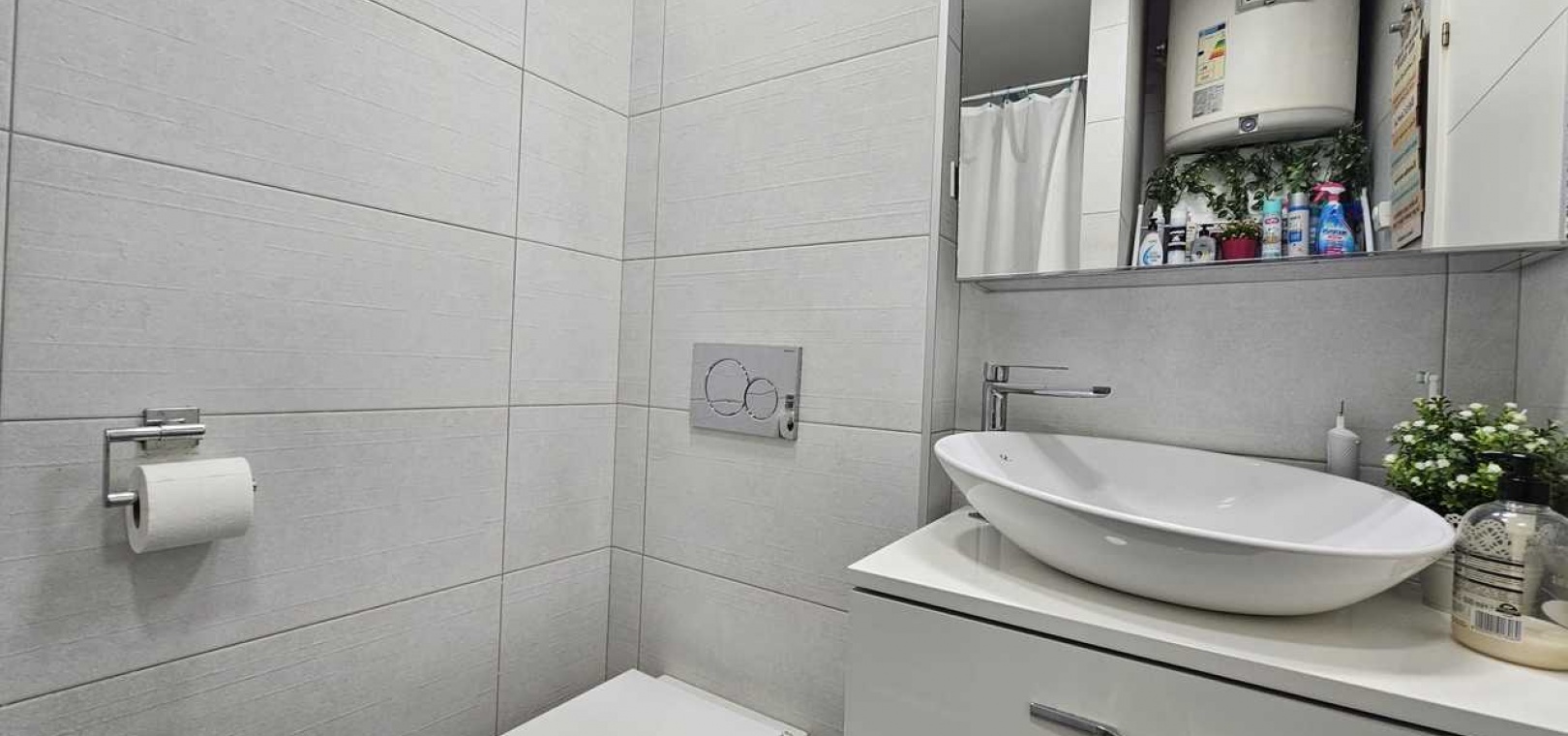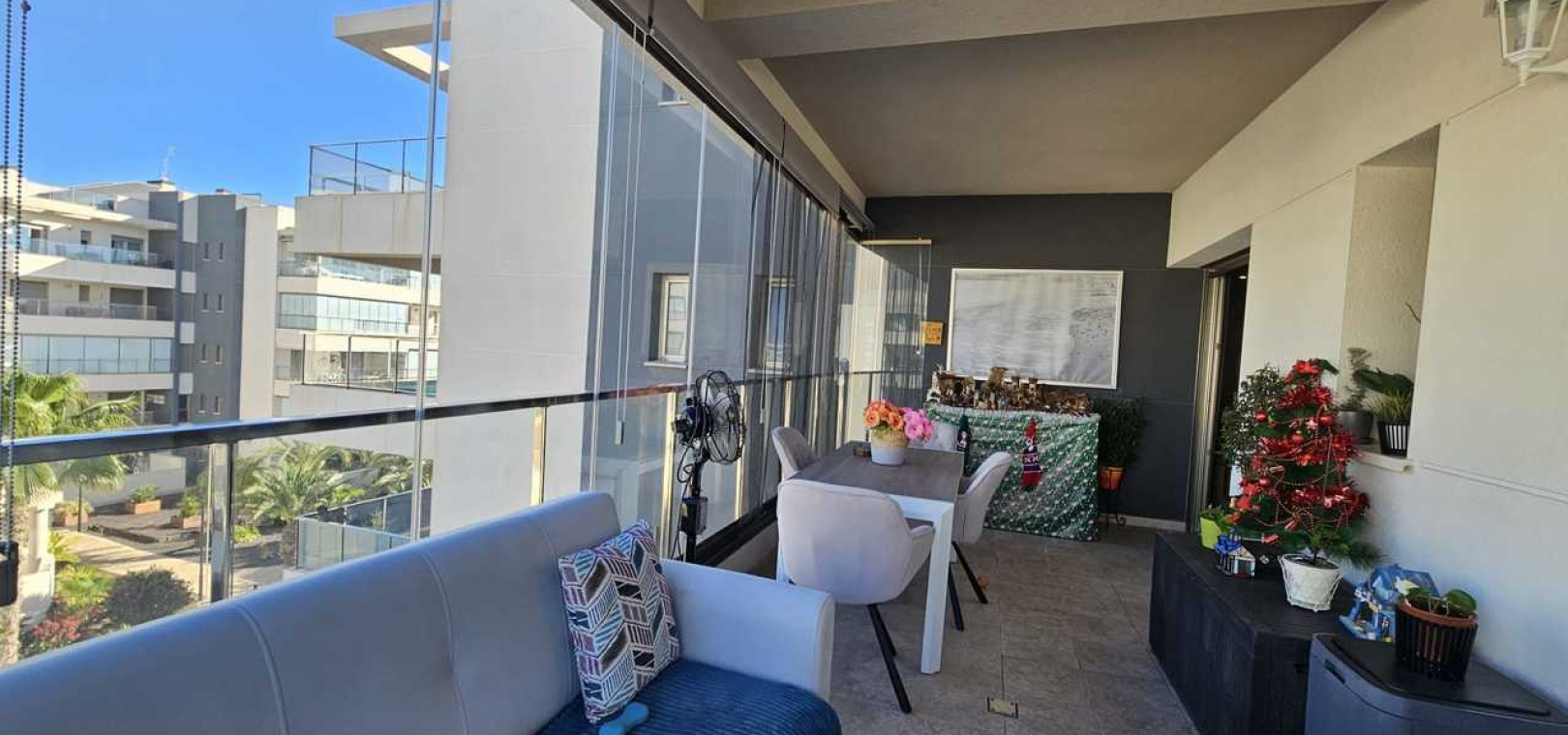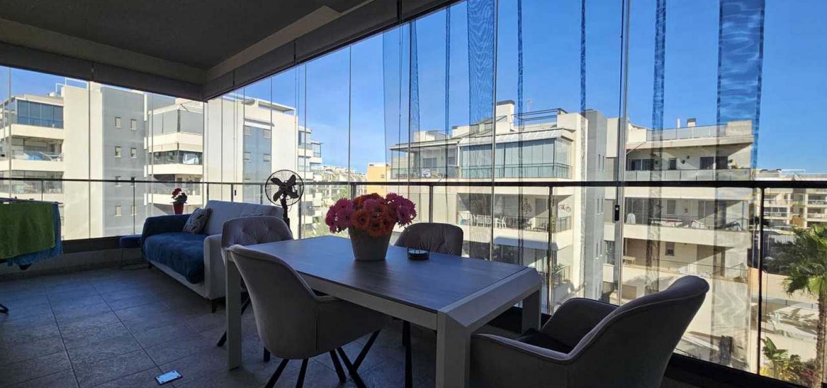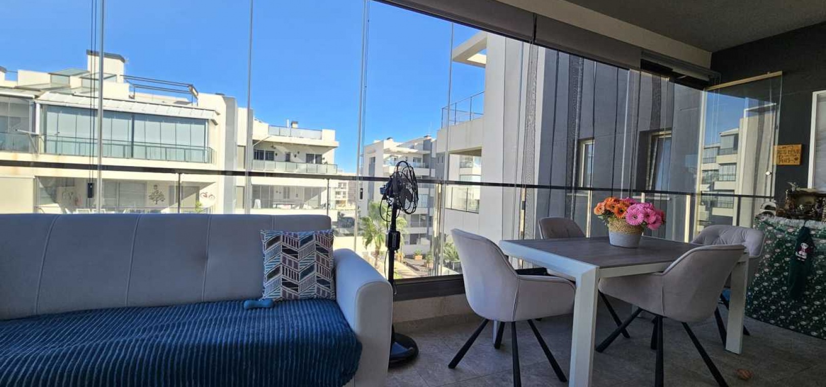 Die Wohnung verfügt über einen sehr großen Balkon, der mit einziehbaren Glasvorhängen umschlossen ist, sodass Sie den Raum in einen gemütlichen zweiten Wohn- und Essbereich oder eine offene, sonnige Terrasse verwandeln können. Der Wohnbereich ist außergewöhnlich hell und geräumig und wird durch eine elegante Küche im amerikanischen Stil ergänzt. Die Küche ist vollständig mit modernen Geräten ausgestattet und verfügt auch über eine Kochinsel, was sie sowohl funktional als auch stilvoll macht.