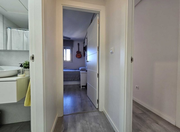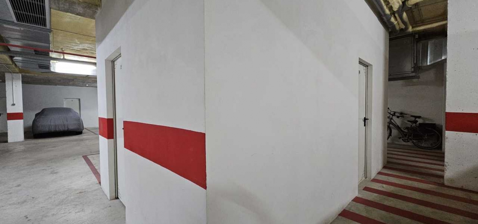 Das Hauptschlafzimmer bietet einen privaten Rückzugsort mit eigenem Bad und direktem Zugang zur Terrasse durch elegante Fenstertüren. Das zweite Doppelschlafzimmer ist ebenso einladend und verfügt über Einbauschränke, während das moderne Gästebad mit einer ebenerdigen Dusche ausgestattet ist. Jedes Detail dieses makellosen Anwesens wurde sorgfältig durchdacht, mit luxuriösen Details wie Fußbodenheizung in den Bädern. Darüber hinaus verfügt die Wohnung über eine Tiefgarage und einen Abstellraum für zusätzlichen Komfort.