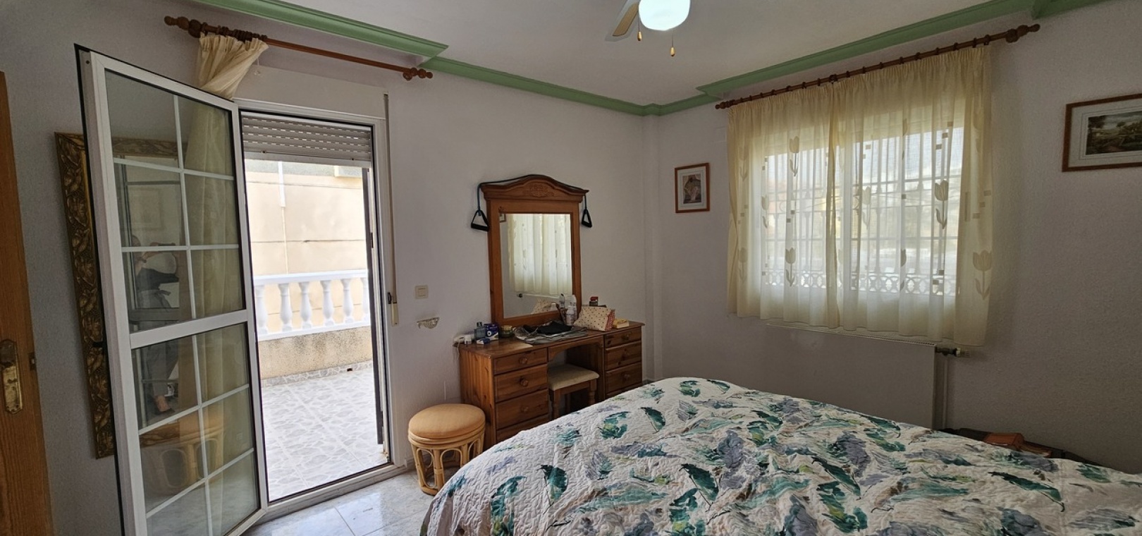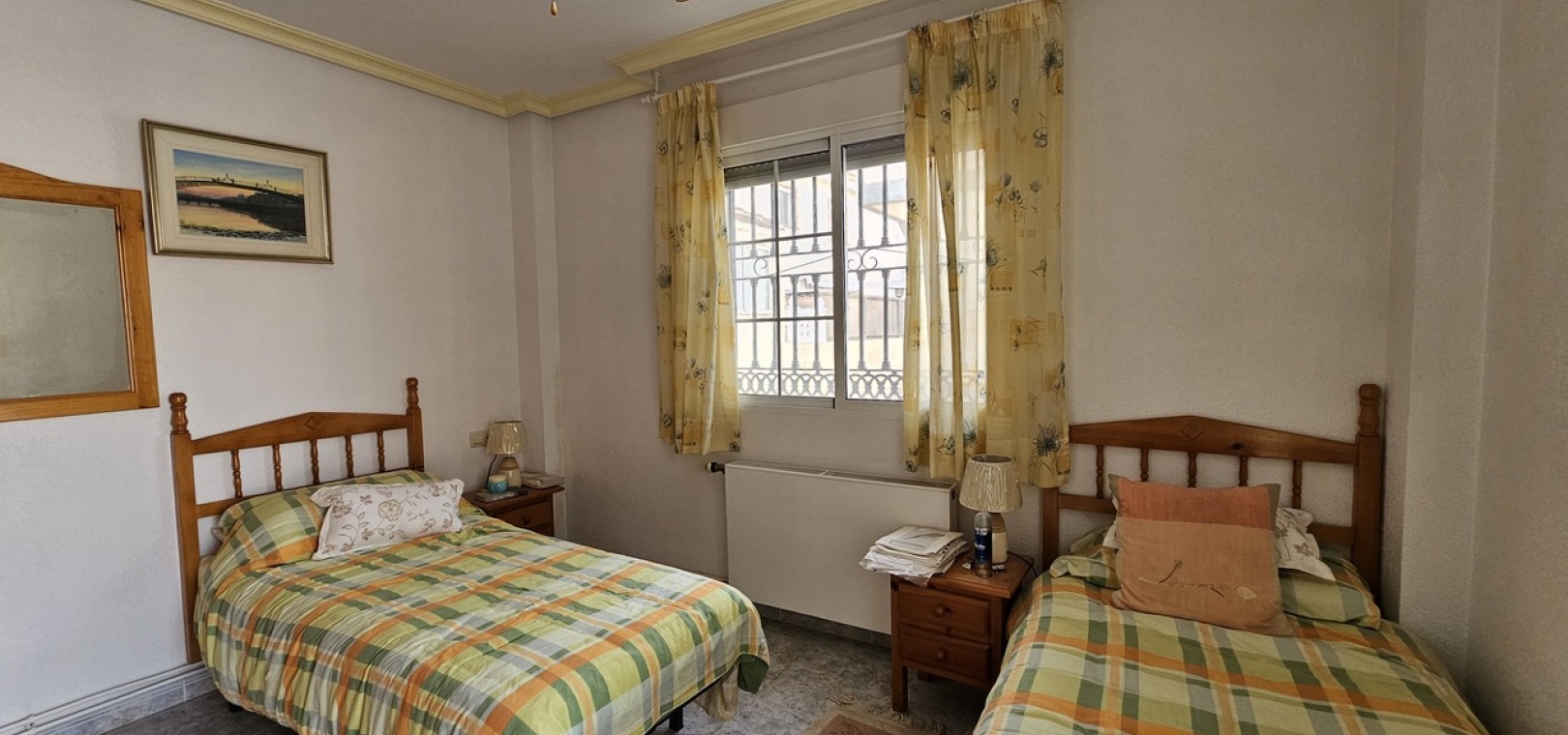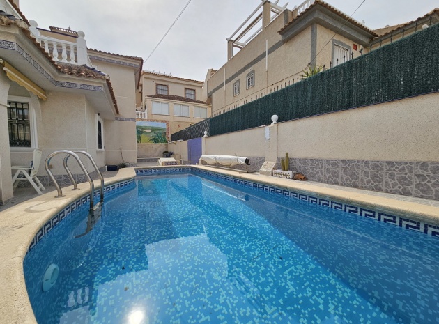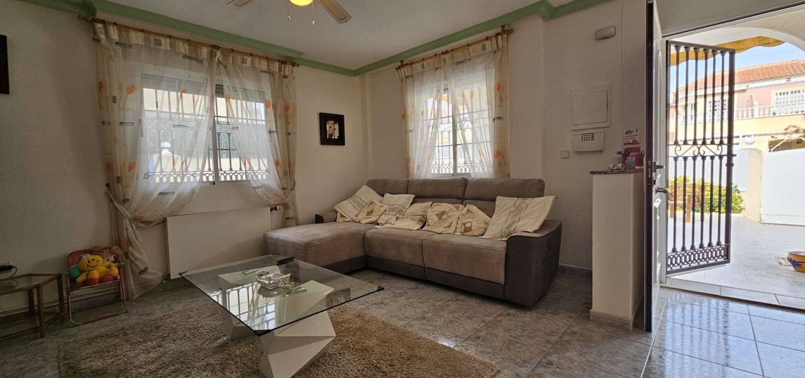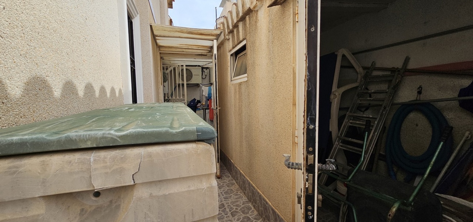 Sehr geräumige Reihenvilla mit 4 Schlafzimmern und 2 Bädern zum Verkauf in El Galan, nur einen Steinwurf und einen kurzen Spaziergang von Villamartin und allen Annehmlichkeiten entfernt, darunter zahlreiche Restaurants und Lebensmittelgeschäfte, der Golfplatz von Villamartin und The Plaza zusammen mit dem Einkaufszentrum La Fuente, Supermärkten und Weinbars. Diese Villa erstreckt sich über zwei Ebenen und liegt auf einem großen Grundstück mit privatem Swimmingpool, Parkplatz und Auffahrt abseits der Straße sowie Blick auf das Mittelmeer vom privaten und sonnigen Solarium aus. Im Inneren befindet sich ein riesiges Wohn- und Esszimmer mit zwei Fenstern, die für viel natürliches Licht sorgen. Es gibt eine voll ausgestattete separate Küche mit Zugang zum Hauswirtschaftsraum und einen sehr nützlichen Schuppen auf der Rückseite des Grundstücks. Im Erdgeschoss der Villa befinden sich ein großes Doppelzimmer und ein Gästebadezimmer mit Dusche. Im Obergeschoss befinden sich zwei weitere Doppelzimmer für Gäste (eines mit Zugang zum Solarium), das Familienbadezimmer und ein riesiges Hauptschlafzimmer, das ebenfalls Zugang zum Solarium mit atemberaubendem Blick über das Grundstück und den Swimmingpool und hinaus auf das Meer hat. Diese Immobilie wird voll möbliert wie gesehen mit vielen Extras verkauft, darunter Klimaanlage, Zentralheizung und ein brandneuer Heizkessel.