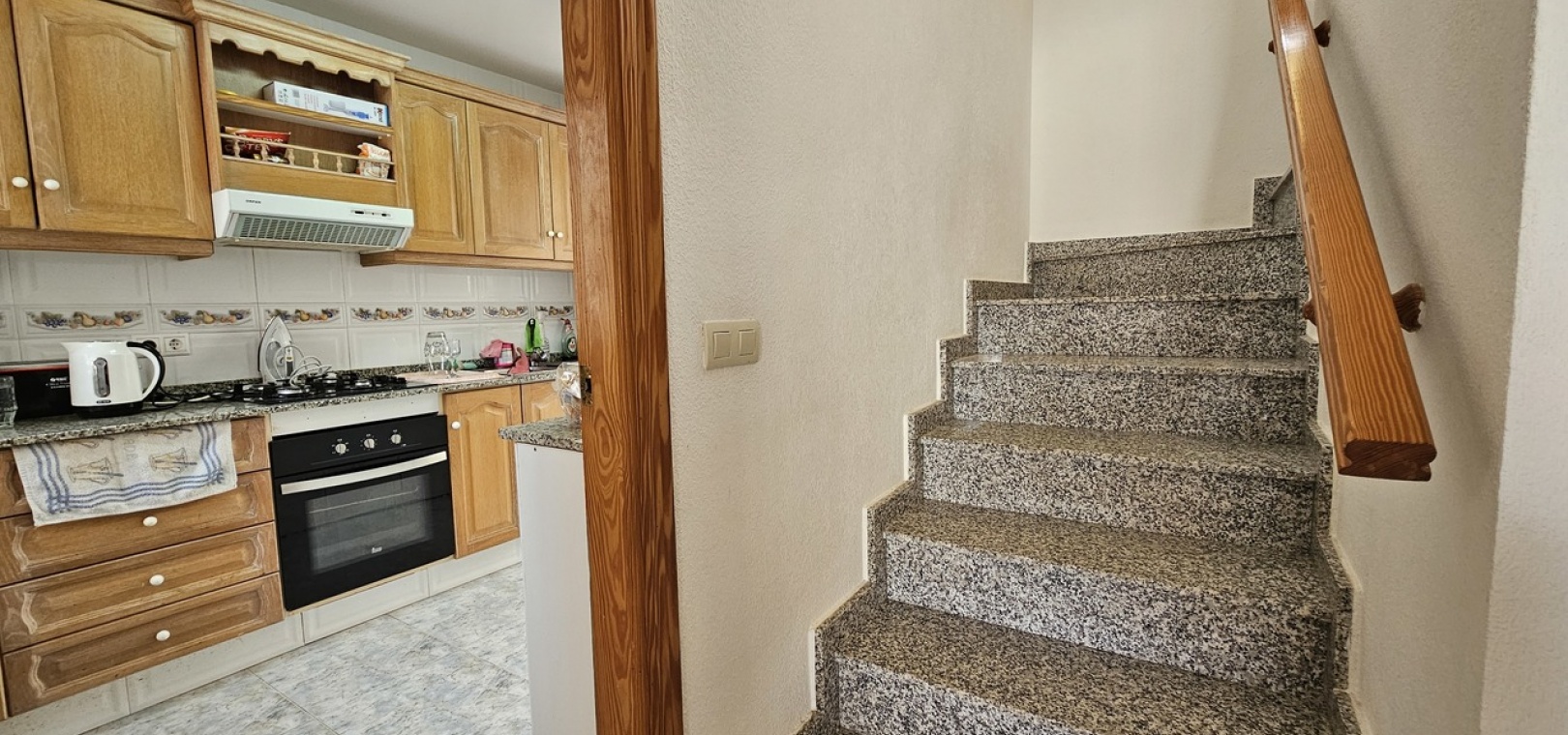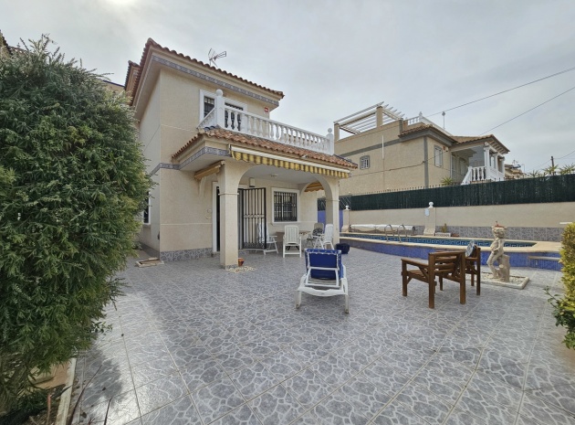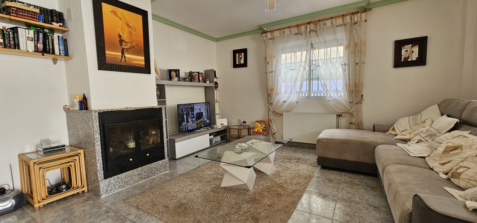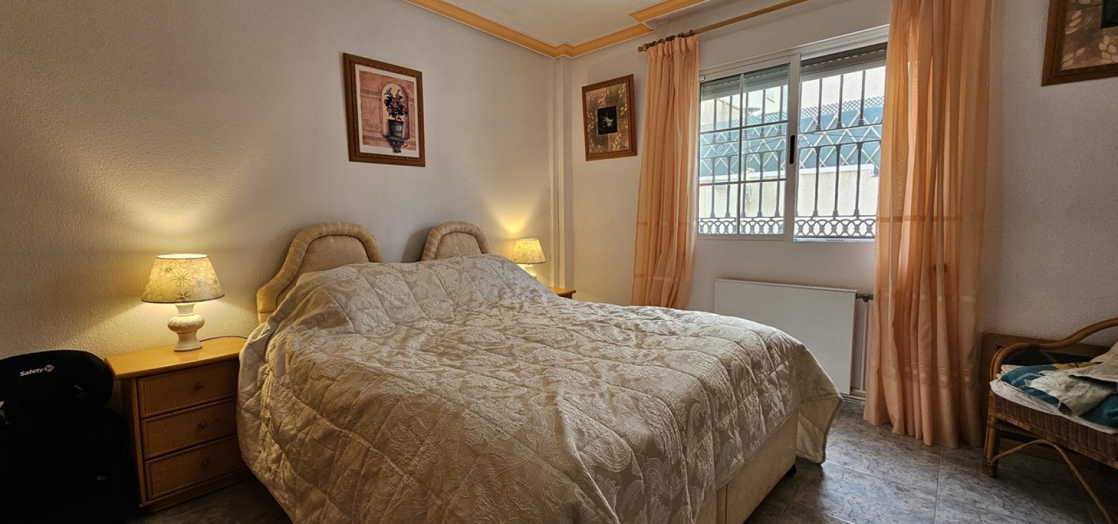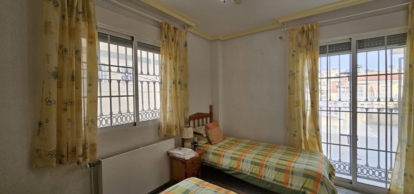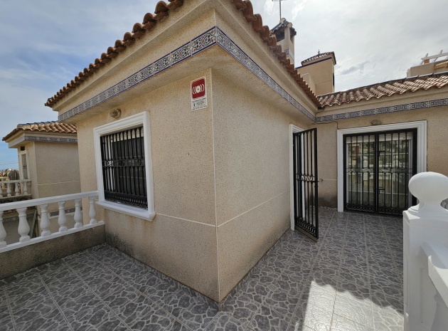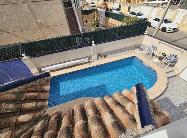 Sehr geräumige Reihenvilla mit 4 Schlafzimmern und 2 Bädern zum Verkauf in El Galan, nur einen Steinwurf und einen kurzen Spaziergang von Villamartin und allen Annehmlichkeiten entfernt, darunter zahlreiche Restaurants und Lebensmittelgeschäfte, der Golfplatz von Villamartin und The Plaza zusammen mit dem Einkaufszentrum La Fuente, Supermärkten und Weinbars. Diese Villa erstreckt sich über zwei Ebenen und liegt auf einem großen Grundstück mit privatem Swimmingpool, Parkplatz und Auffahrt abseits der Straße sowie Blick auf das Mittelmeer vom privaten und sonnigen Solarium aus. Im Inneren befindet sich ein riesiges Wohn- und Esszimmer mit zwei Fenstern, die für viel natürliches Licht sorgen. Es gibt eine voll ausgestattete separate Küche mit Zugang zum Hauswirtschaftsraum und einen sehr nützlichen Schuppen auf der Rückseite des Grundstücks. Im Erdgeschoss der Villa befinden sich ein großes Doppelzimmer und ein Gästebadezimmer mit Dusche. Im Obergeschoss befinden sich zwei weitere Doppelzimmer für Gäste (eines mit Zugang zum Solarium), das Familienbadezimmer und ein riesiges Hauptschlafzimmer, das ebenfalls Zugang zum Solarium mit atemberaubendem Blick über das Grundstück und den Swimmingpool und hinaus auf das Meer hat. Diese Immobilie wird voll möbliert wie gesehen mit vielen Extras verkauft, darunter Klimaanlage, Zentralheizung und ein brandneuer Heizkessel.