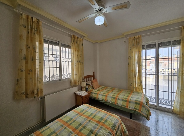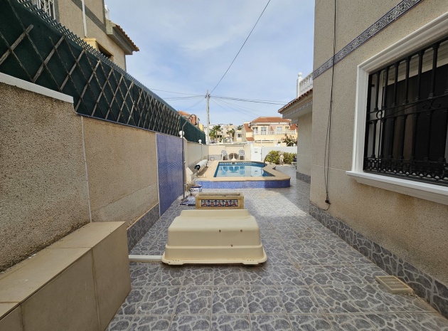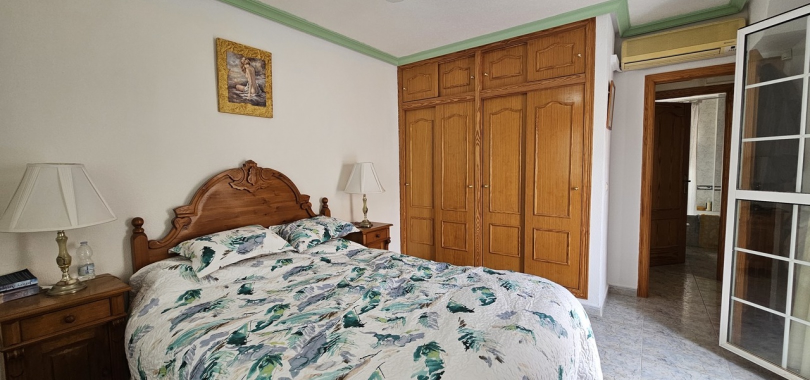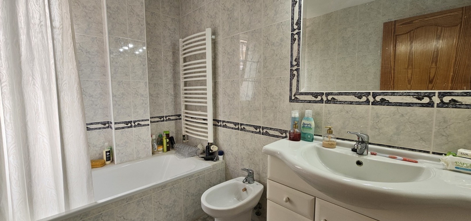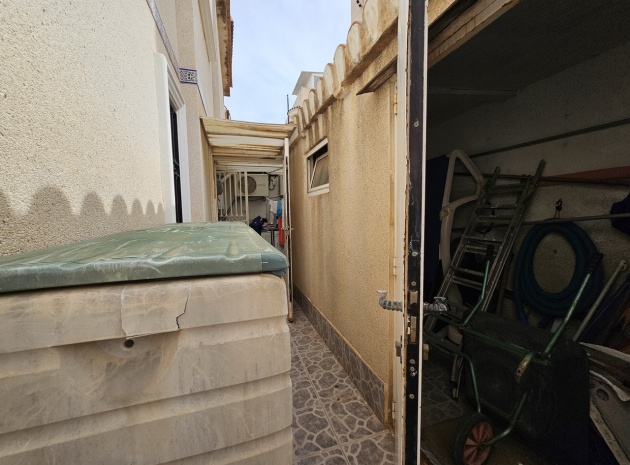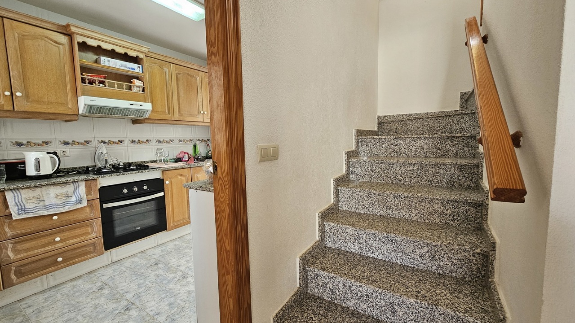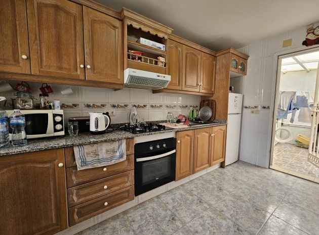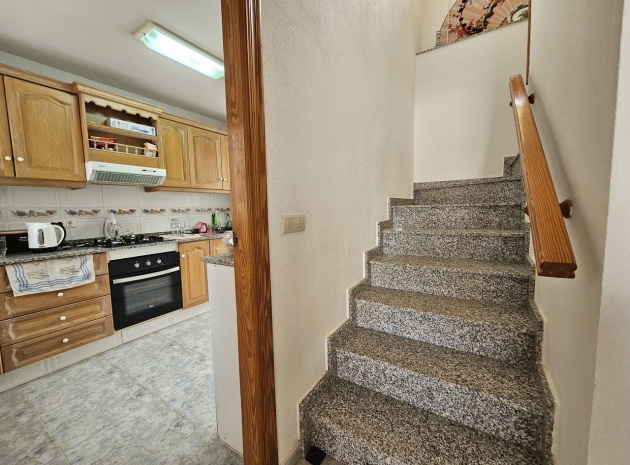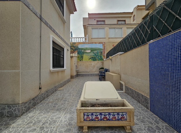 Sehr geräumige Reihenvilla mit 4 Schlafzimmern und 2 Bädern zum Verkauf in El Galan, nur einen Steinwurf und einen kurzen Spaziergang von Villamartin und allen Annehmlichkeiten entfernt, darunter zahlreiche Restaurants und Lebensmittelgeschäfte, der Golfplatz von Villamartin und The Plaza zusammen mit dem Einkaufszentrum La Fuente, Supermärkten und Weinbars. Diese Villa erstreckt sich über zwei Ebenen und liegt auf einem großen Grundstück mit privatem Swimmingpool, Parkplatz und Auffahrt abseits der Straße sowie Blick auf das Mittelmeer vom privaten und sonnigen Solarium aus. Im Inneren befindet sich ein riesiges Wohn- und Esszimmer mit zwei Fenstern, die für viel natürliches Licht sorgen. Es gibt eine voll ausgestattete separate Küche mit Zugang zum Hauswirtschaftsraum und einen sehr nützlichen Schuppen auf der Rückseite des Grundstücks. Im Erdgeschoss der Villa befinden sich ein großes Doppelzimmer und ein Gästebadezimmer mit Dusche. Im Obergeschoss befinden sich zwei weitere Doppelzimmer für Gäste (eines mit Zugang zum Solarium), das Familienbadezimmer und ein riesiges Hauptschlafzimmer, das ebenfalls Zugang zum Solarium mit atemberaubendem Blick über das Grundstück und den Swimmingpool und hinaus auf das Meer hat. Diese Immobilie wird voll möbliert wie gesehen mit vielen Extras verkauft, darunter Klimaanlage, Zentralheizung und ein brandneuer Heizkessel.