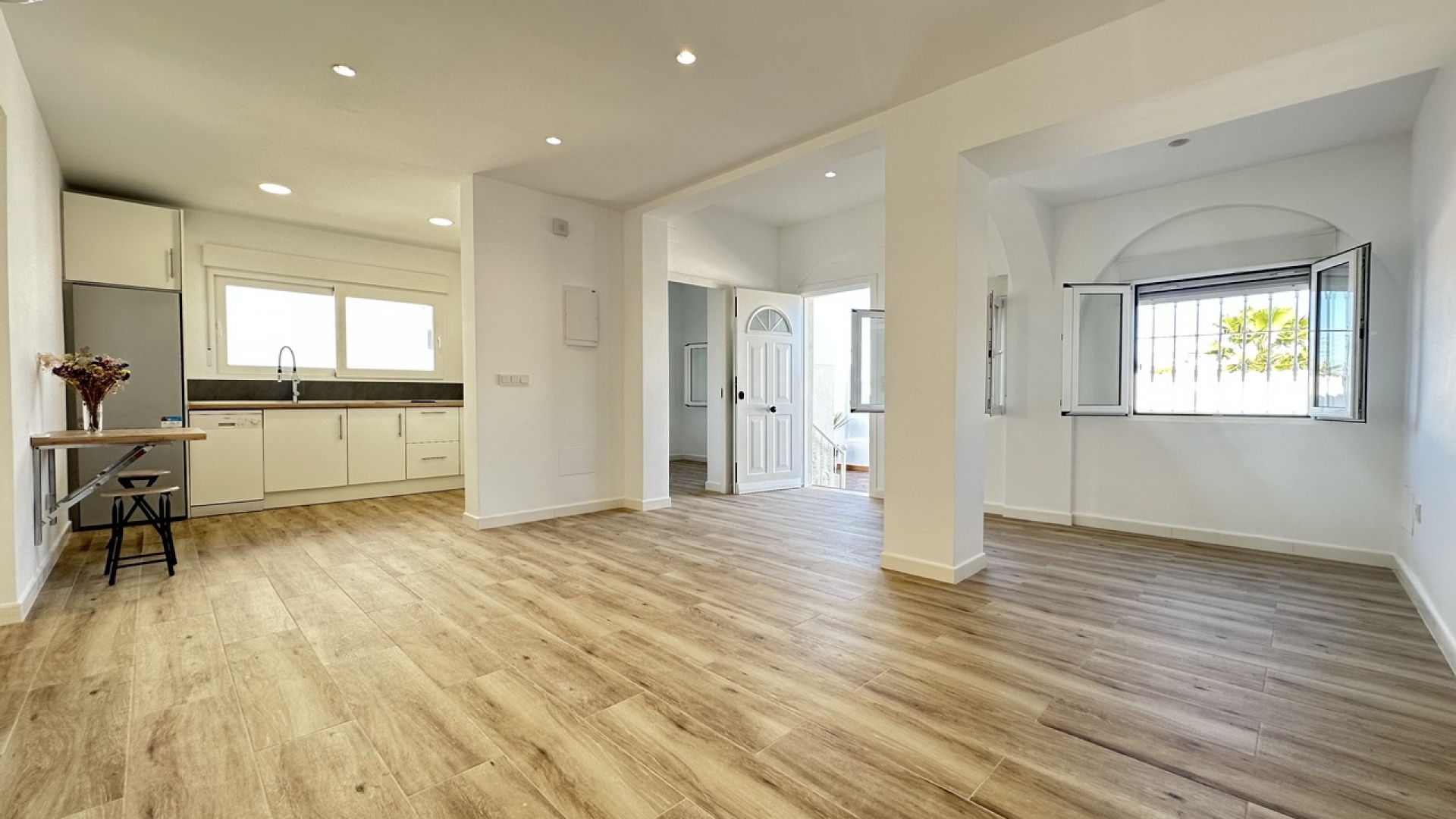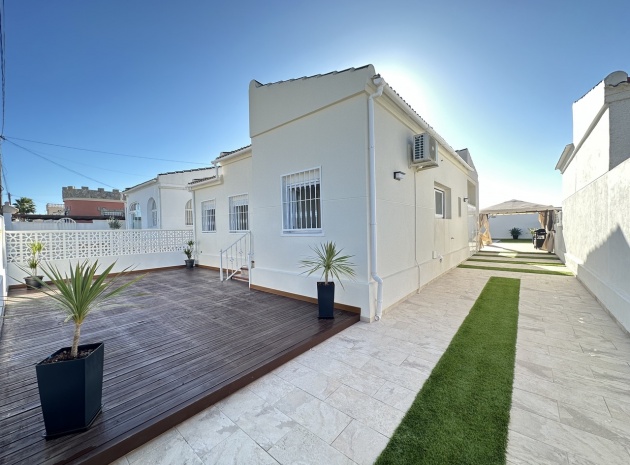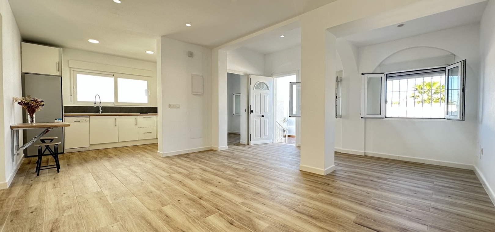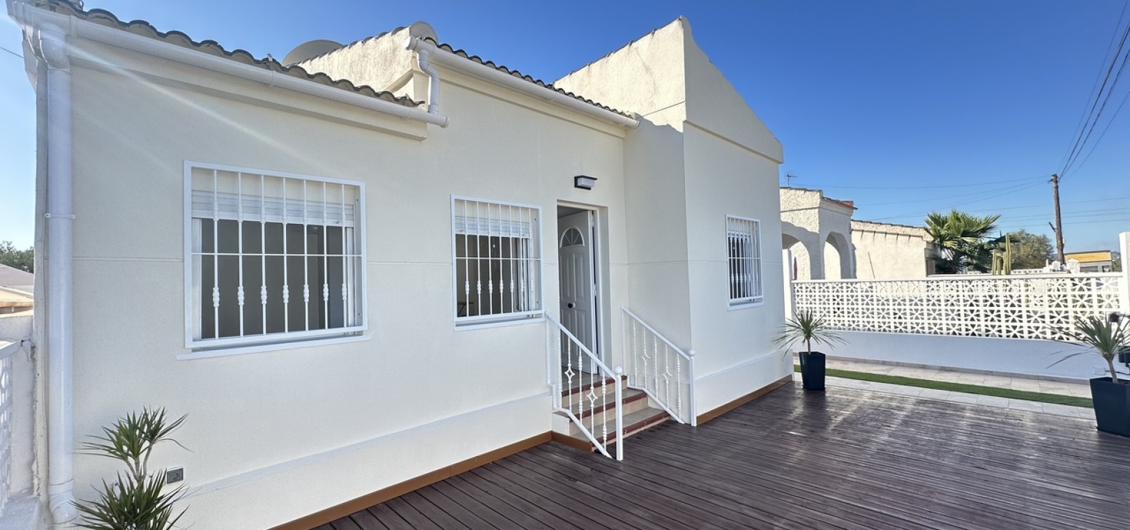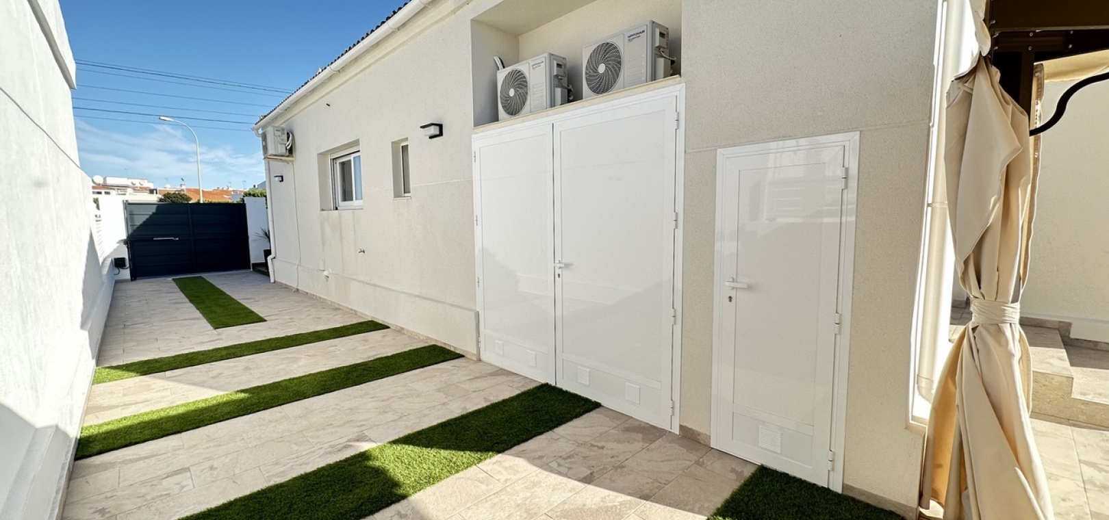 Diese komplett renovierte Villa in San Luis bietet 100 m² Wohnfläche auf einem 300 m² großen Grundstück. Sie verfügt über 3 Schlafzimmer, 2 Badezimmer (eines davon ensuite), ein geräumiges Wohnzimmer und eine moderne Küche. Der Vorgarten hat elektrische Tore und einen Parkplatz für zwei Autos. Diese Villa wurde auf hohem Niveau renoviert, alle Wohnbereiche und Schlafzimmer sind voll klimatisiert. Der offene Wohnbereich ist mit der Küche verbunden, und Terrassentüren führen zu einem Poolbereich. Draußen gibt es einen Grill, einen Pavillon und einen 8 x 4 m großen Pool, der von Kunstrasen umgeben ist. Sie liegt in der Nähe des Parks Laguna de la Mata, in der Nähe von Geschäften, Bars und Restaurants, und das Einkaufszentrum Habaneras ist nur eine kurze Autofahrt entfernt.