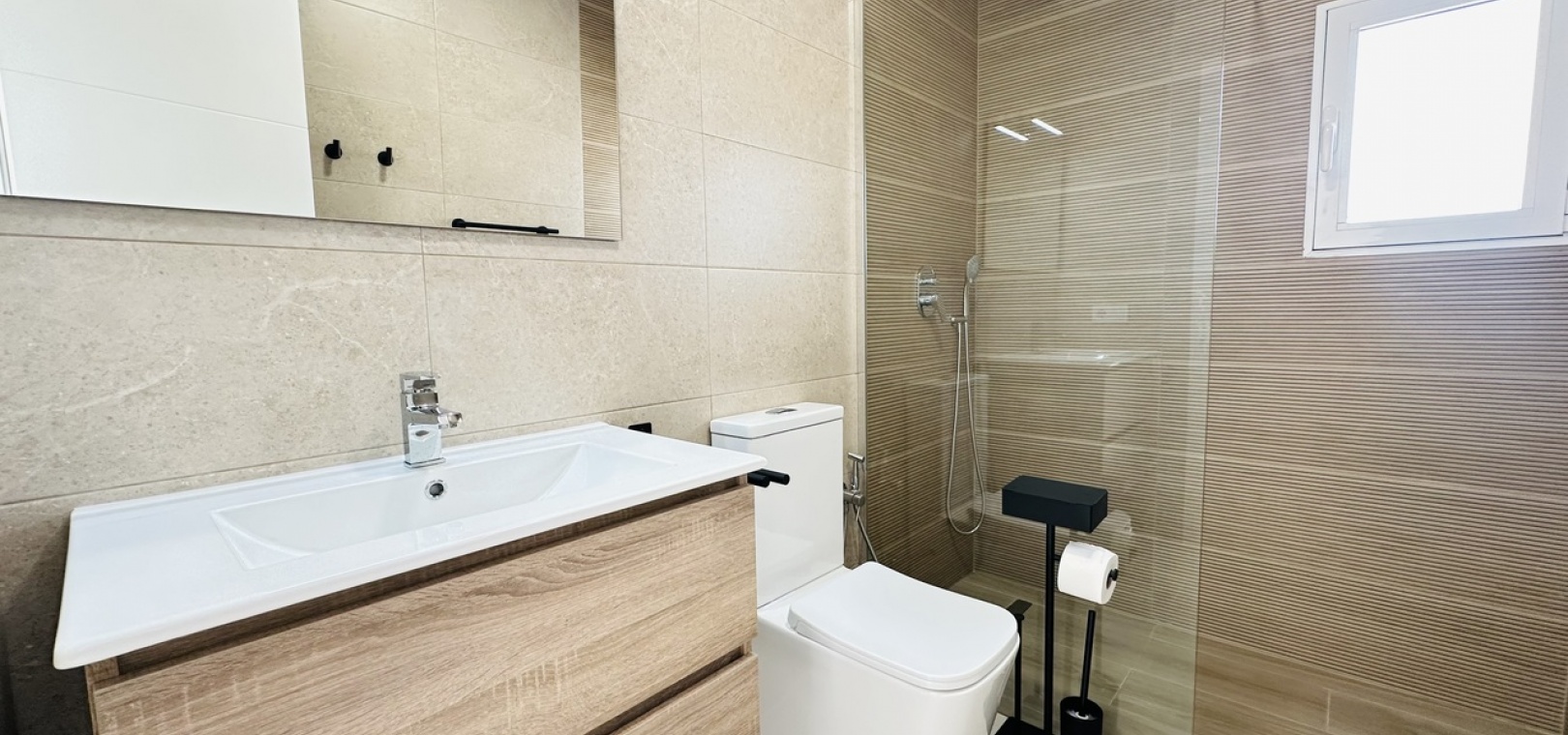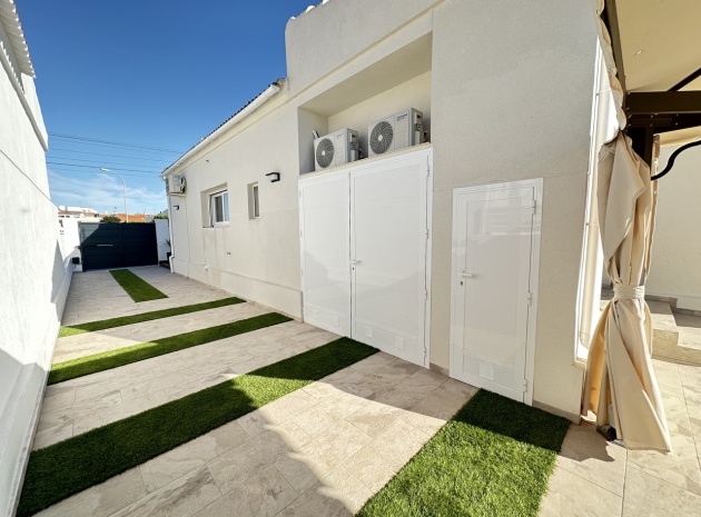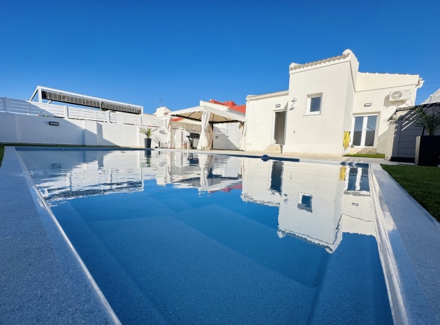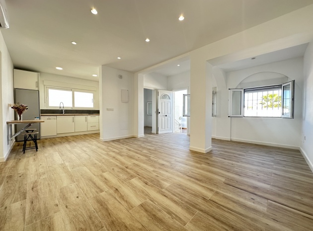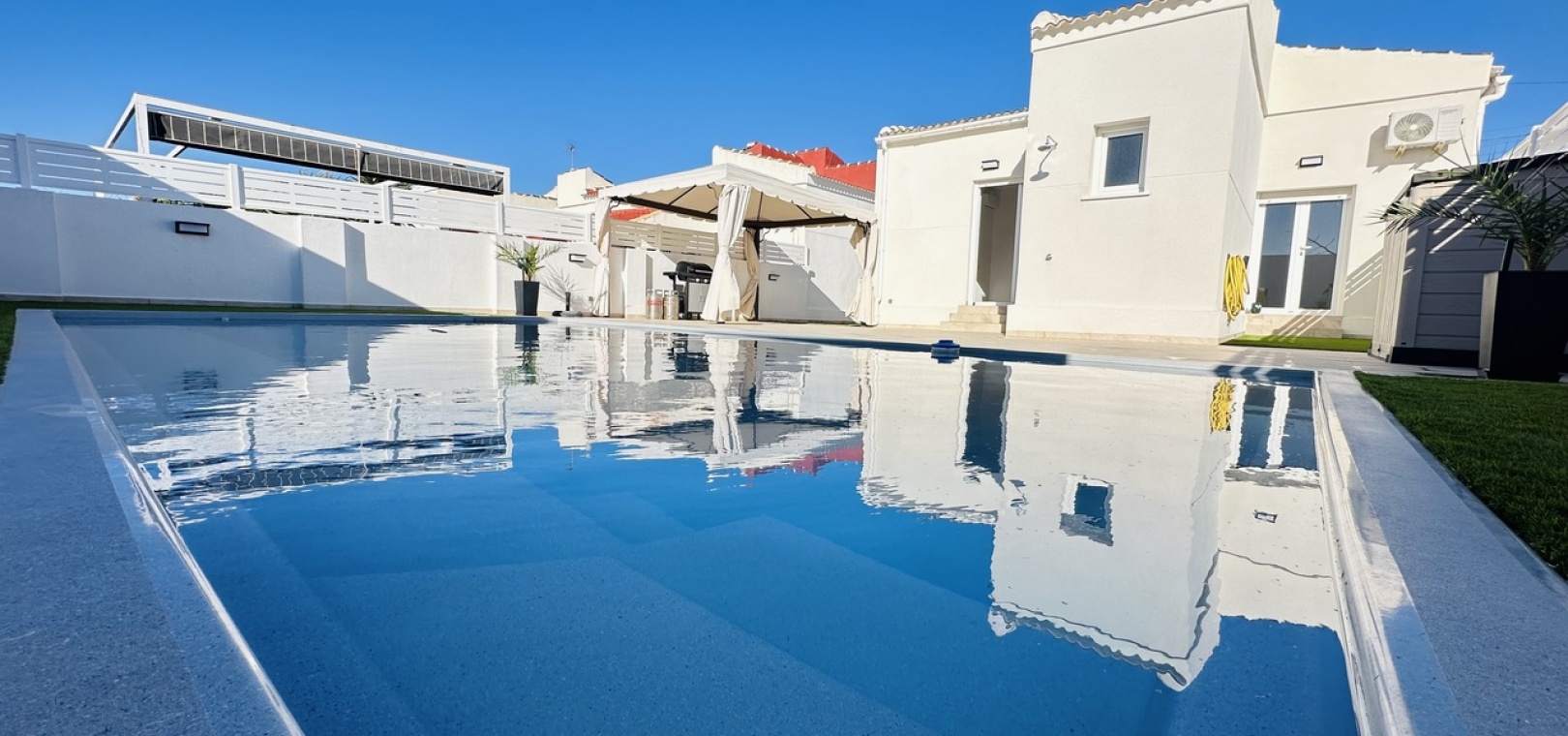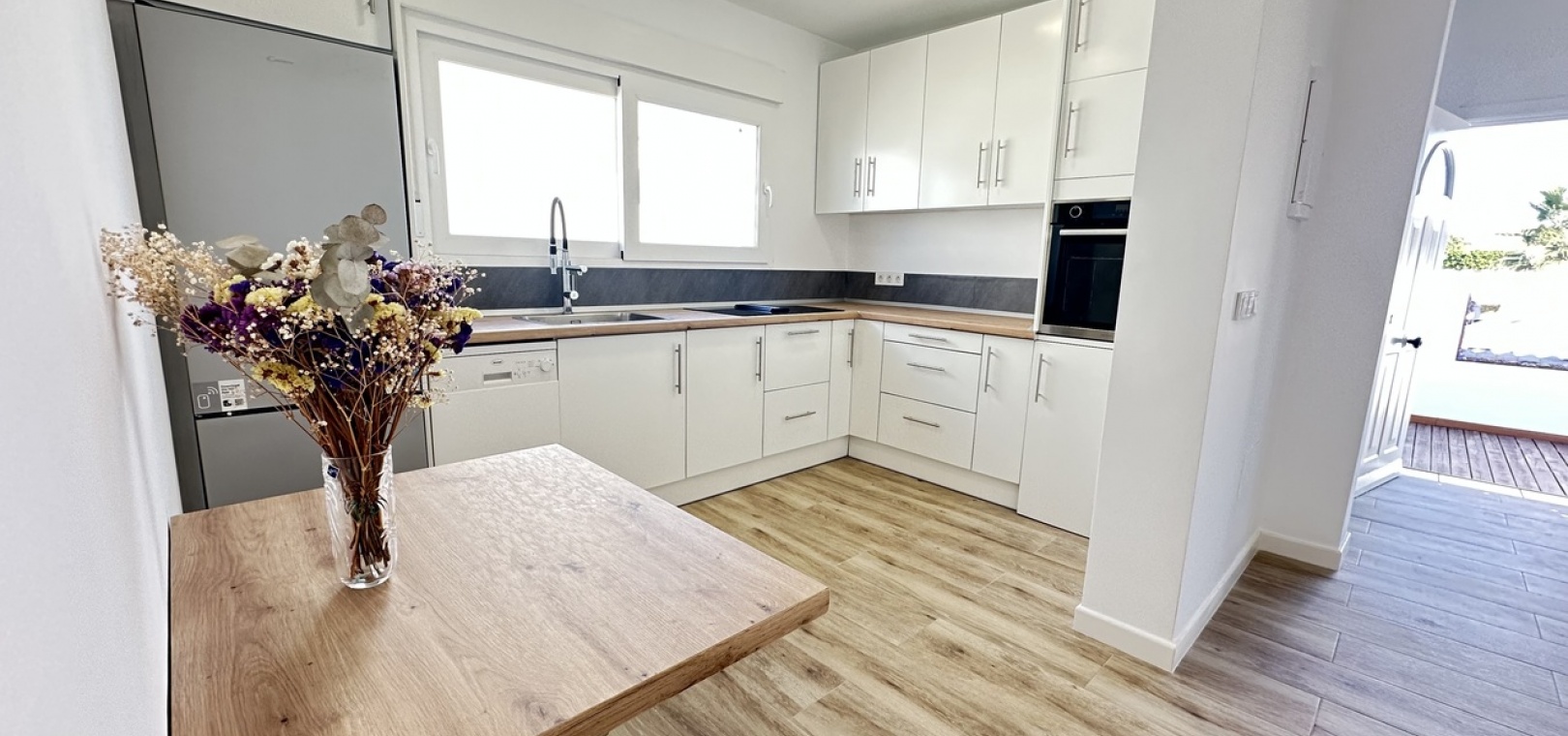Diese komplett renovierte Villa in San Luis bietet 100 m² Wohnfläche auf einem 300 m² großen Grundstück. Sie verfügt über 3 Schlafzimmer, 2 Badezimmer (eines davon ensuite), ein geräumiges Wohnzimmer und eine moderne Küche. Der Vorgarten hat elektrische Tore und einen Parkplatz für zwei Autos. Diese Villa wurde auf hohem Niveau renoviert, alle Wohnbereiche und Schlafzimmer sind voll klimatisiert. Der offene Wohnbereich ist mit der Küche verbunden, und Terrassentüren führen zu einem Poolbereich. Draußen gibt es einen Grill, einen Pavillon und einen 8 x 4 m großen Pool, der von Kunstrasen umgeben ist. Sie liegt in der Nähe des Parks Laguna de la Mata, in der Nähe von Geschäften, Bars und Restaurants, und das Einkaufszentrum Habaneras ist nur eine kurze Autofahrt entfernt.