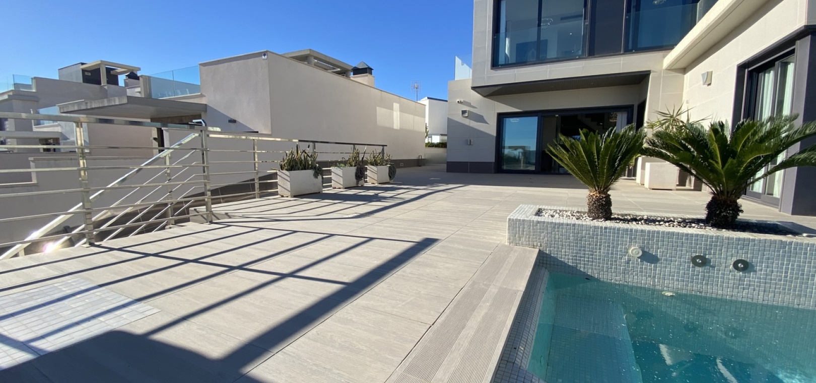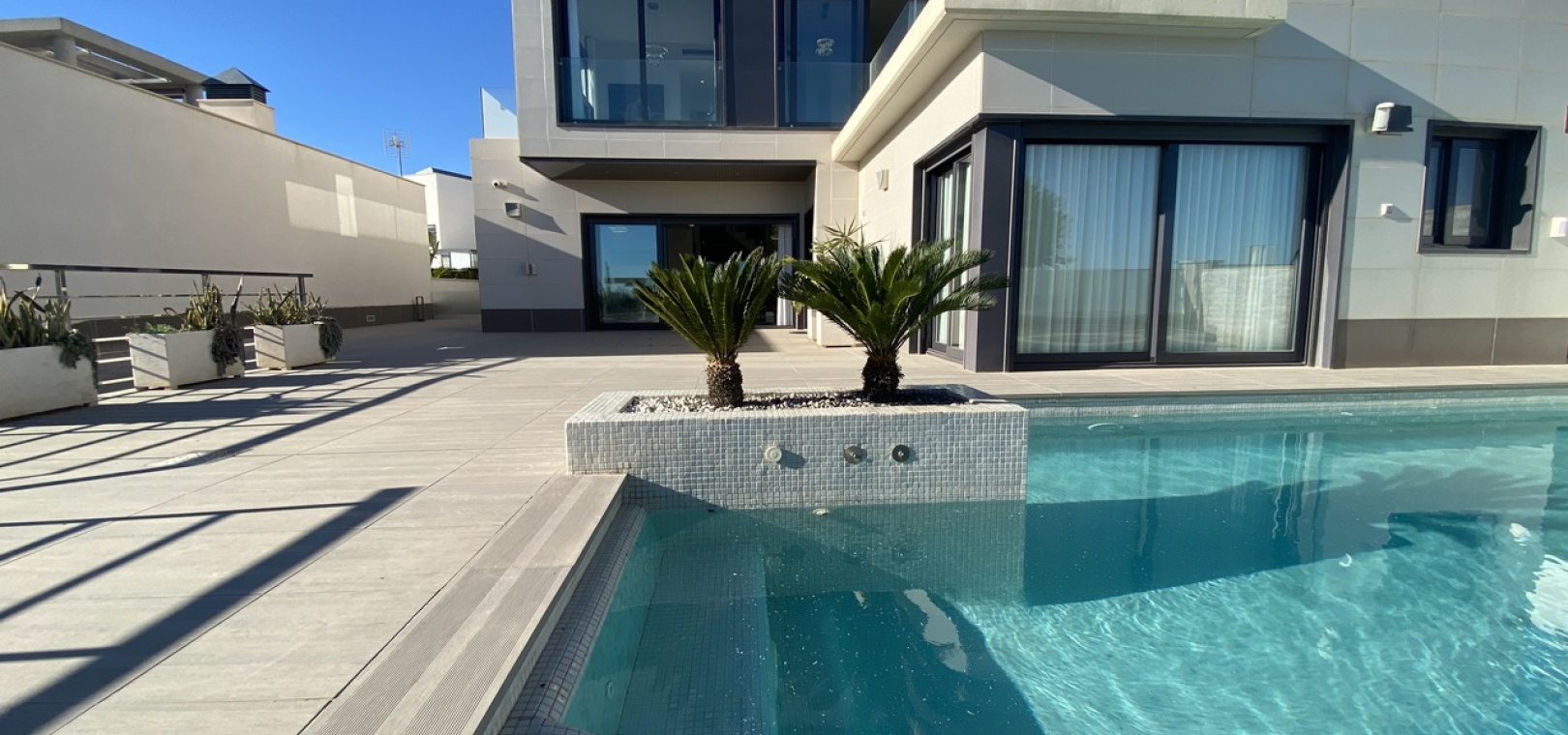 Im ersten Stock finden Sie zwei großzügig geschnittene Schlafzimmer, zwei Badezimmer und Zugang zu bezaubernden Balkonen. Das Kronjuwel dieser Luxusvilla ist das 70 m² große Solarium im obersten Stockwerk, das einen unvergleichlichen Aussichtspunkt bietet, um den Panoramablick zu genießen.