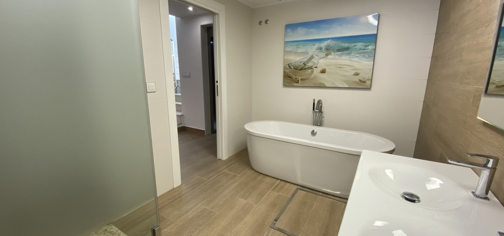 Die Residenz ist sorgfältig mit hochwertigen Annehmlichkeiten wie motorisierten Sofas, brandneuen Matratzen, einem Dampfofen mit Pyrolyse und einem Kombikühlschrank ausgestattet, der sowohl normales als auch Crushed Ice ausgibt.