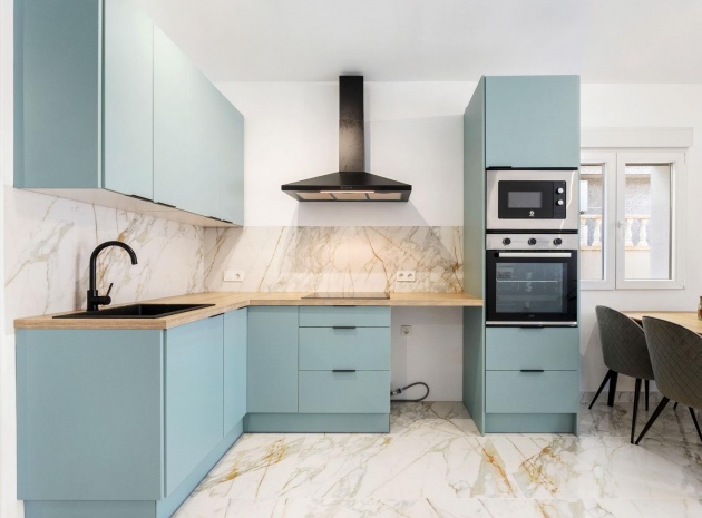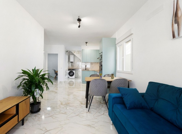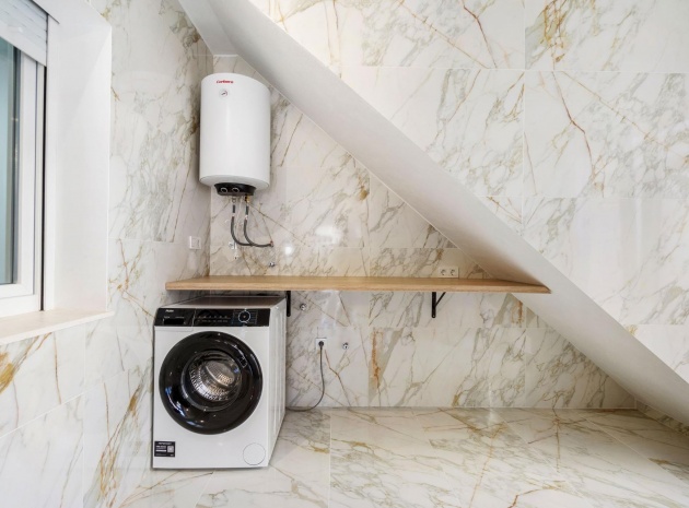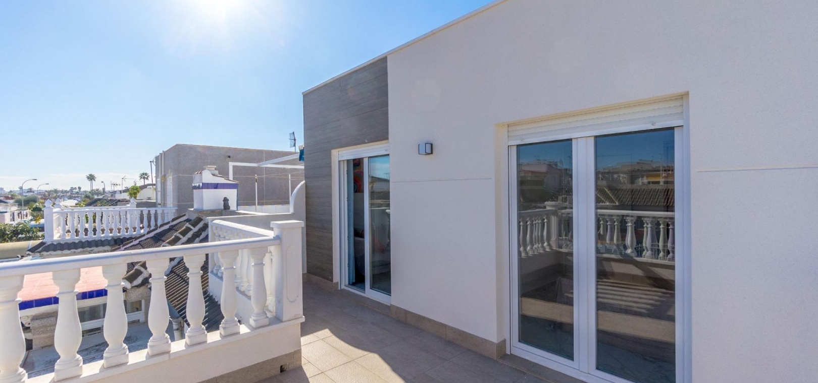 Neu renovierte Doppelhaushälfte in El Chaparra, nur eine kurze Fahrt von Geschäften, Bars, Restaurants, Supermärkten und der Stadt Torrevieja entfernt. Es ist in zwei Häuser mit eigenem Zugang aufgeteilt. Im Erdgeschoss haben wir ein Haus mit 54 m² Fläche, bestehend aus 2 Schlafzimmern, einem Badezimmer, einem Wohn-Esszimmer und einer offenen Küche. Im ersten Stock eine Wohnung mit eigenem Eingang, von ca. 35 m², bestehend aus 1 Doppelzimmer, Wohnzimmer, eigener Küche und Badezimmer; mit einer großen Terrasse mit Blick auf die Umgebung. Die umfassende Renovierung wurde vor kurzem mit hochwertigen Materialien und modernem Innendesign durchgeführt. Fußbodenheizung in den Badezimmern. Verkauft mit brandneuen Möbeln und Geräten. Parkplatz für das Auto auf dem Grundstück. Diese Villa bietet eine harmonische Kombination aus Komfort und Stil.