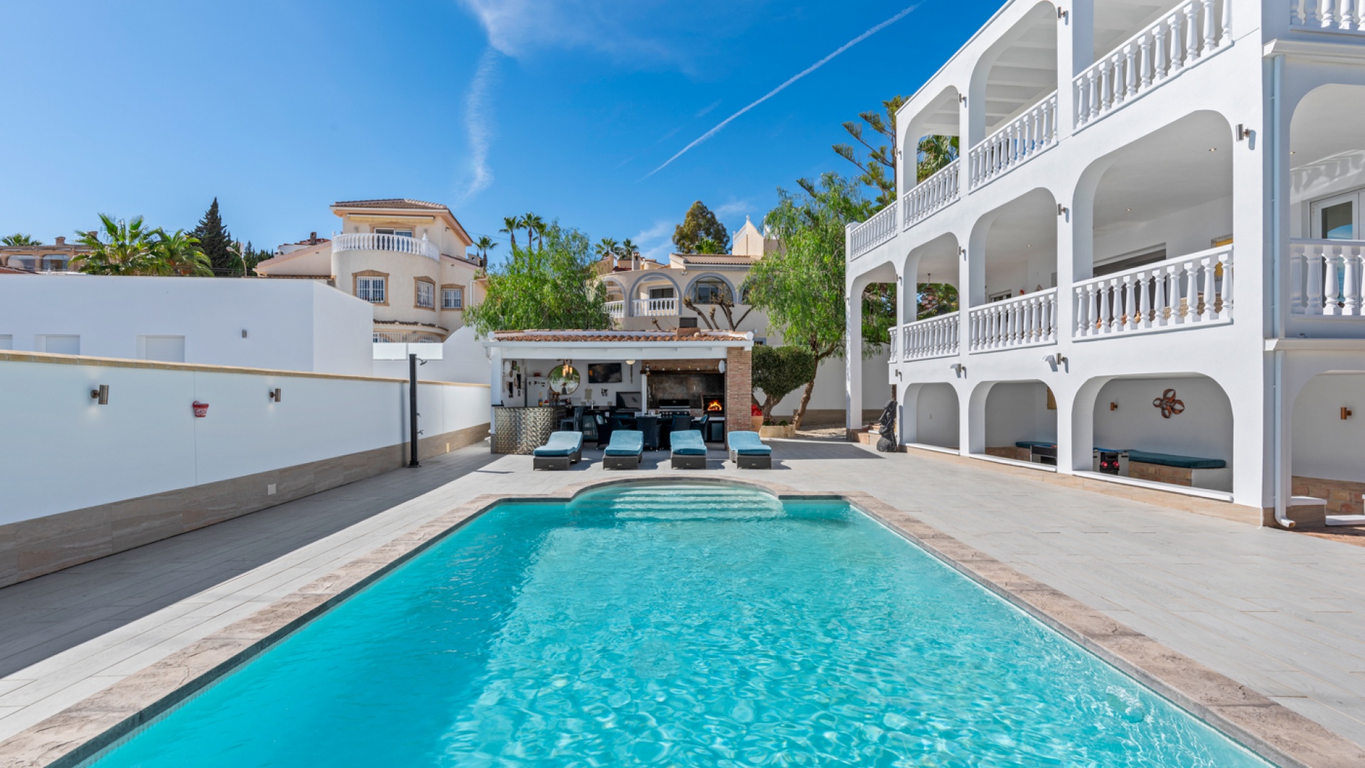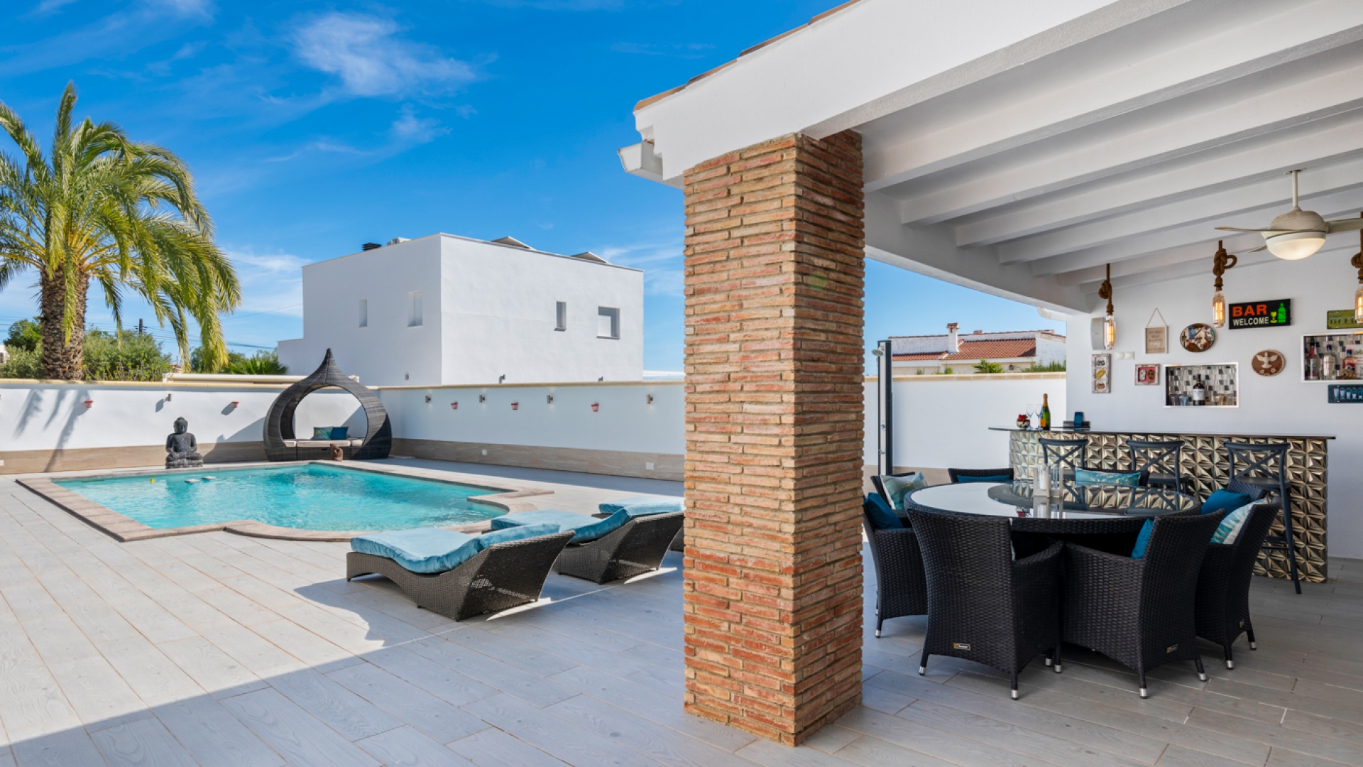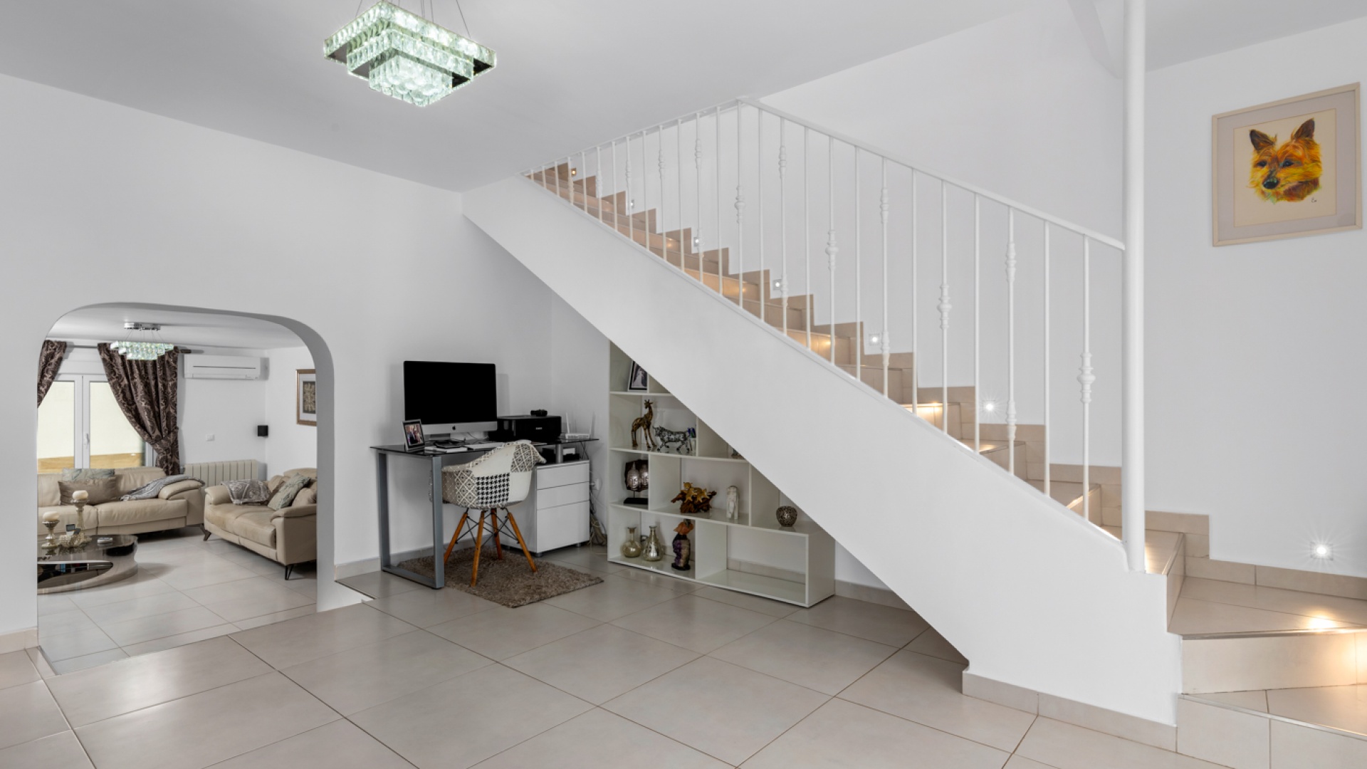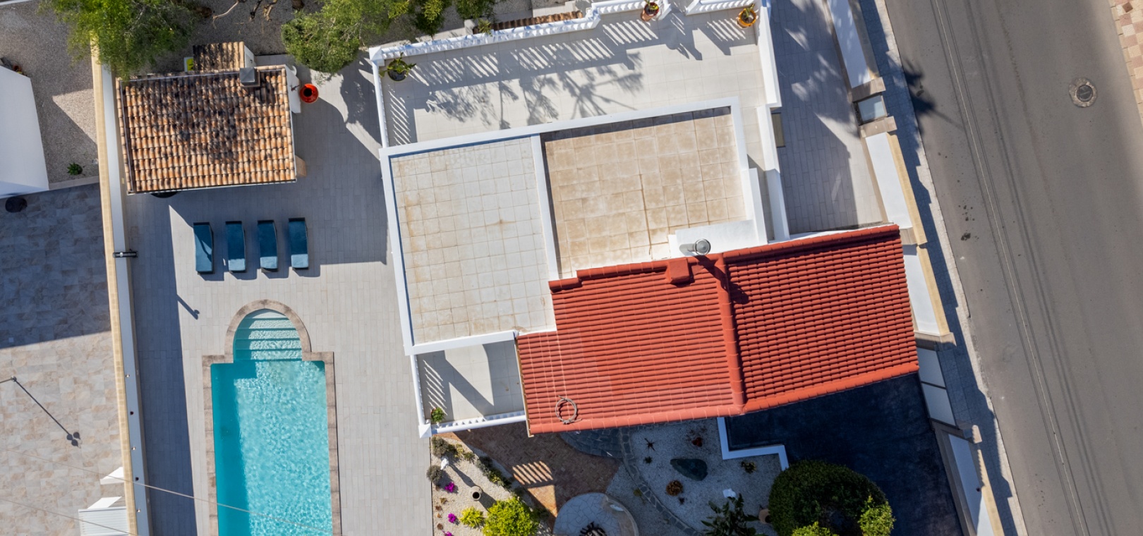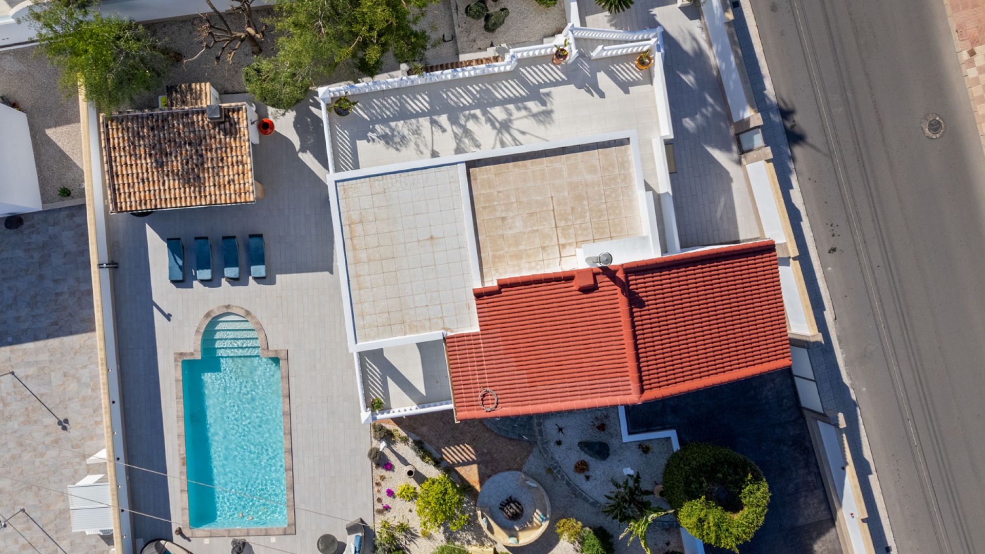 Die Villa wurde auf einem nach Süden ausgerichteten Grundstück von 800 m² gebaut und erstreckt sich über zwei Ebenen. Die Gesamtfläche beträgt 306,40 m². Sie besteht aus 4 Schlafzimmern, 3 Badezimmern (2 davon en-suite), einer Toilette, 2 Küchen (innen/außen), Wohnzimmer, Esszimmer, 2 überdachten Terrassen, einer offenen Terrasse, Abstellräumen, privatem Swimmingpool, Parkplatz abseits der Straße, Feuerstellenbereich, Waschküche und Garten.