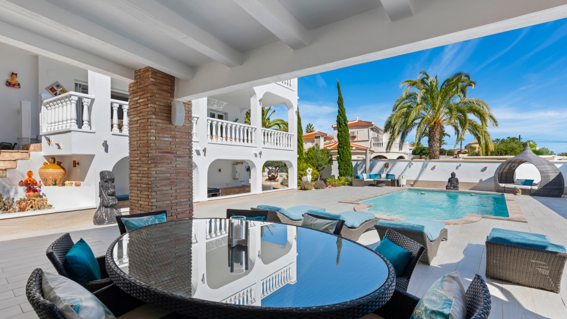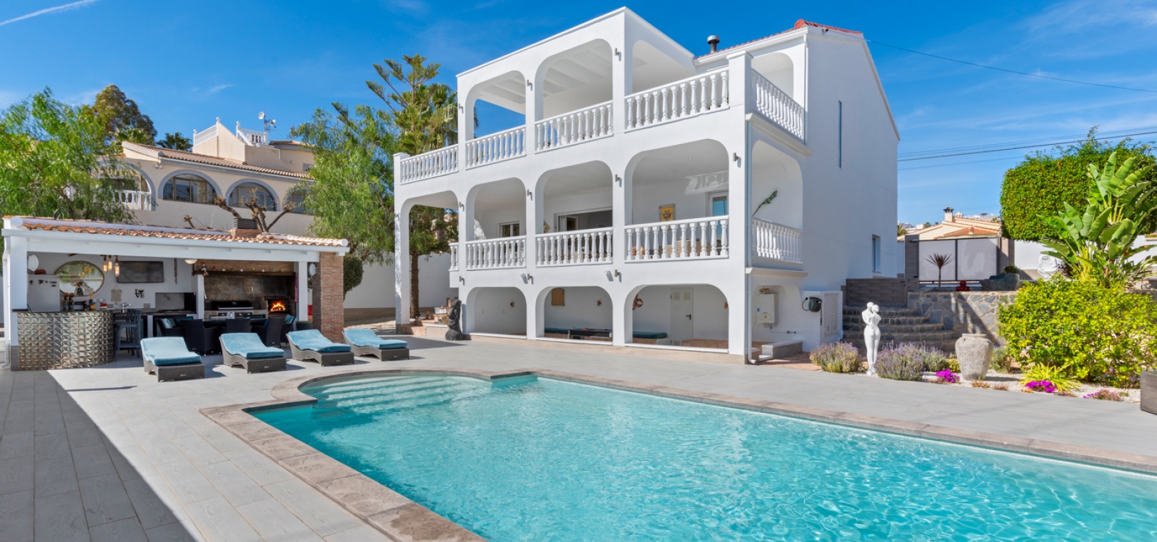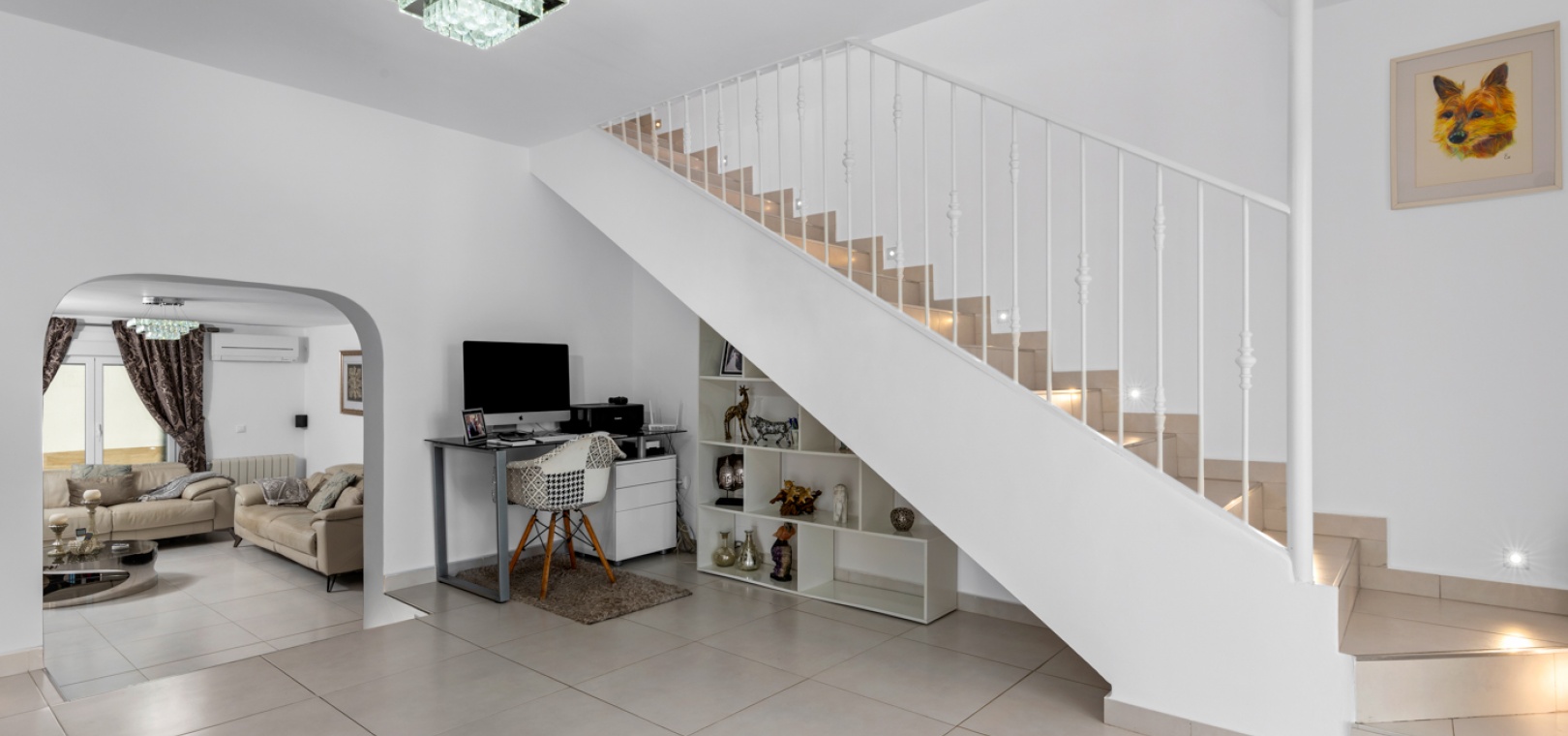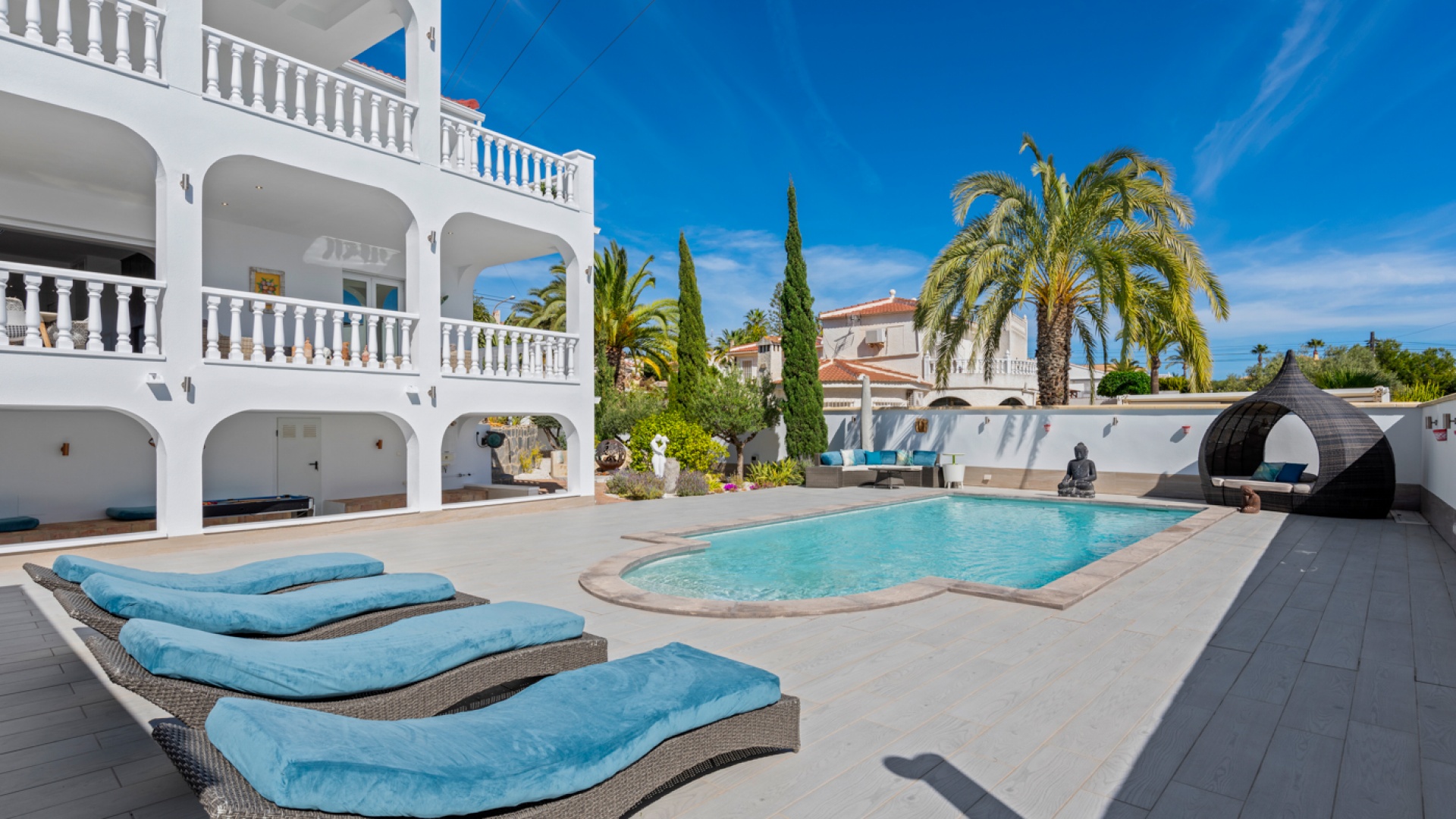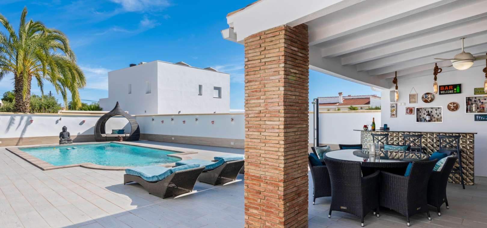 Die Villa wurde auf einem nach Süden ausgerichteten Grundstück von 800 m² gebaut und erstreckt sich über zwei Ebenen. Die Gesamtfläche beträgt 306,40 m². Sie besteht aus 4 Schlafzimmern, 3 Badezimmern (2 davon en-suite), einer Toilette, 2 Küchen (innen/außen), Wohnzimmer, Esszimmer, 2 überdachten Terrassen, einer offenen Terrasse, Abstellräumen, privatem Swimmingpool, Parkplatz abseits der Straße, Feuerstellenbereich, Waschküche und Garten.