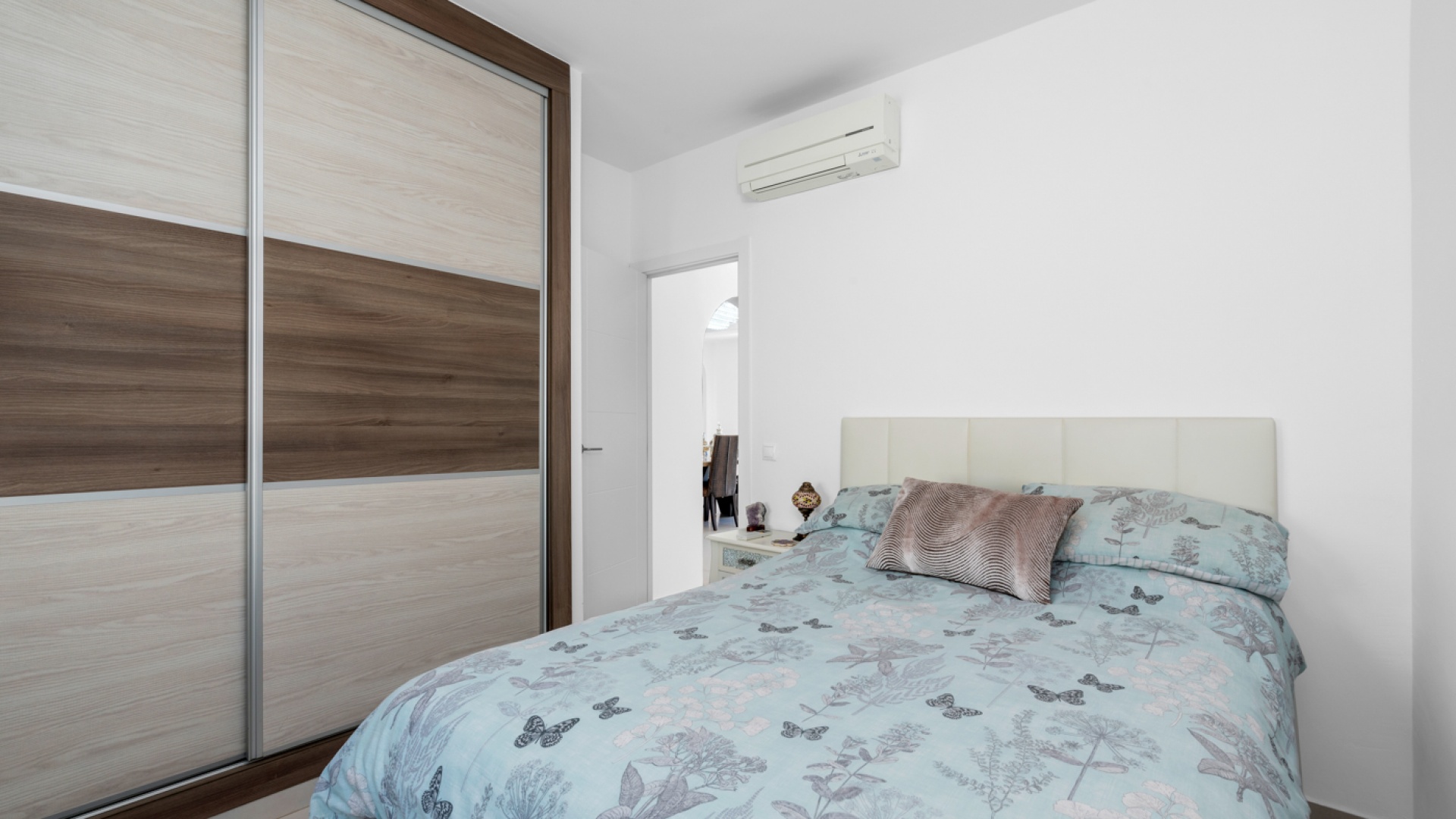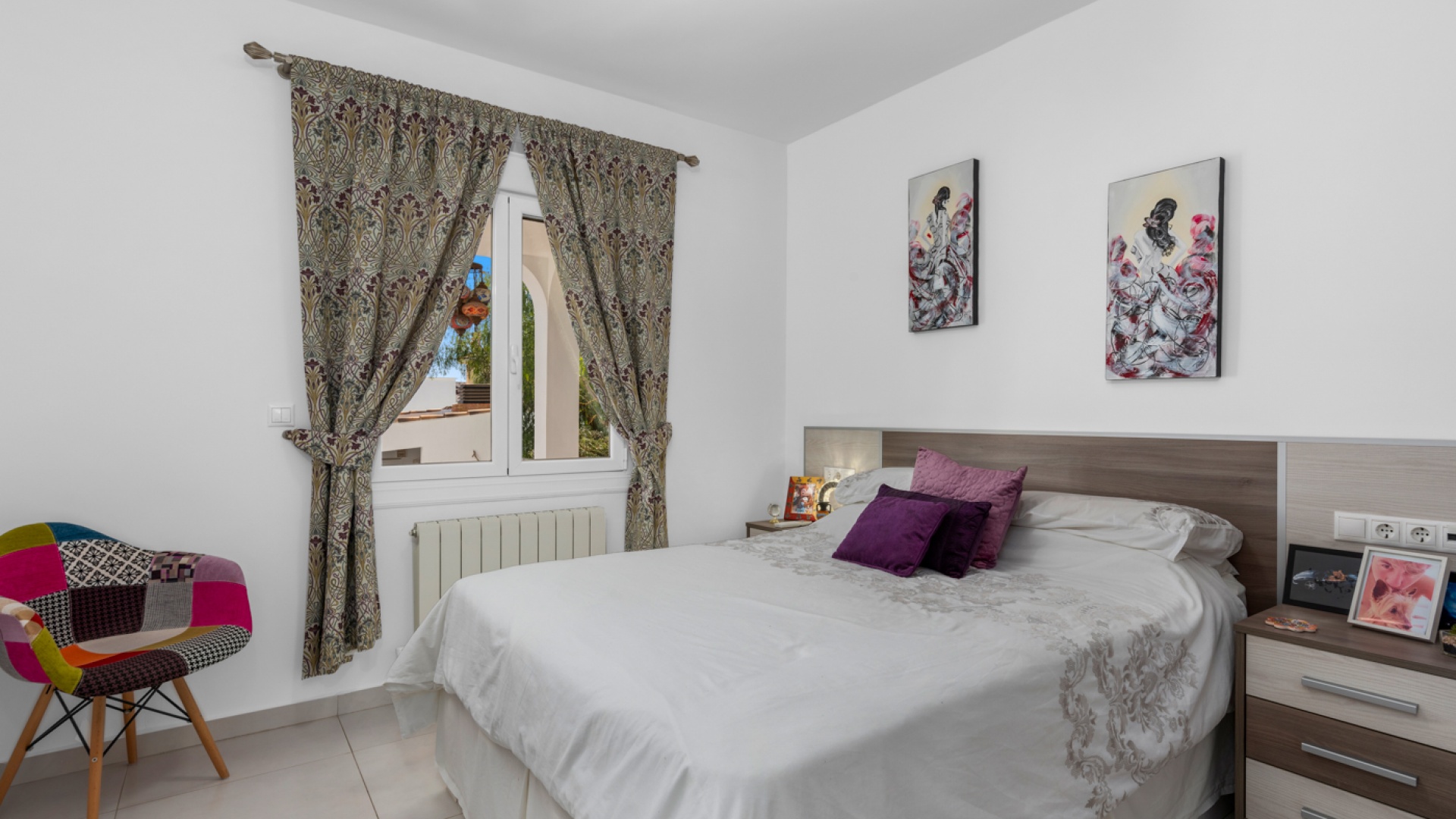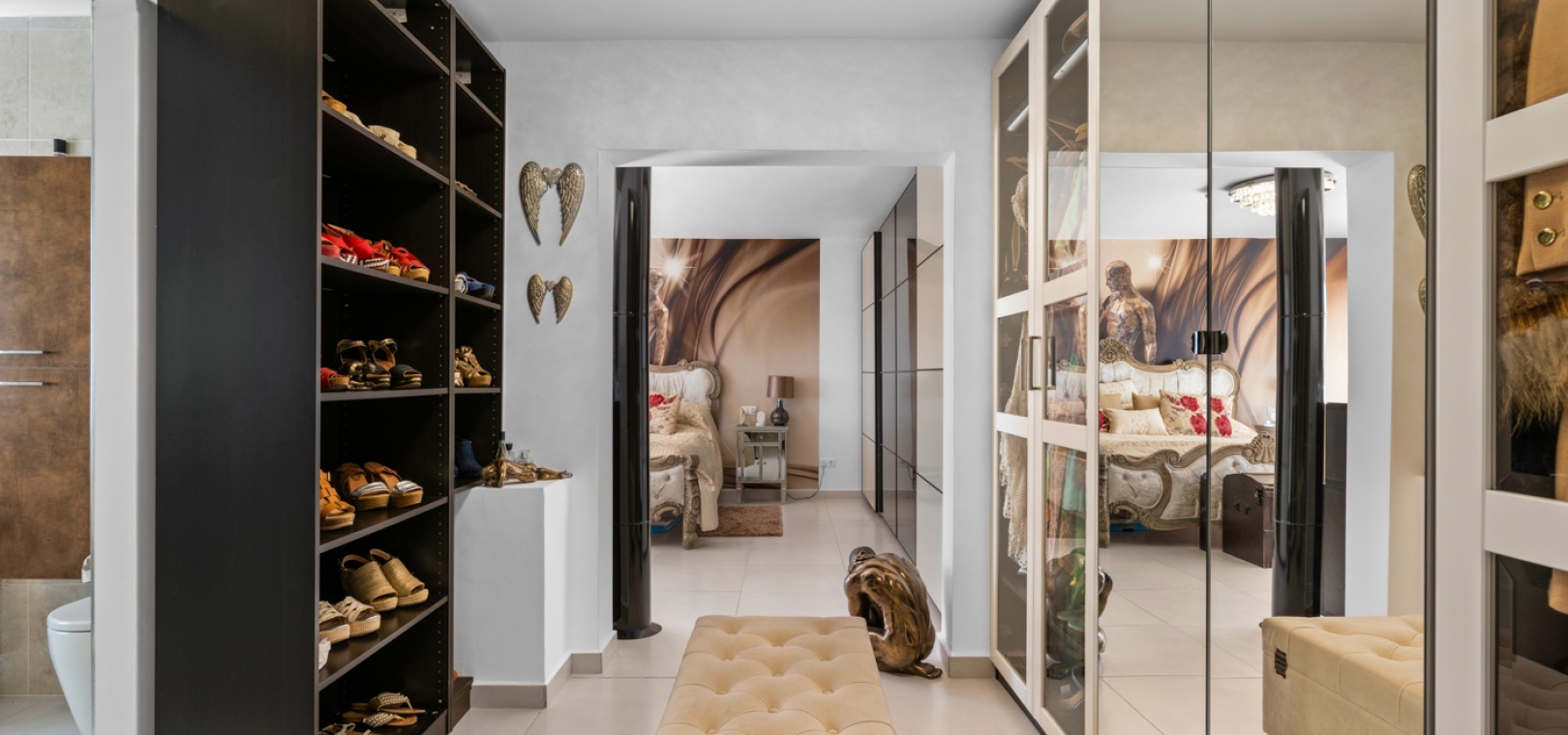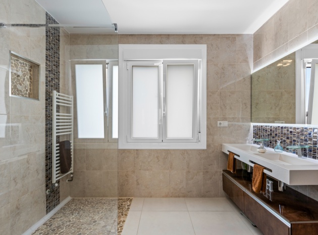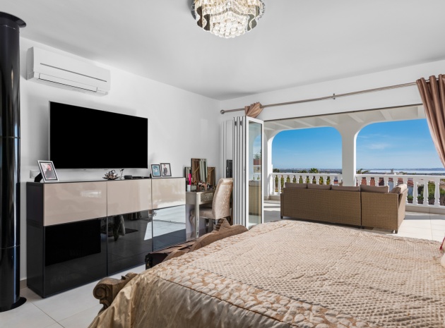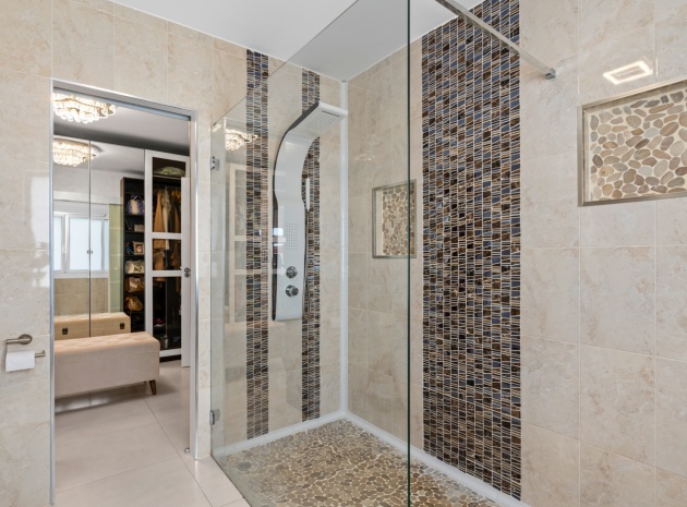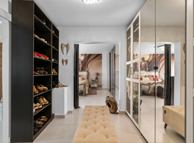 Im ersten Stock finden Sie 2 Schlafzimmer, beide mit eigenem Bad. Das Hauptschlafzimmer verfügt über einen begehbaren Kleiderschrank und direkten Zugang zu einer zweiten Terrasse mit spektakulärer Aussicht.