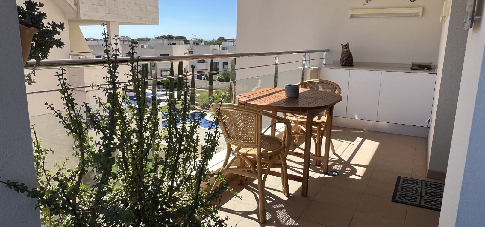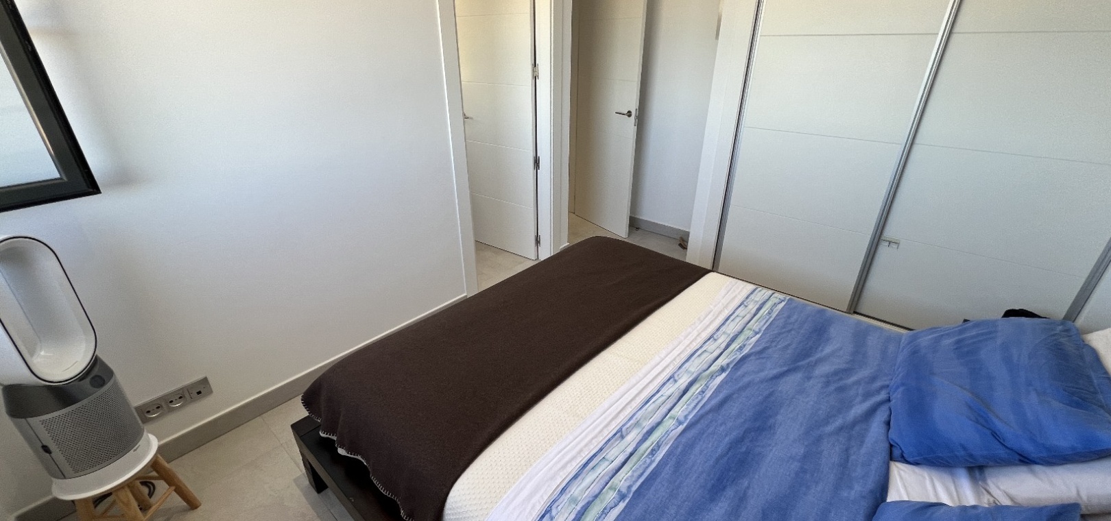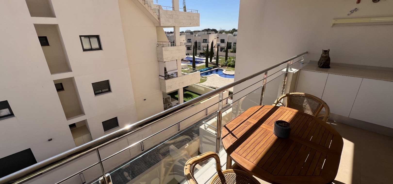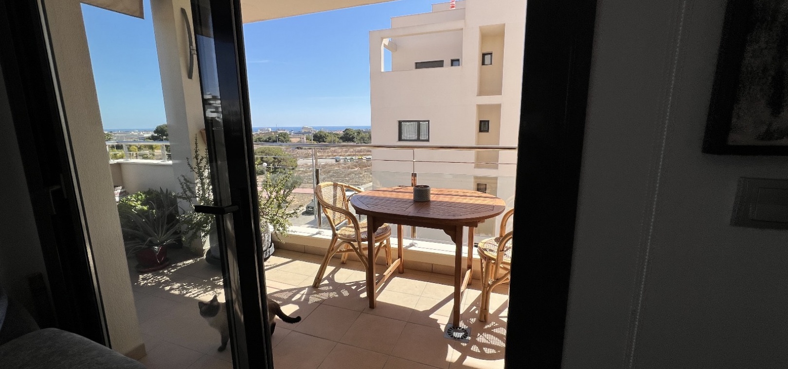 Wir präsentieren Ihnen dieses atemberaubende, moderne Apartment mit 2 Schlafzimmern und 2 Bädern sowie bezauberndem Meerblick. Eingebettet in die begehrte Gegend Los Dolses / La Zenia bietet diese Residenz eine perfekte Mischung aus modernem Design und Küstencharme. Betreten Sie den luftigen und hellen Wohnbereich, der von natürlichem Licht durchflutet wird und eine einladende Atmosphäre schafft. Das Highlight dieses Apartments ist die schöne Eckterrasse mit Blick auf den großen Park und den darunter liegenden Gemeinschaftspool. Ideal, um den Sonnenaufgang am Morgen bei einem Kaffee mit einer ruhigen Aussicht im Hintergrund zu genießen. Der offene Grundriss verbindet nahtlos die Wohn-, Ess- und Küchenbereiche und ist perfekt, um Gäste zu unterhalten oder mit der Familie zu entspannen. Die gut ausgestattete Küche bietet reichlich Platz zum Vorbereiten und wird durch einen separaten Wasch-/Speiseraum ergänzt, was für Komfort und Funktionalität sorgt. Dieses Anwesen bietet außerdem praktische Annehmlichkeiten wie eine Tiefgarage und einen Abstellraum, einen gemeinschaftlichen Fahrradkeller und einen Kinderspielplatz. Tauchen Sie ein in die wunderschön angelegten Gärten, die einen ruhigen Rückzugsort innerhalb der Gemeinschaft bieten. Genießen Sie entspannte Schwimmzüge in einem der beiden Pools, darunter ein beheizter Pool für ganzjährigen Genuss. Dank der günstigen Lage haben die Bewohner einfachen Zugang zu einer Reihe von Annehmlichkeiten, darunter das renommierte Einkaufszentrum Zenia Boulevard und die Sandstrände von Orihuela Costa.