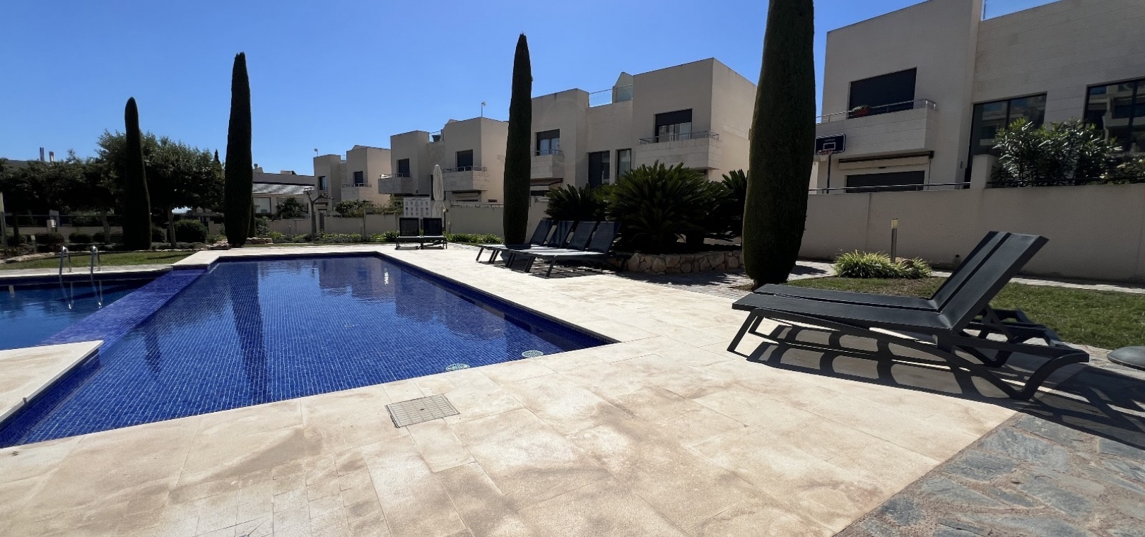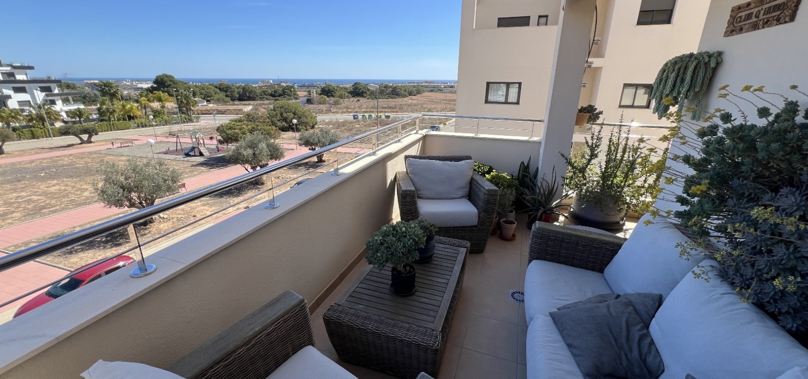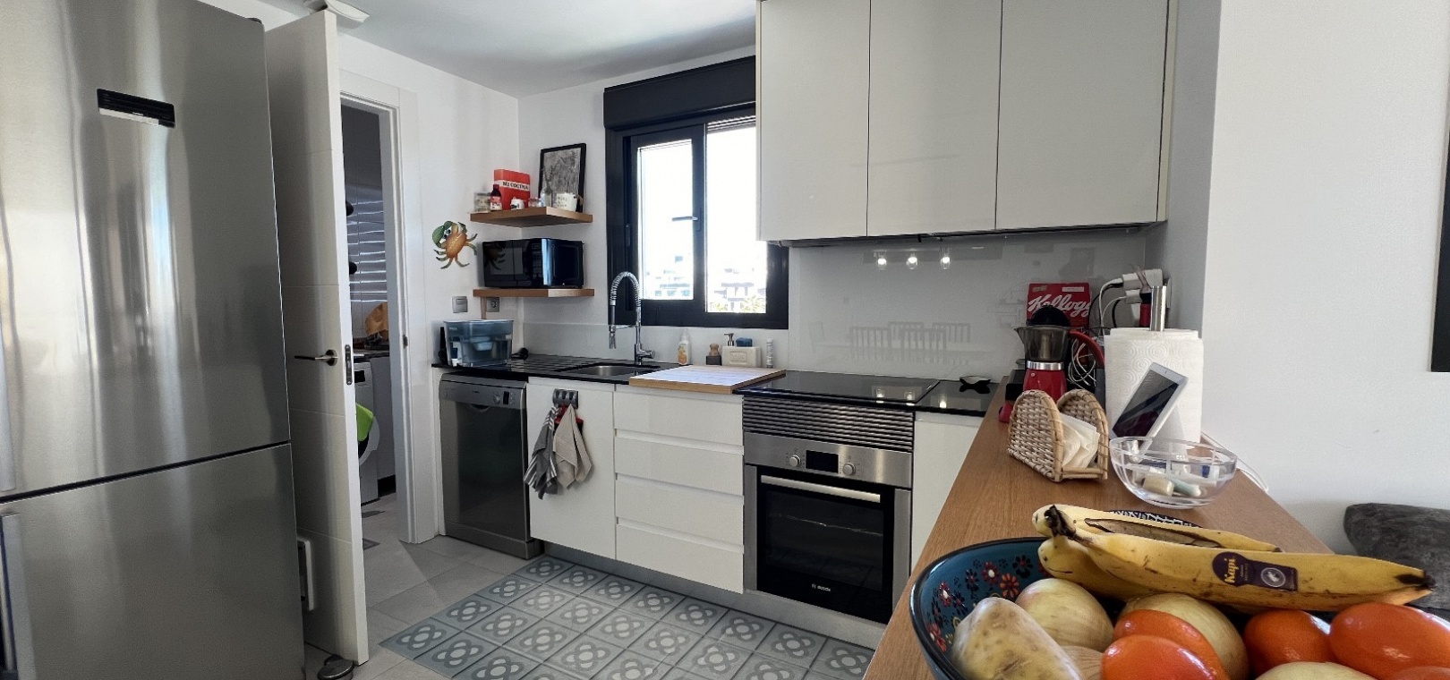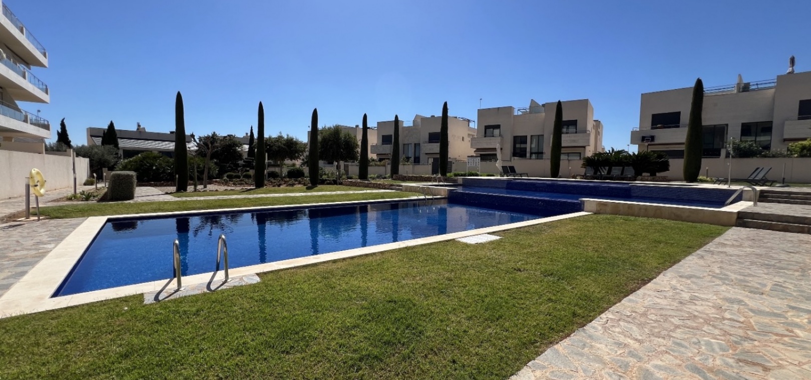 Wir präsentieren Ihnen dieses atemberaubende, moderne Apartment mit 2 Schlafzimmern und 2 Bädern sowie bezauberndem Meerblick. Eingebettet in die begehrte Gegend Los Dolses / La Zenia bietet diese Residenz eine perfekte Mischung aus modernem Design und Küstencharme. Betreten Sie den luftigen und hellen Wohnbereich, der von natürlichem Licht durchflutet wird und eine einladende Atmosphäre schafft. Das Highlight dieses Apartments ist die schöne Eckterrasse mit Blick auf den großen Park und den darunter liegenden Gemeinschaftspool. Ideal, um den Sonnenaufgang am Morgen bei einem Kaffee mit einer ruhigen Aussicht im Hintergrund zu genießen. Der offene Grundriss verbindet nahtlos die Wohn-, Ess- und Küchenbereiche und ist perfekt, um Gäste zu unterhalten oder mit der Familie zu entspannen. Die gut ausgestattete Küche bietet reichlich Platz zum Vorbereiten und wird durch einen separaten Wasch-/Speiseraum ergänzt, was für Komfort und Funktionalität sorgt. Dieses Anwesen bietet außerdem praktische Annehmlichkeiten wie eine Tiefgarage und einen Abstellraum, einen gemeinschaftlichen Fahrradkeller und einen Kinderspielplatz. Tauchen Sie ein in die wunderschön angelegten Gärten, die einen ruhigen Rückzugsort innerhalb der Gemeinschaft bieten. Genießen Sie entspannte Schwimmzüge in einem der beiden Pools, darunter ein beheizter Pool für ganzjährigen Genuss. Dank der günstigen Lage haben die Bewohner einfachen Zugang zu einer Reihe von Annehmlichkeiten, darunter das renommierte Einkaufszentrum Zenia Boulevard und die Sandstrände von Orihuela Costa.