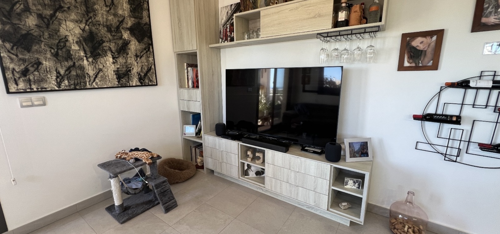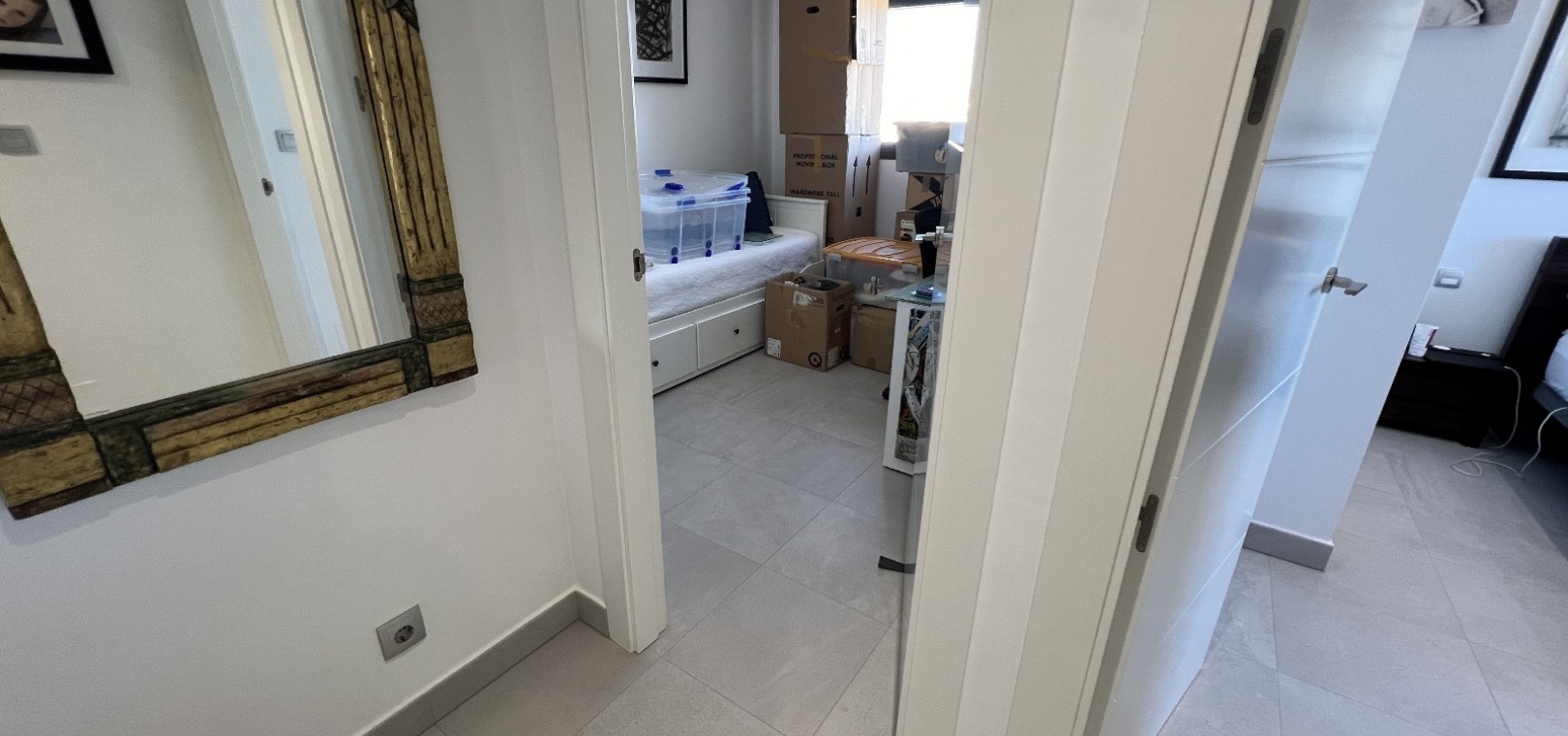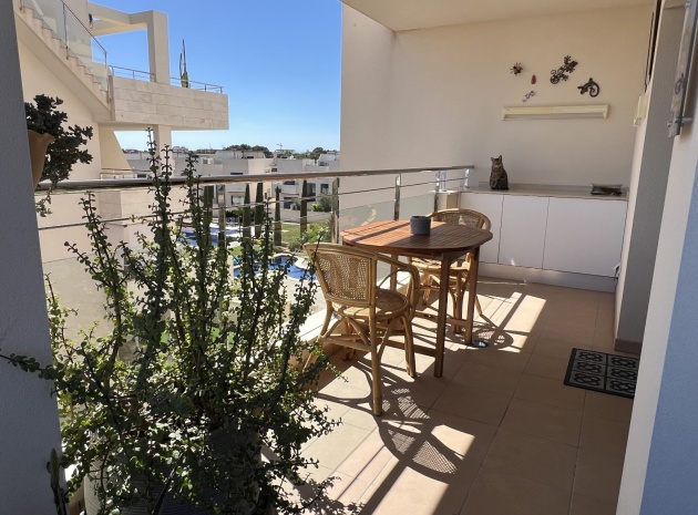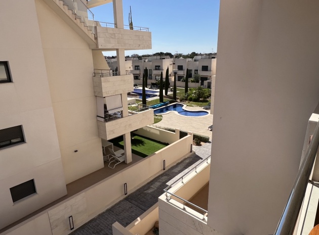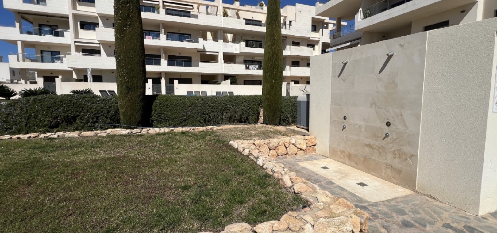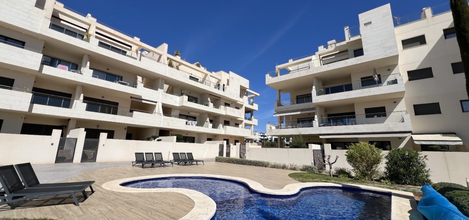 Wir präsentieren Ihnen dieses atemberaubende, moderne Apartment mit 2 Schlafzimmern und 2 Bädern sowie bezauberndem Meerblick. Eingebettet in die begehrte Gegend Los Dolses / La Zenia bietet diese Residenz eine perfekte Mischung aus modernem Design und Küstencharme. Betreten Sie den luftigen und hellen Wohnbereich, der von natürlichem Licht durchflutet wird und eine einladende Atmosphäre schafft. Das Highlight dieses Apartments ist die schöne Eckterrasse mit Blick auf den großen Park und den darunter liegenden Gemeinschaftspool. Ideal, um den Sonnenaufgang am Morgen bei einem Kaffee mit einer ruhigen Aussicht im Hintergrund zu genießen. Der offene Grundriss verbindet nahtlos die Wohn-, Ess- und Küchenbereiche und ist perfekt, um Gäste zu unterhalten oder mit der Familie zu entspannen. Die gut ausgestattete Küche bietet reichlich Platz zum Vorbereiten und wird durch einen separaten Wasch-/Speiseraum ergänzt, was für Komfort und Funktionalität sorgt. Dieses Anwesen bietet außerdem praktische Annehmlichkeiten wie eine Tiefgarage und einen Abstellraum, einen gemeinschaftlichen Fahrradkeller und einen Kinderspielplatz. Tauchen Sie ein in die wunderschön angelegten Gärten, die einen ruhigen Rückzugsort innerhalb der Gemeinschaft bieten. Genießen Sie entspannte Schwimmzüge in einem der beiden Pools, darunter ein beheizter Pool für ganzjährigen Genuss. Dank der günstigen Lage haben die Bewohner einfachen Zugang zu einer Reihe von Annehmlichkeiten, darunter das renommierte Einkaufszentrum Zenia Boulevard und die Sandstrände von Orihuela Costa.