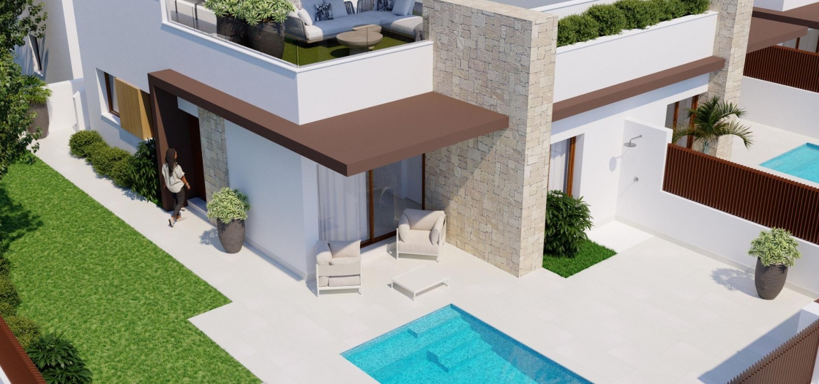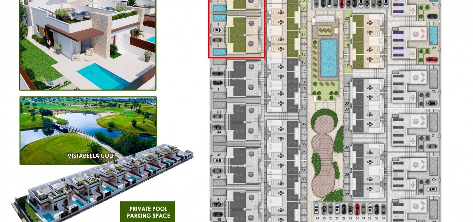 6 freistehende Villen mit 4 Schlafzimmern, 3 Bädern und 1 Gäste-WC.