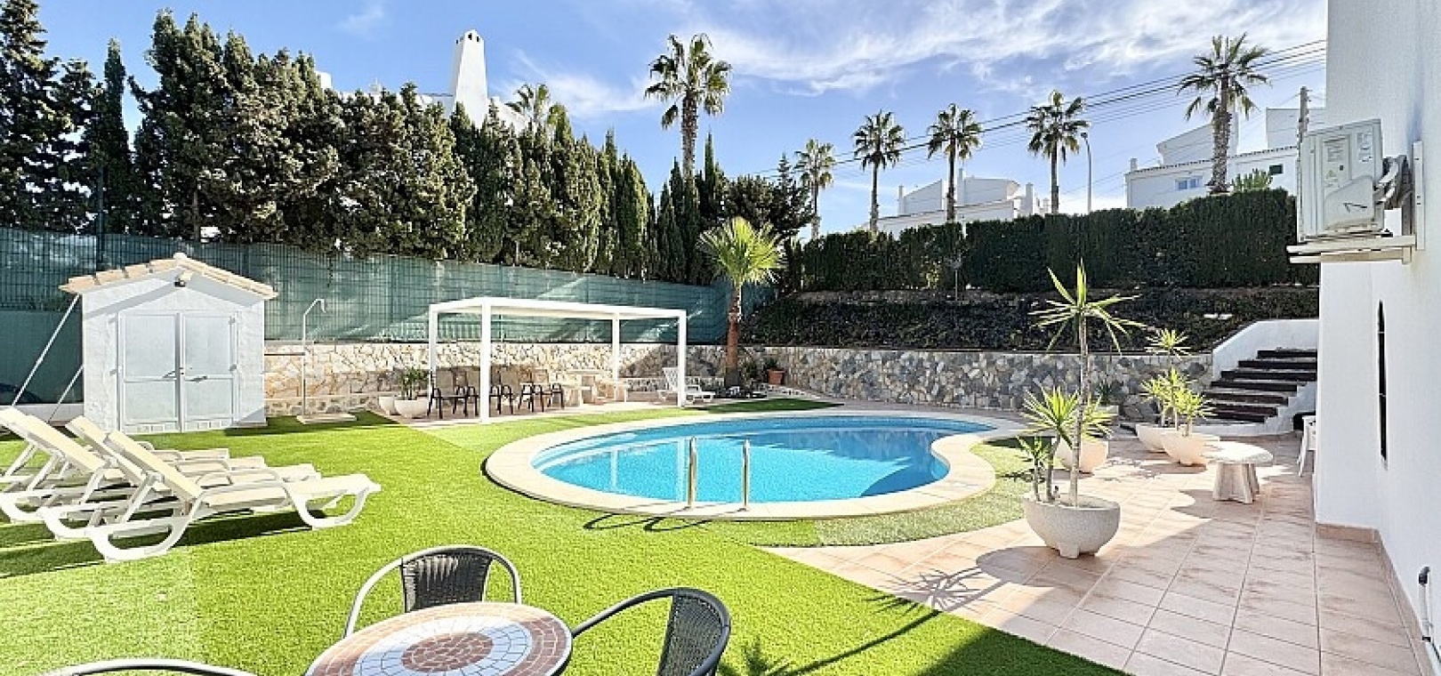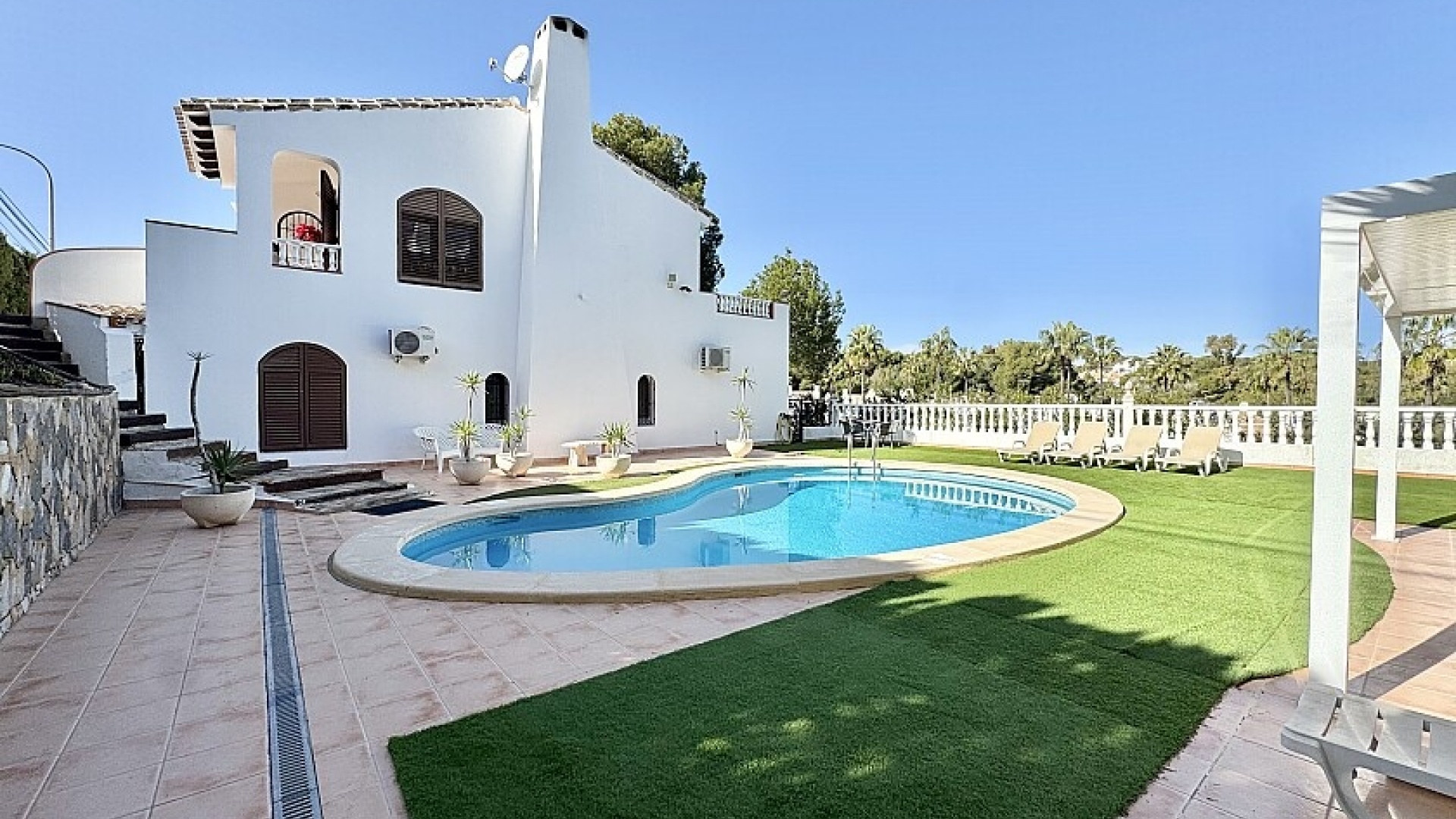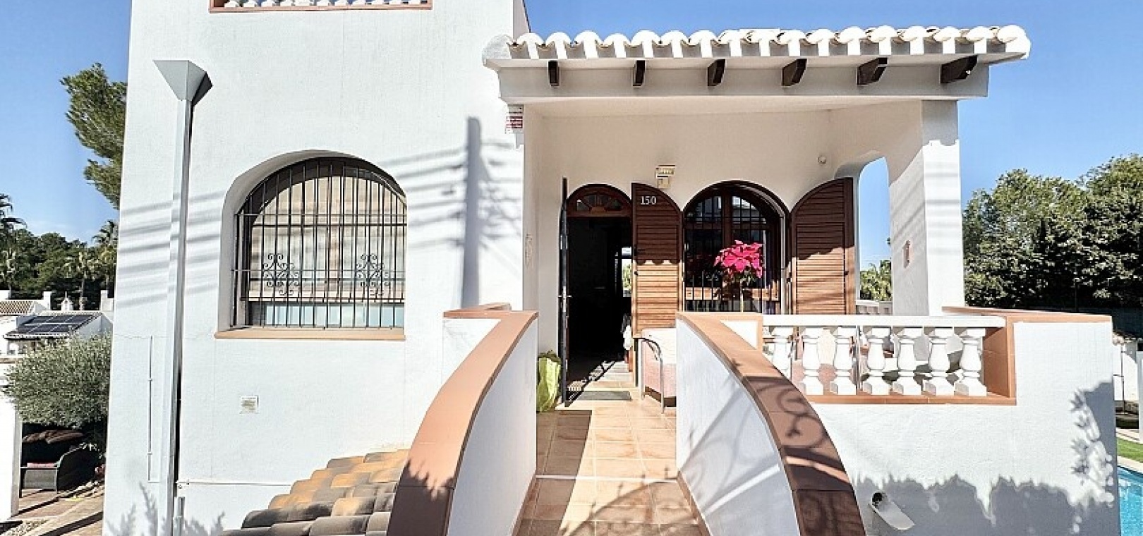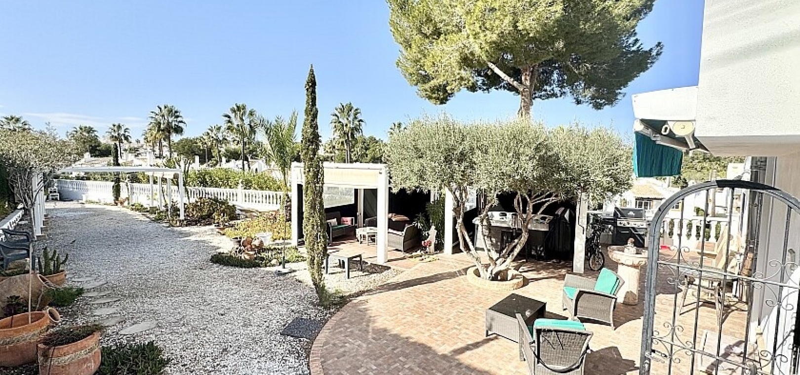 Freistehende Villa mit 4 Schlafzimmern und Blick auf den Golfplatz Villamartín. Freistehende Villa mit 4 Schlafzimmern und 2 Bädern mit privatem Pool. Diese nach Süden ausgerichtete Villa mit Blick auf den Golfplatz Villamartín verfügt über ein großes 900 m2 großes Grundstück, einen privaten Pool, einen Whirlpool und ein Solarium. Es wird komplett möbliert und ausgestattet verkauft, kürzlich renoviert und verfügt über einen Kamin auf jeder Etage und eine Klimaanlage. Dieses Chalet verfügt über eine Touristenlizenz und ist daher eine großartige Gelegenheit für Investitionen oder zum ganzjährigen Wohnen. Es liegt 20 Gehminuten vom Platz und dem Golfplatz Villamartín und wenige Autominuten von den Stränden von Orihuela Costa entfernt.