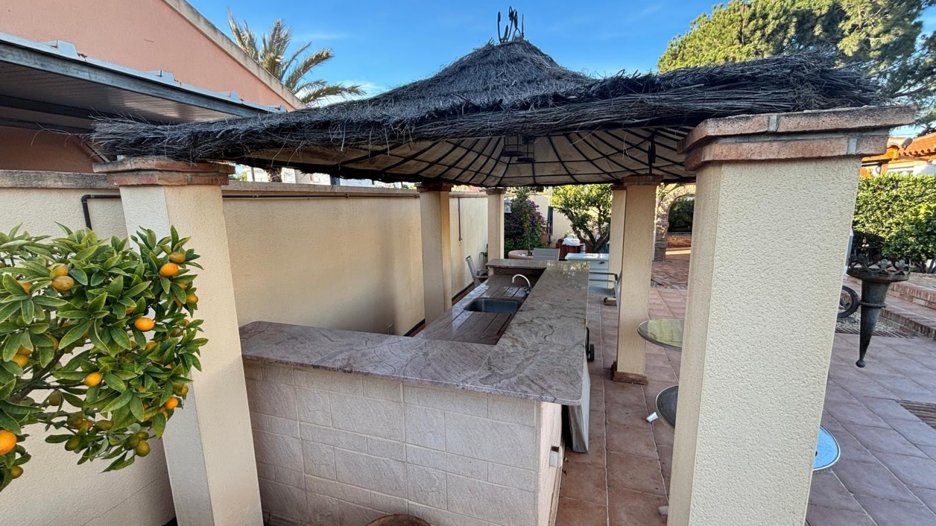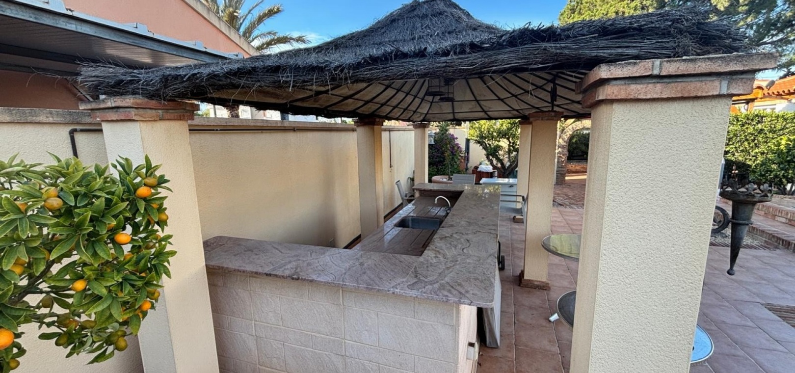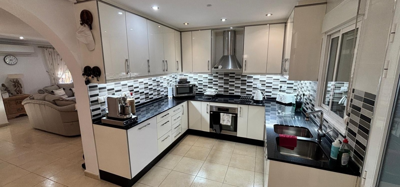 Hier haben wir diese atemberaubende freistehende Villa in Central Quesada. Die Villa befindet sich auf einem Grundstück von etwa 1200 m2 und hat eine große Baufläche von etwa 190 m2. Es gibt 3 Schlafzimmer und 2 Badezimmer im Haupthaus mit großem Wohnzimmer, offener Küche und Esszimmer und einem separaten großen Hauswirtschaftsraum, alles brandneu und sehr modern. Es gibt Zentralheizung und Klimaanlage im ganzen Haus und doppelt verglaste Drehkippfenster. Es gibt eine große verglaste Naya, die auch einen Essbereich und ein Wohnzimmer mit Blick auf den Garten und den Pool bietet. Außerhalb des angelegten Grundstücks mit großem nierenförmigem Pool gibt es eine Außenküche und einen Grillbereich, eine Dusche für den Pool und viele Sitzbereiche. Es gibt auch ein kleineres Gebäude, in dem sich ein Büro und eine weitere Dusche und Toilette mit Umkleideraum befinden. Das Anwesen verfügt über 21 Sonnenkollektoren, einen großen Carport, einen 300-Liter-Tauchsieder, einen Gaskessel, einen Alarm und Videoüberwachungskameras. Alles in allem ein atemberaubendes, voll möbliertes Anwesen, nur 3 Gehminuten von der Stadt entfernt.