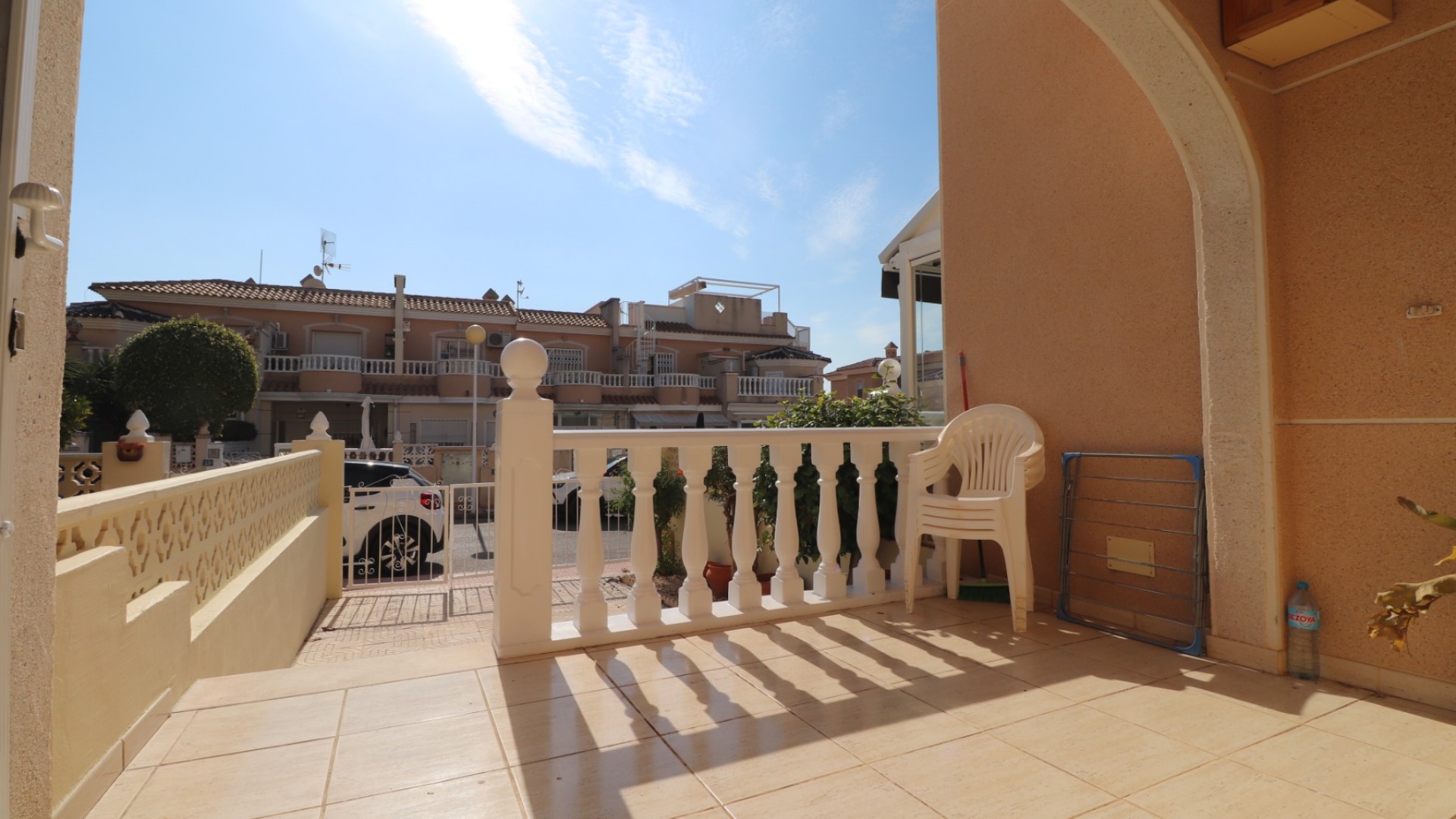Dieses nach Süden ausgerichtete Reihenhaus mit zwei Schlafzimmern in Doña Pepa befindet sich in einer sehr begehrten Gegend, nur wenige Gehminuten von Bars und Restaurants entfernt. In 15 Gehminuten erreichen Sie den nächsten Supermarkt, während der Golfplatz La Marquesa nur 10 Autominuten entfernt ist. Die belebte Hauptstraße von Quesada mit einer Vielzahl von Geschäften, Unterhaltungsmöglichkeiten und Annehmlichkeiten ist etwa 20 Gehminuten entfernt. Dieses gut präsentierte Anwesen profitiert von einer überdachten Eingangsterrasse, die in das Wohn-/Esszimmer führt, mit einem breiten Torbogen, der Zugang zur Einbauküche bietet. Eine Hintertür von der Küche öffnet sich zum privaten, vollständig gefliesten Garten mit Abstellraum. Ebenfalls im Erdgeschoss befindet sich eine praktische Garderobe. Im ersten Stock gibt es zwei Doppelschlafzimmer, beide mit Einbauschränken und eigenen Terrassen. Das Hauptschlafzimmer ist für zusätzlichen Komfort mit einer Klimaanlage ausgestattet. Ein modernes Familienduschbad dient beiden Schlafzimmern. Eine Außentreppe führt zum privaten Solarium, das einen Hauswirtschaftsraum, einen durch ein Solarpanel beheizten Speichertank und einen Blick auf den Salzsee bietet. Das Äußere des Anwesens ist pflegeleicht gestaltet und verfügt über einen komplett gefliesten Vorgarten mit Parkmöglichkeiten abseits der Straße. Die Bewohner haben außerdem Zugang zu einem wunderschön gepflegten Gemeinschaftspoolbereich, der sich perfekt eignet, um die Sonne der Costa Blanca Süd zu genießen.