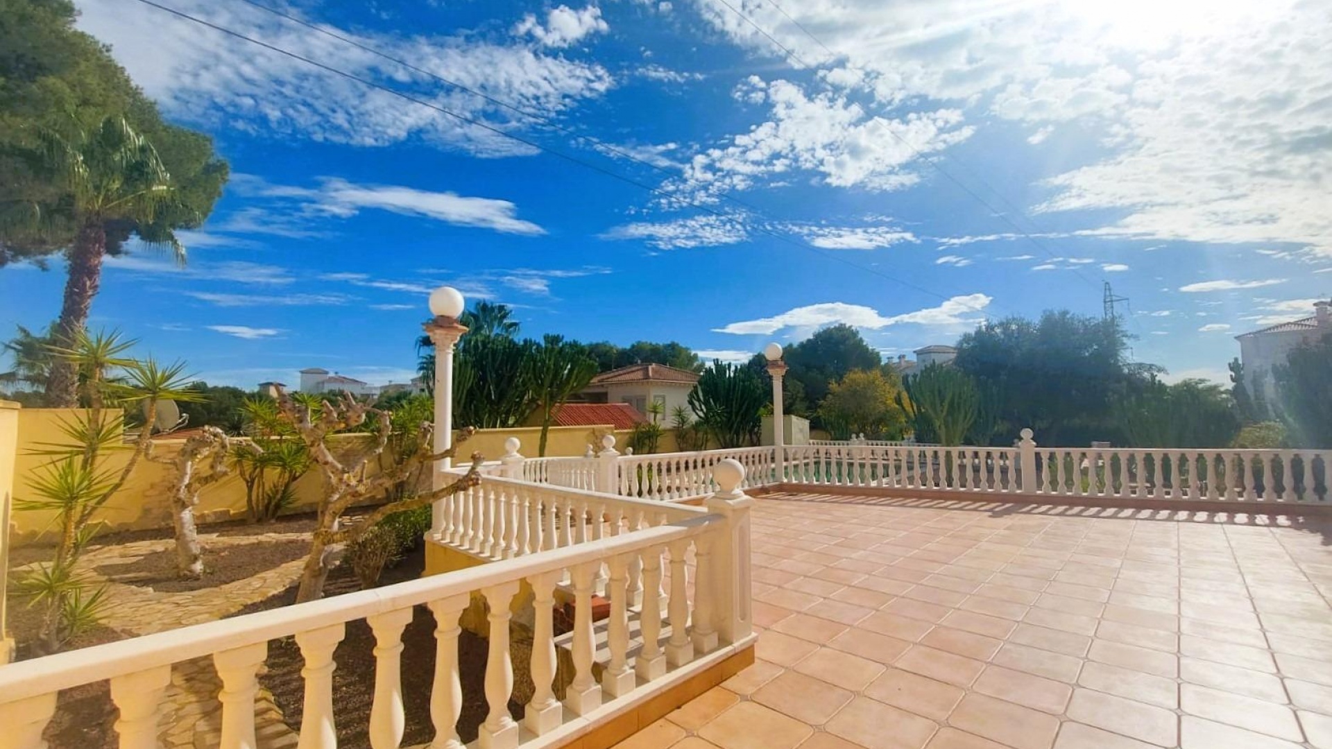 Geräumige und helle freistehende Villa mit einem wunderschönen Garten von fast 1.500 m². Nach höchsten Standards gebaut und renoviert und vollständig legalisiert.~~Über diese spektakuläre Villa gibt es viel zu erzählen:~- 296 m² bebaute Fläche auf 1 Etage~- Ausrichtung nach Südosten~- Schöner großer Swimmingpool~- 2 riesige Terrassen nach Süden bzw. Osten~- Sehr gepflegter Garten mit einer Vielzahl von Trockenlandpflanzen~- 4 große Doppelschlafzimmer~- 2 Badezimmer, 1 en-suite~- Wohn-Essbereich und separate Küche~- Geräumiger Innenhof mit Küchenbereich~- Große geschlossene Garage mit Platz für mehrere Fahrzeuge und Wäschebereich. Automatischer Zugang~- Ölheizung mit Heizkörpern in allen Räumen.~- Fantastische Isolierung: Boden- und Wandkammern. Hochwertige Türen und Fenster~- Automatische Jalousien an den größeren Fenstern/Türen~- Kamin im Wohn-/Esszimmer~- Handgefertigter Terrakottaboden~- Sicherheitstür~- Brunnen, der Wasser von den Dächern über das Abwassersystem sammelt. Ideal zum Bewässern des weitläufigen Gartens mit Bewässerungssystem.~- Möglichkeit zur Erweiterung des Hauses auf einer der großen Terrassen, da es betoniert und mit verstärkten Balken gebaut wurde.~- Liegt am Ende einer Sackgasse und ist daher sehr ruhig.~~