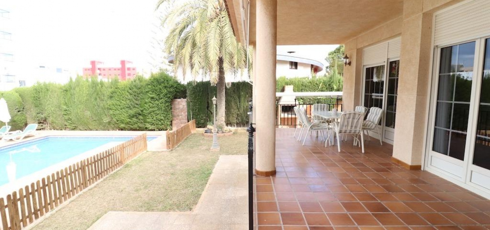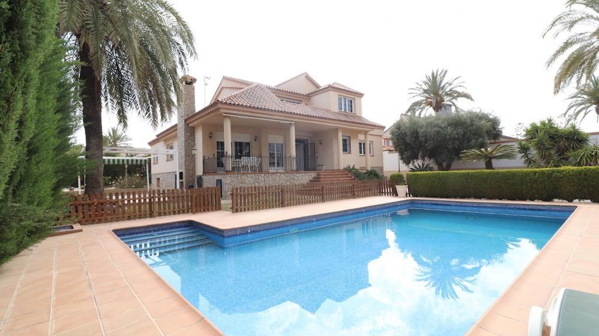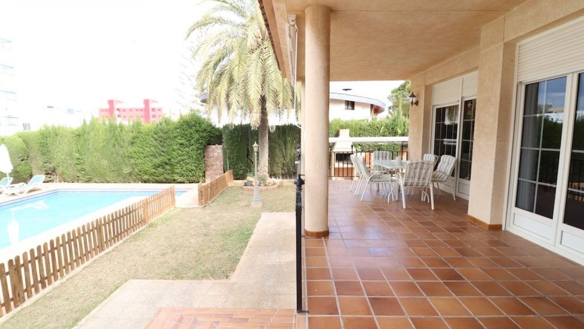 Mil Palmeras, Freistehende Villa mit einem großen Grundstück von 1000 m2 und einem Haus auf 2 Etagen plus einer Kellergarage von ca. 350 m2, es liegt nur 300 m vom Strand entfernt und hat 4 Schlafzimmer, alle Doppelzimmer, mit 3 Bädern, einem großen Wohnzimmer-Esszimmer auf zwei Ebenen, einer großen separaten Küche mit Waschküche, im Obergeschoss befindet sich ein weiteres Wohnzimmer mit Billard und privater Bar, das Haus hat 3 Terrassen, eine Garage für zwei Autos und einen Keller, es hat einen großen Garten mit Grill und Pergola und einem großen privaten Pool.~