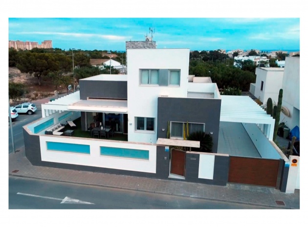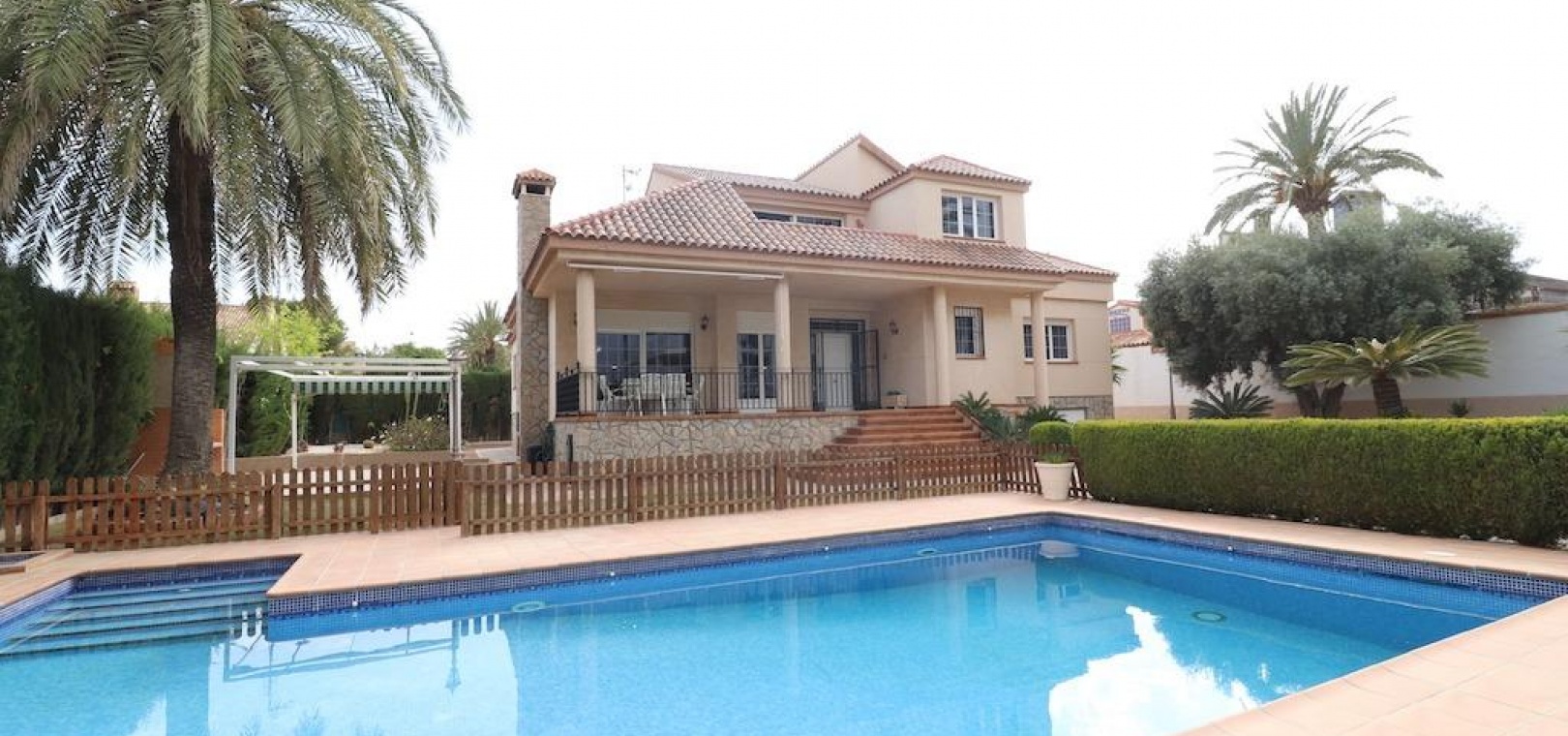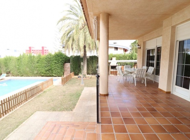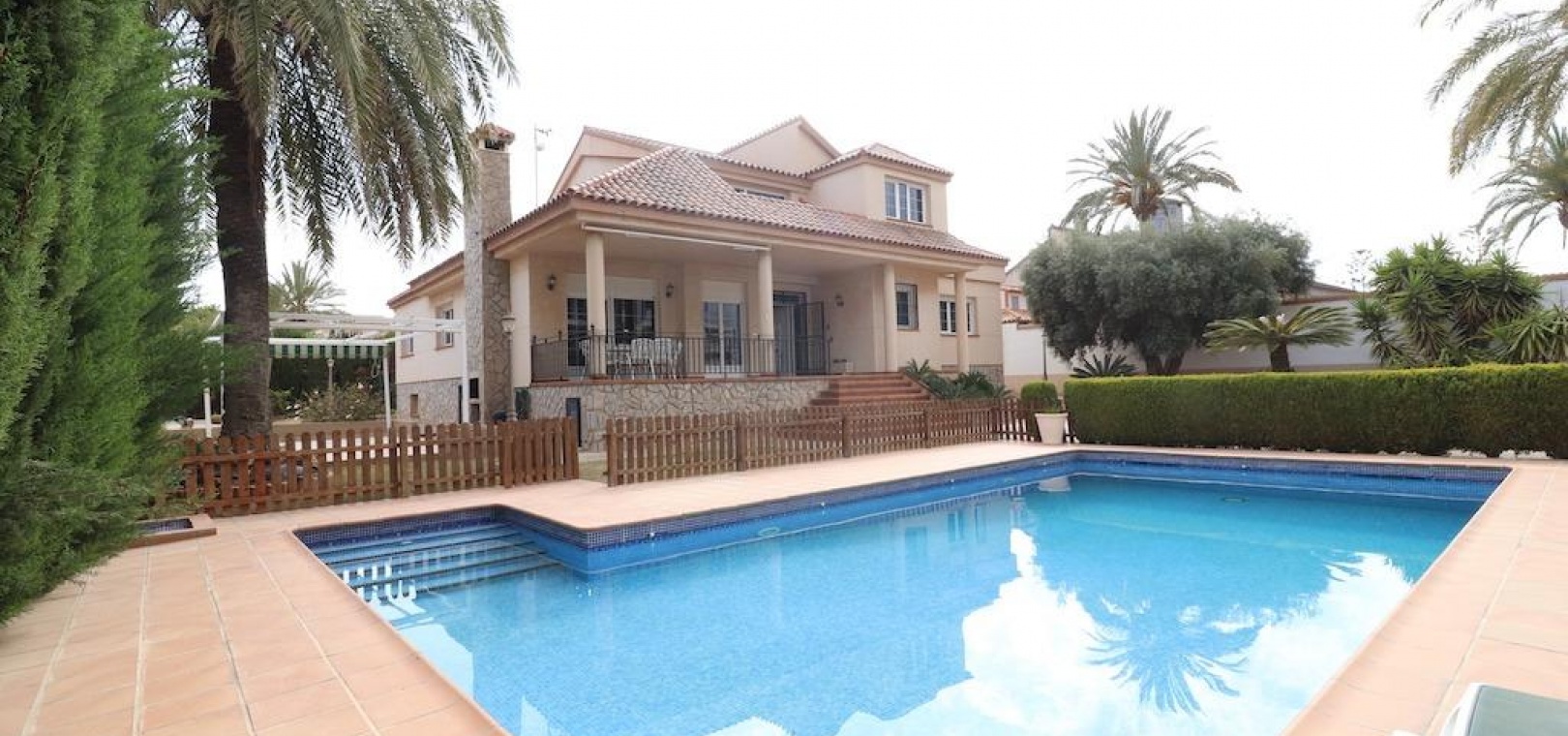 Mil Palmeras, Freistehende Villa mit einem großen Grundstück von 1000 m2 und einem Haus auf 2 Etagen plus einer Kellergarage von ca. 350 m2, es liegt nur 300 m vom Strand entfernt und hat 4 Schlafzimmer, alle Doppelzimmer, mit 3 Bädern, einem großen Wohnzimmer-Esszimmer auf zwei Ebenen, einer großen separaten Küche mit Waschküche, im Obergeschoss befindet sich ein weiteres Wohnzimmer mit Billard und privater Bar, das Haus hat 3 Terrassen, eine Garage für zwei Autos und einen Keller, es hat einen großen Garten mit Grill und Pergola und einem großen privaten Pool.~